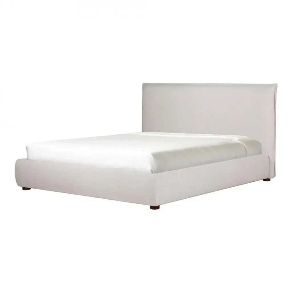The Luzon king bed is a luxurious haven upholstered in a sumptuous linen-blend fabric. Its padded headboard and robust frame are crafted from a solid pine-poplar mix, offering both comfort and lasting appeal with its flanged edges. The bed's timeless design and neutral hues exude a classic, utilitarian aesthetic that seamlessly integrates into any bedroom retreat - serene elegance in comfort and sophistication.