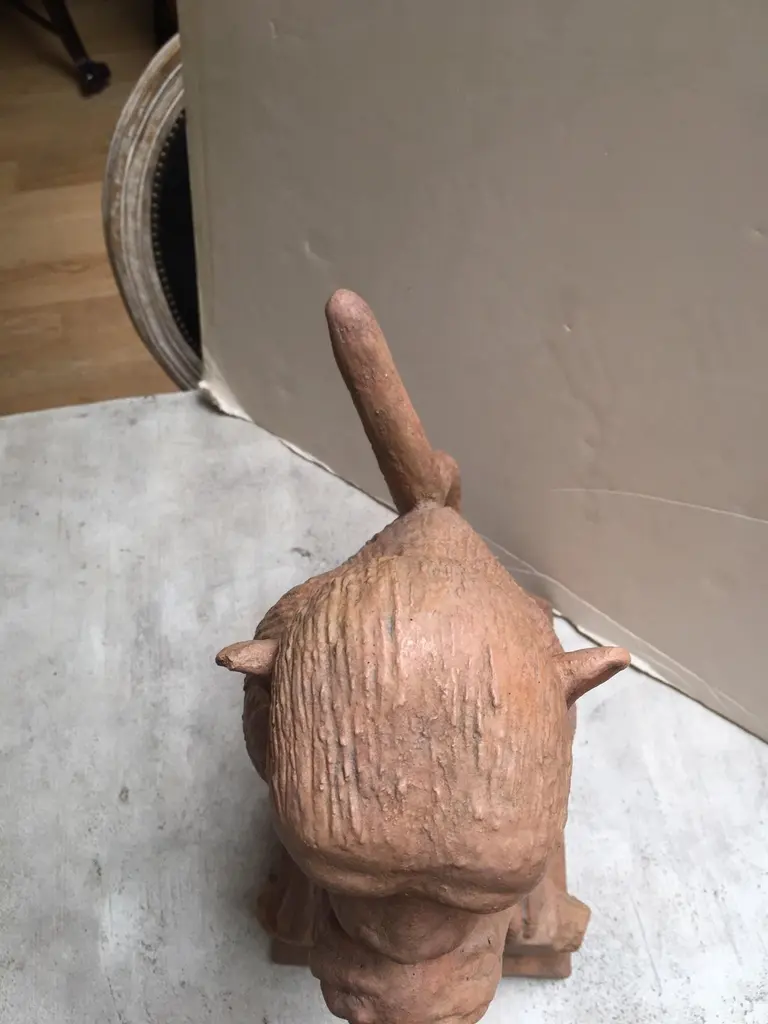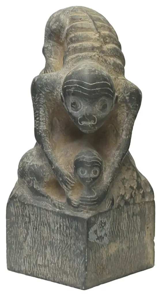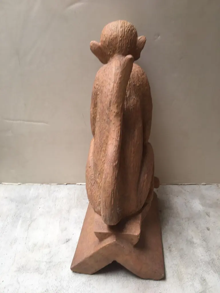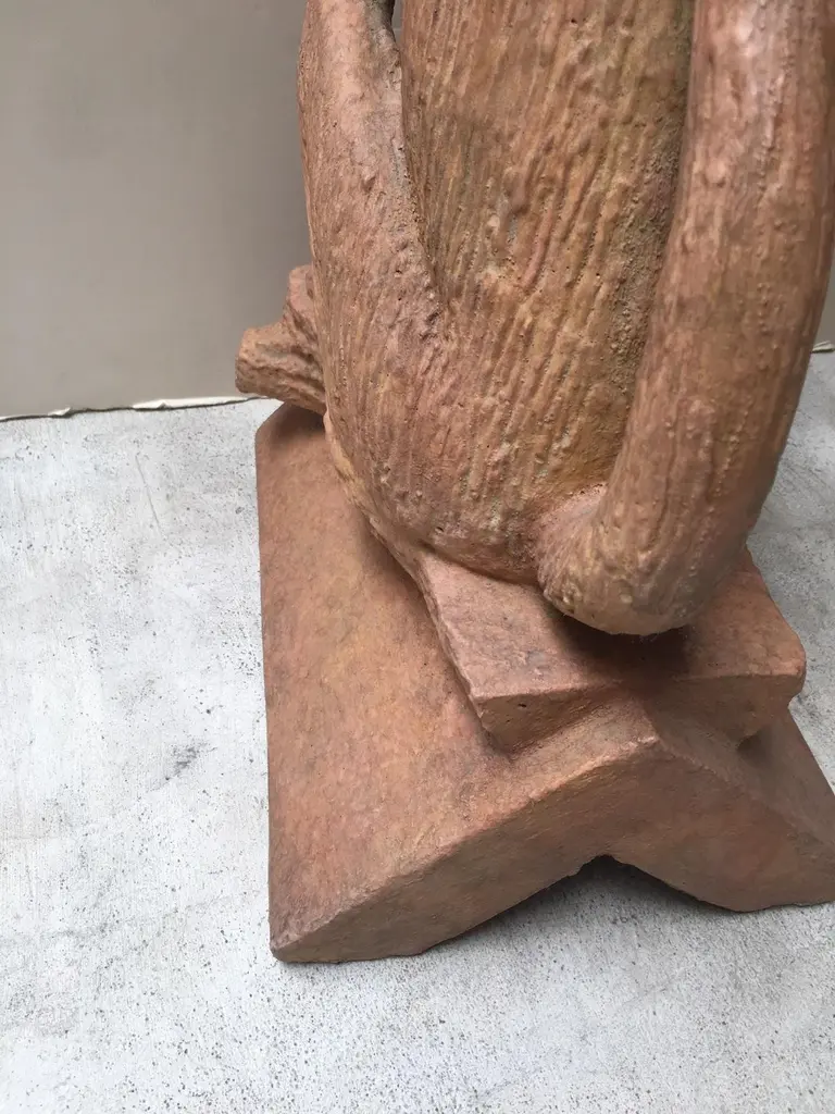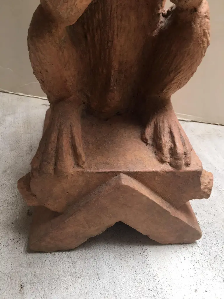 Made to Order Stone Monkey with Terracotta Finish Sculpture, can be used Indoor or Outdoor, for outdoor use Finish need to be sealed to protect from the Sun and Water, this is a reproduction Item, and we have Four Items in Stock, all the Items in Stock has Indoor FinishDetail Dimensions: Base: 12"x9" Top: 11"D X Height: 22"