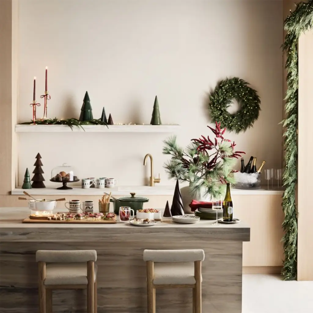 Reminiscent of midcentury-modern wood sculptures, our Madeira trees have stately silhouettes with plenty of presence. The simple fluted carving adds depth while keeping all the attention on the gorgeously grained acacia wood. Hand-finished in rich walnut for a warm, organic look, the large evergreen mixes and matches effortlessly with the other wood, glass, ceramic and metal trees in our winter collection.