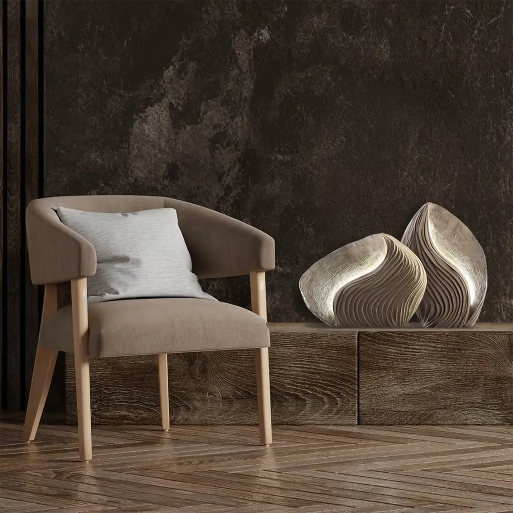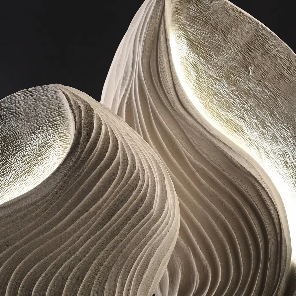 Inspired by the marine world, this light sculpture of the Madrepora Collection features a hand-carved and chiseled shape faithfully reproducing the poriform cavities and sinuous ribs of these stony corals (madrepore in Italian). The led illumination placed inside enhances the captivating shape that comes alive in the hands of the artist through the soft, malleable Lecce stone, a type of limestone rich in plant and animal fossils dating back several million years ago. Signed in etching by the artist.