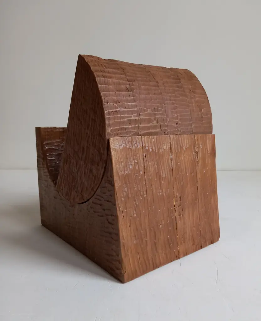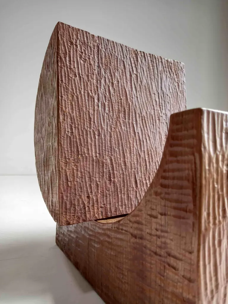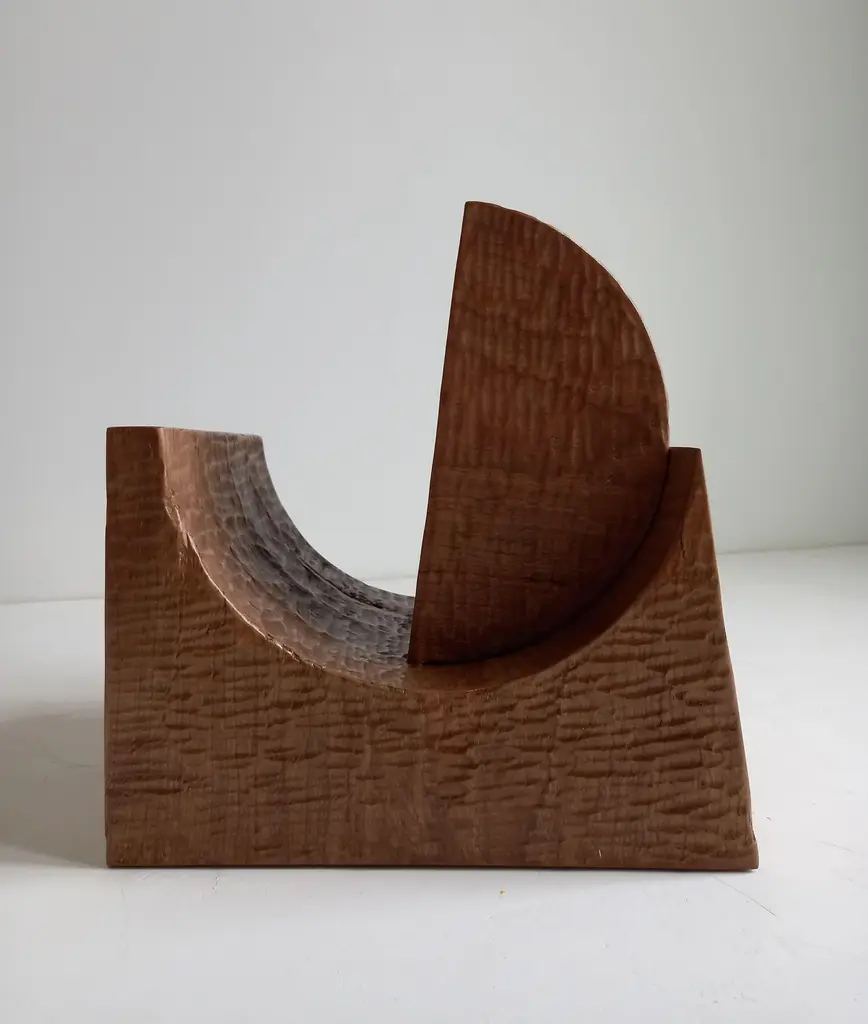 Magazine racks and objects by Pietro Meccani for Meccani Design. Beautiful magazine and object rack in carved cherry wood measuring approximately 28 x 20 x h 30 cm, made up of two concave and convex volumes that rotate with each other, taking on different configurations and shapes. A moving sculpture. Signed by Maker,Labeled by Maker
