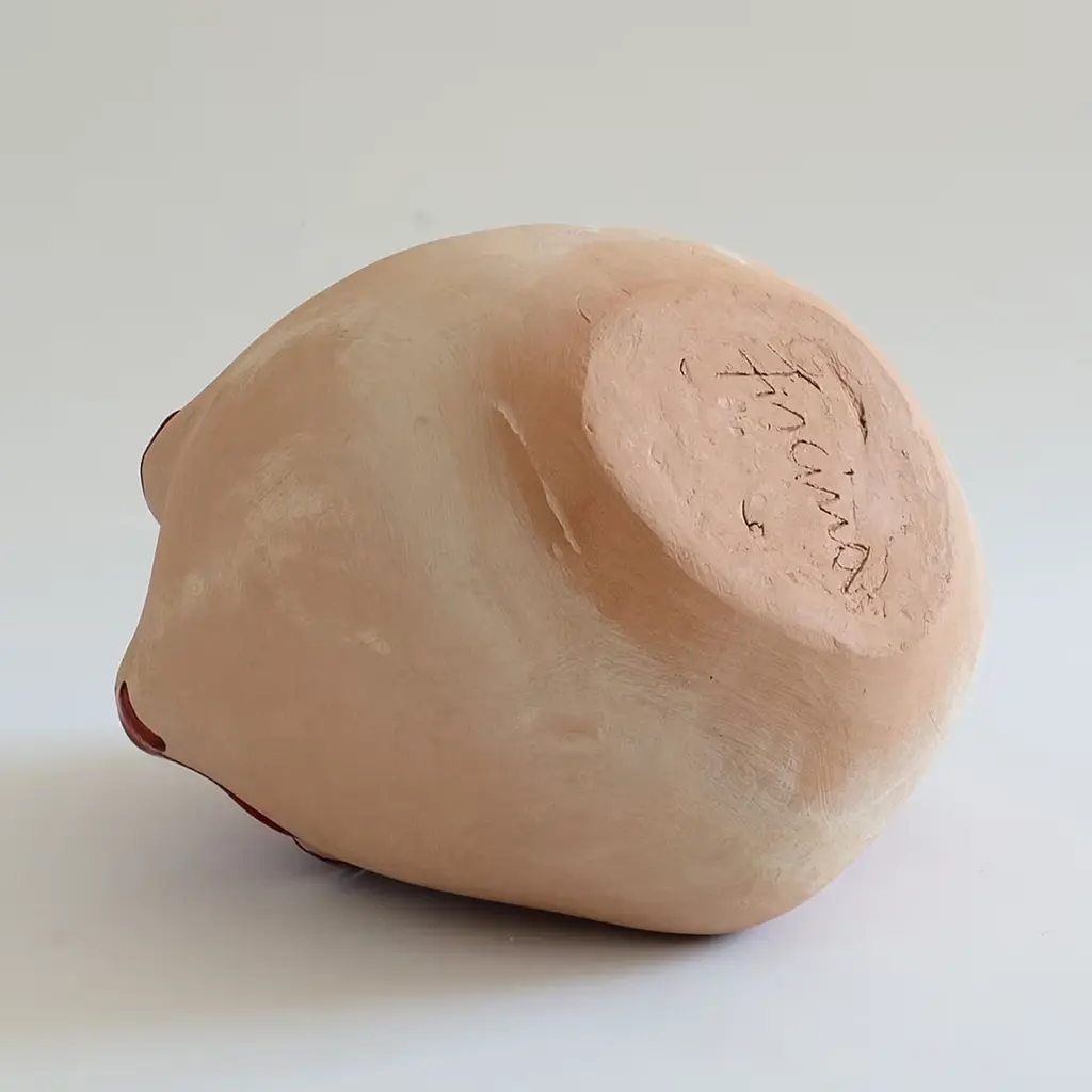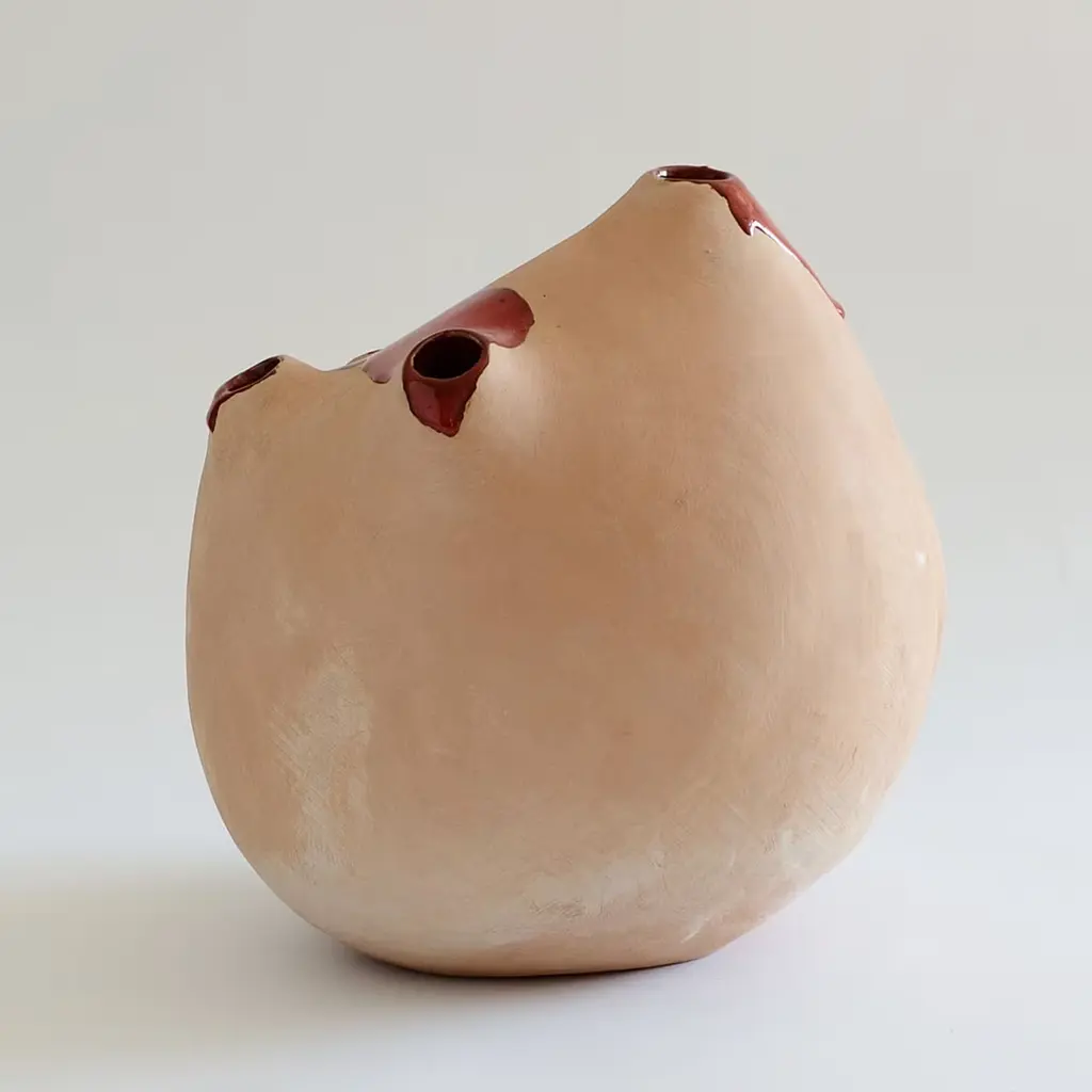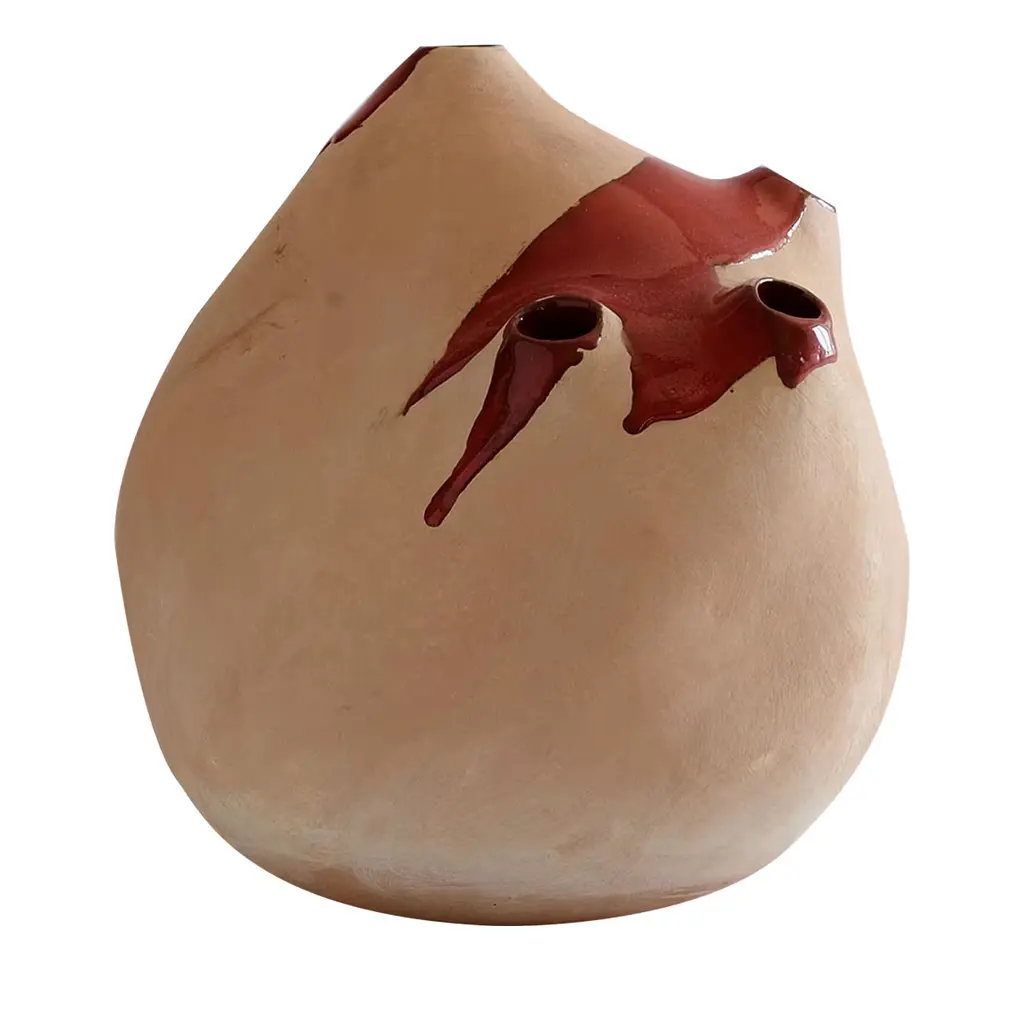 This unique sculpture from the Magmalia series was hand made from terracotta using the coiling technique and then covered with rich glazes and oxides. Due to its hand-crafted nature, reproductions of this piece will be similar but not identical.