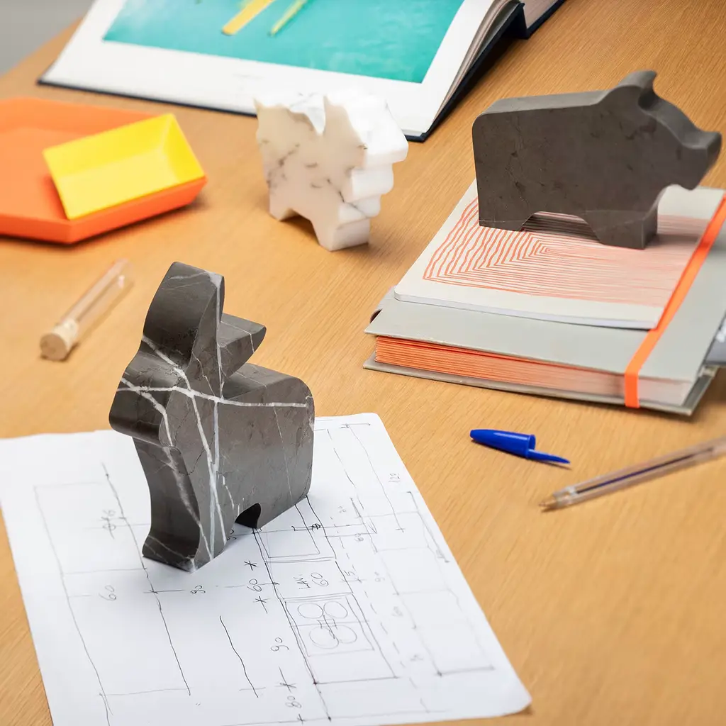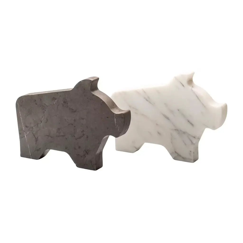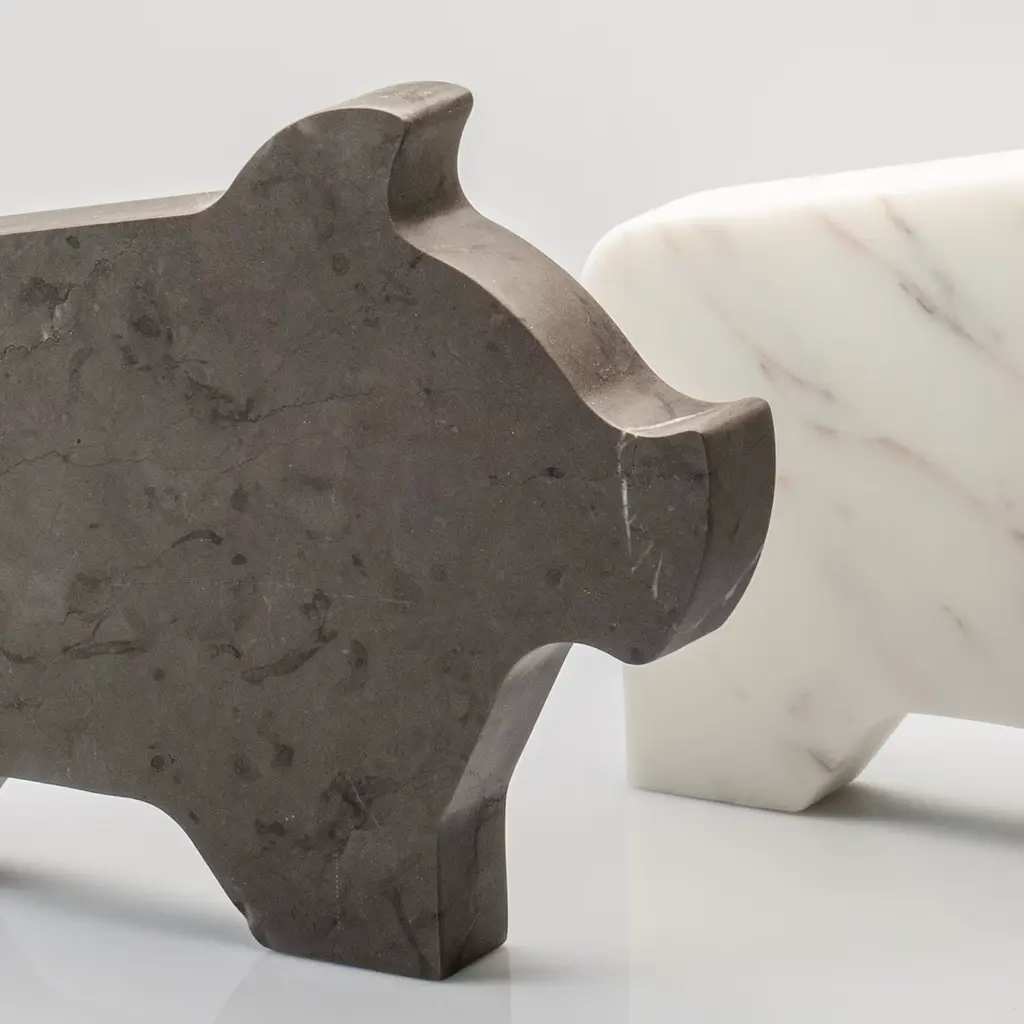 Part of the Factory series of cheerful statuettes by Alessandra Grasso, this gorgeous design will stunningly decorate a sideboard, console, or writing desk with unprecedented charm. Entirely handcrafted of Graphite marble and finishes by hand, it features a large, pig-shaped silhouette that will exquisitely match the other shapes from this series.