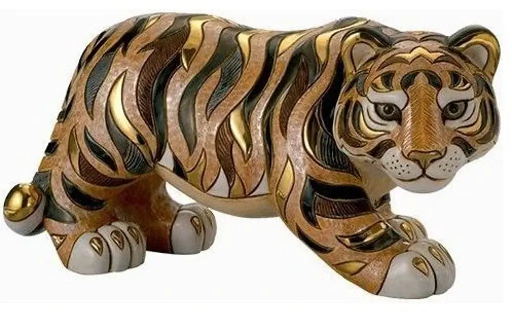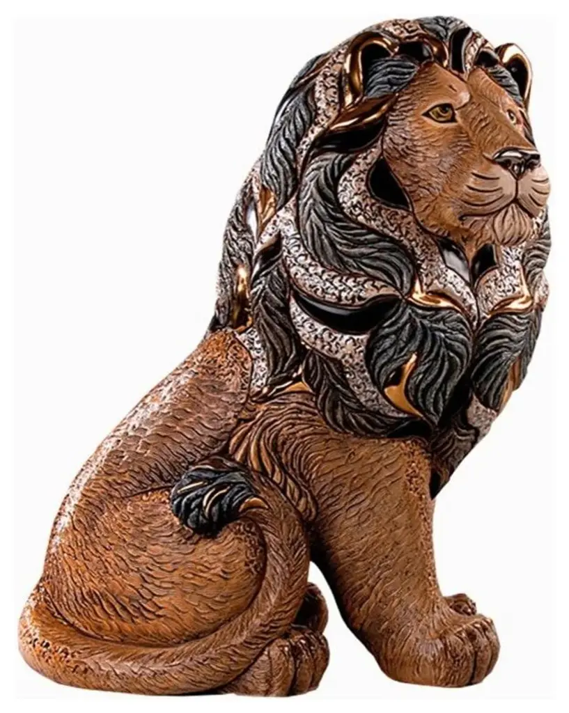 Piece launched in 2014Limited Edition of 1000Hand-carved ceramic lion sculpture.. each piece uniqueAccented with rich gold trimHand-enameled colors individually fired for each hueArtistic style influenced by Dali, Picasso, and MiroFrom the artists of De Rosa Artesania Rinconada, this Majestic Lion Sculpture is hand-carved in Uruguay from a Limited Edition of only 1000 pieces. About the De Rosa CollectionThe De Rosa family has been intimately involved with ceramics, since 1945 when the founder, Jorge De Rosa attended the Argentinian National School of Ceramic Design. These South American ceramic works of art have been decorating homes and offices world wide since that time. Although the process has changed somewhat over the years the elegance and sophistication of the De Rosa Collection figurines has been secure. From the vibrant blue dolphin sculptures to the sleek black panther figurines, each piece in the De Rosa Collection is a unique piece of fine ceramic. Their artists take inspiration from surrealist art and South American artists like Dali, Picasso, and Miro to create these stunning ceramic wildlife figurines. Each figurine is first hand carved by talented artisans. Bold enamel coloring is then applied, again by hand, with a firing of each piece with each new shade applied. The figurines are then finished with a lustrous 24k gold or platinum trim giving each whimsical wildlife figurine its singular signature of elegance. Because of this exceptional process no two pieces from the De Rosa Collection will be exactly alike.