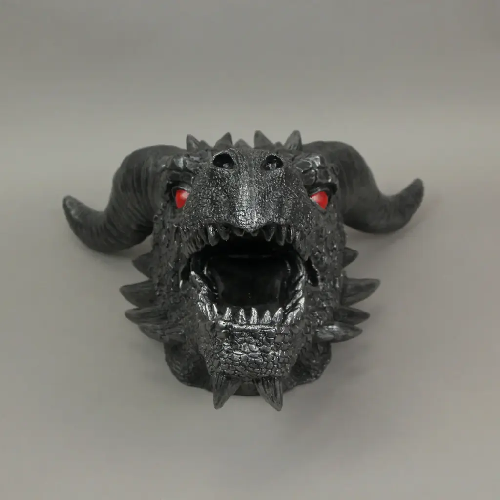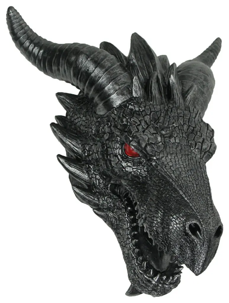 OVERALL SIZE - 14.75 Inches High, 12.25 Inches Long, 8.5 Inches WideDURABLE MATERIAL - Creatively Crafted From Cold Cast Resin For Years of Maintenance Free DisplayGOTHIC DECOR - Hand Painted Stone-Gray Finish With Blood Red EyesEASY INSTALL - Keyhole Mount on Back Makes Hanging a BreezePERFECT GIFT - For Your Favorite Dragon SlayerFerocious and menacing, this intricately detailed decorative bust stays true to the legends of dragons. Made of high-quality cast resin and featuring a keyhole mount on the back for easy mounting to your wall, this is the ultimate wall trophy for dragonslayers. It has a hand-painted stone-like gray finish, with blood-red eyes. This 12.25 inch long, 14.75 inch tall, 8.5 inch wide piece will have the king giving you his praises and the peasants shouting your name in glory.