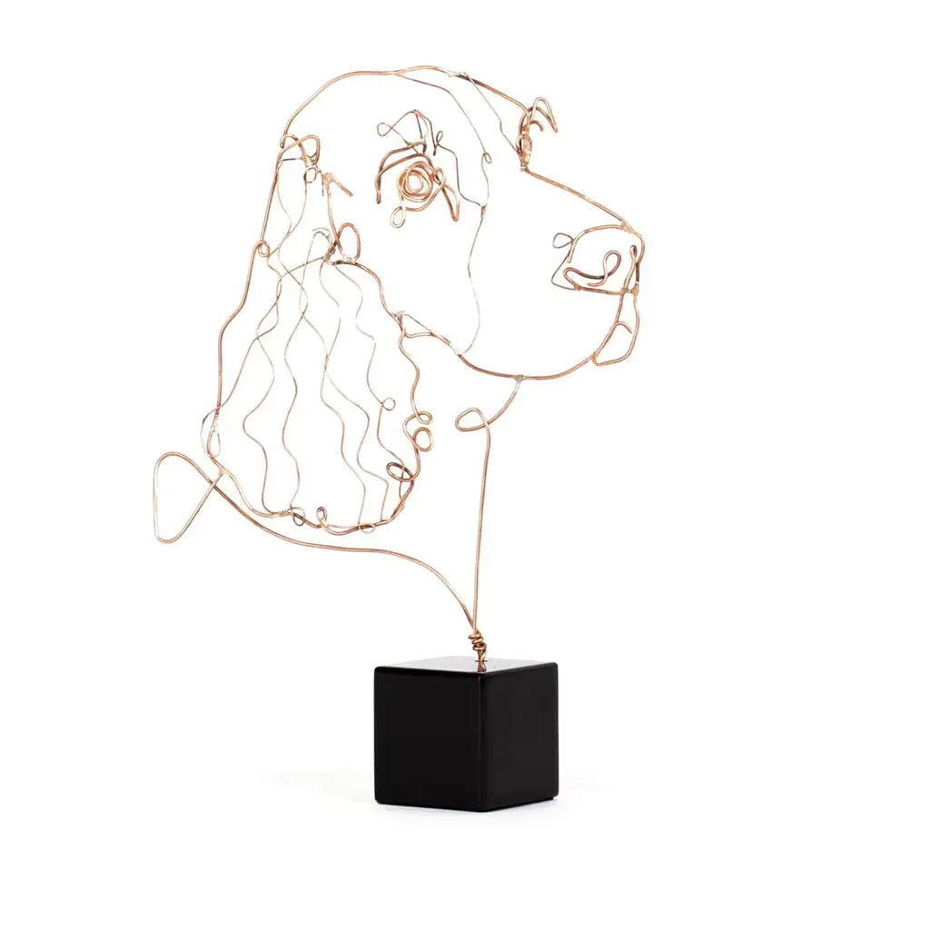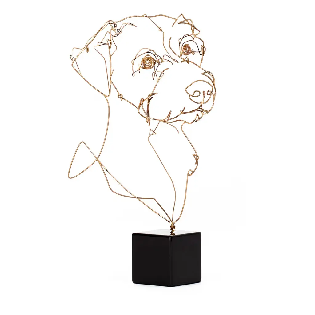 A deftly handmade miniature of a Maltese's snout, this statuette can be customized with a portrait of one's own dog, or any other dog breed. An original gift for an animal lover, it is fashioned of metal wire and supported with a polished black cube base. Other 69 dog breeds are available, please contact the Concierge for more information and customization options.