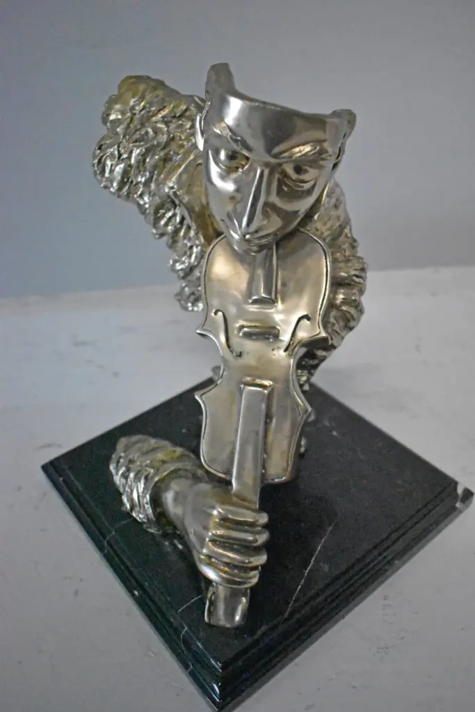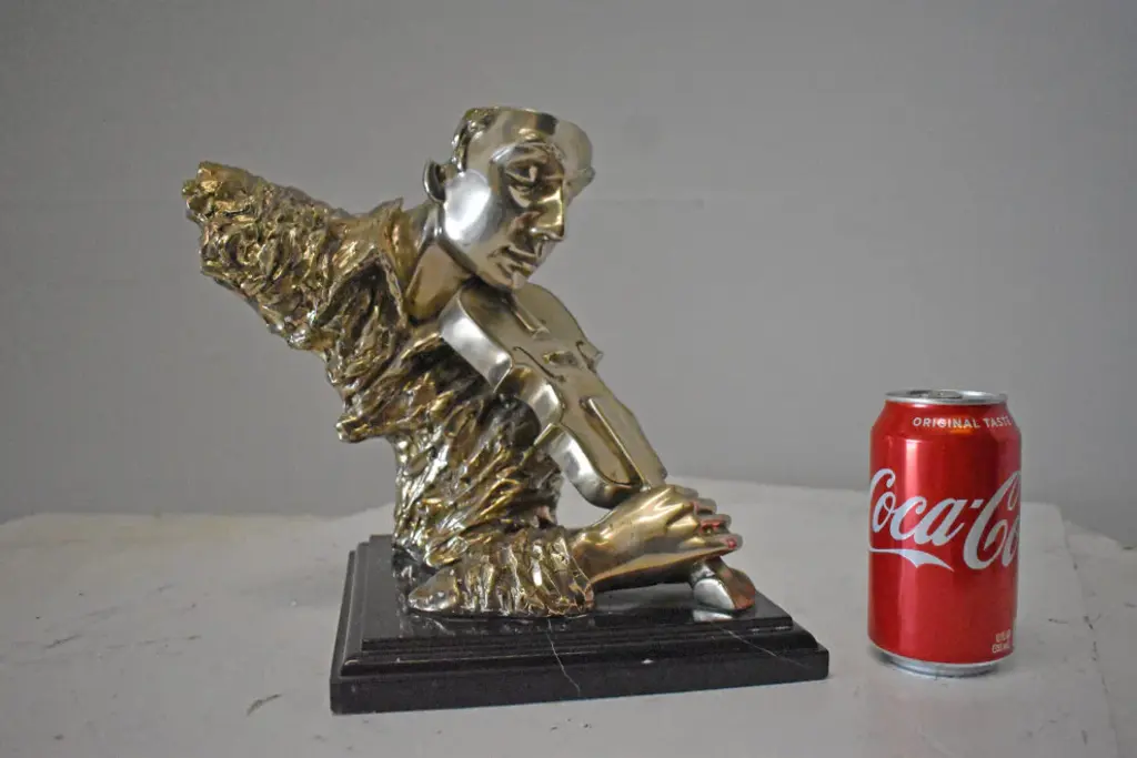 Man Playing The Violin Bronze Statue, Silver Finish - Size: 12"l X 9"w X 11"h.