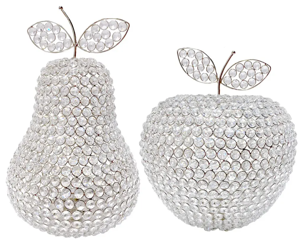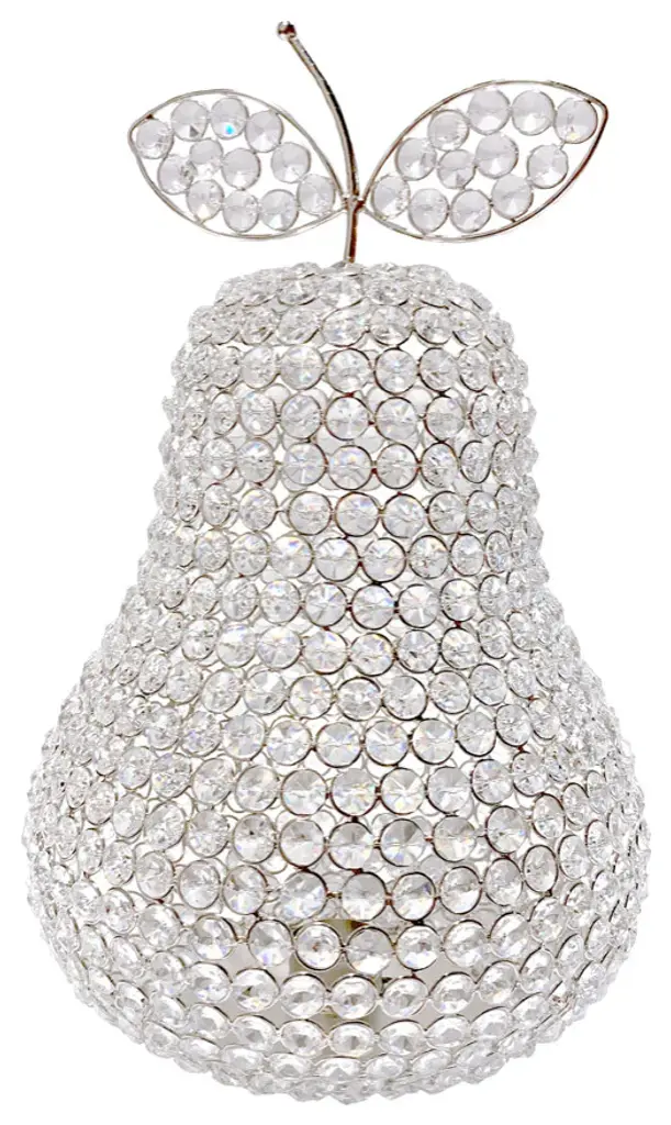 The Peral XL Cristal Silver Pear is an Elegant Statement Piece on any Tabletop. This Faceted Accessory with many Sparkling Crystals Accentuates this Sculpture. This Pear is a Beautiful Addition to any Decor.