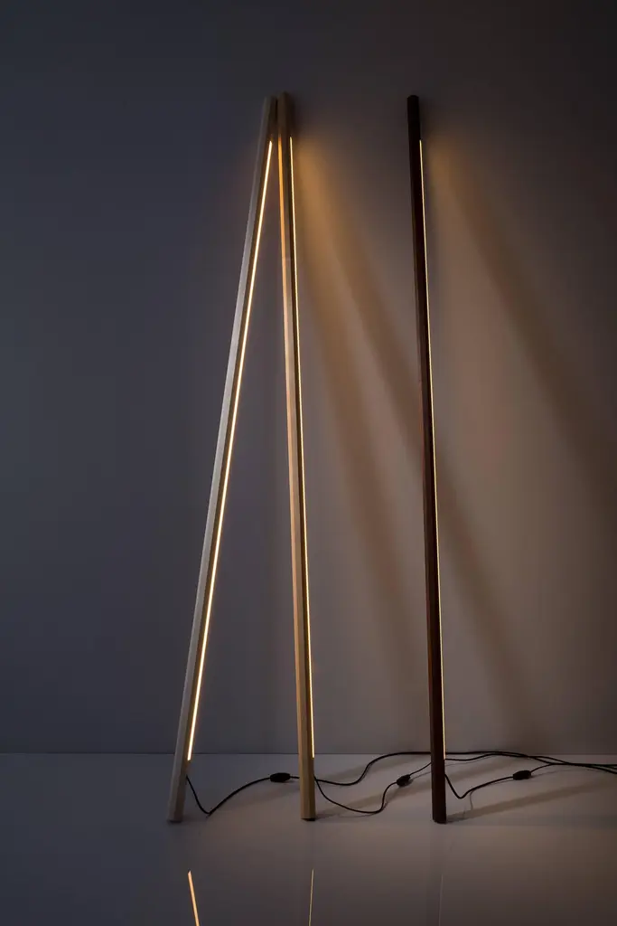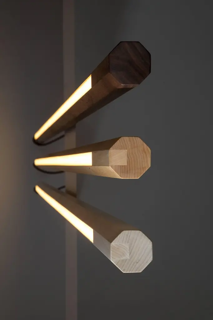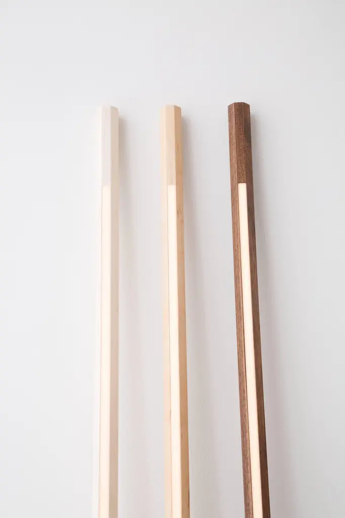 Fort makers' maple line light is made in Brooklyn by Noah Spencer. This sculptural LED light juxtaposes hard lines with soft reflected light and emits an ambient aura. The lifespan of an LED strip is approximately 50,000 hours.12 volts LED light, 60 Watt, 2,400 ° KMaterials: Maple, warm white 60 Watt LED strip light, plastic diffuser lens, 10' nylon covered cord.Made to order, lead time 3-4 weeks.