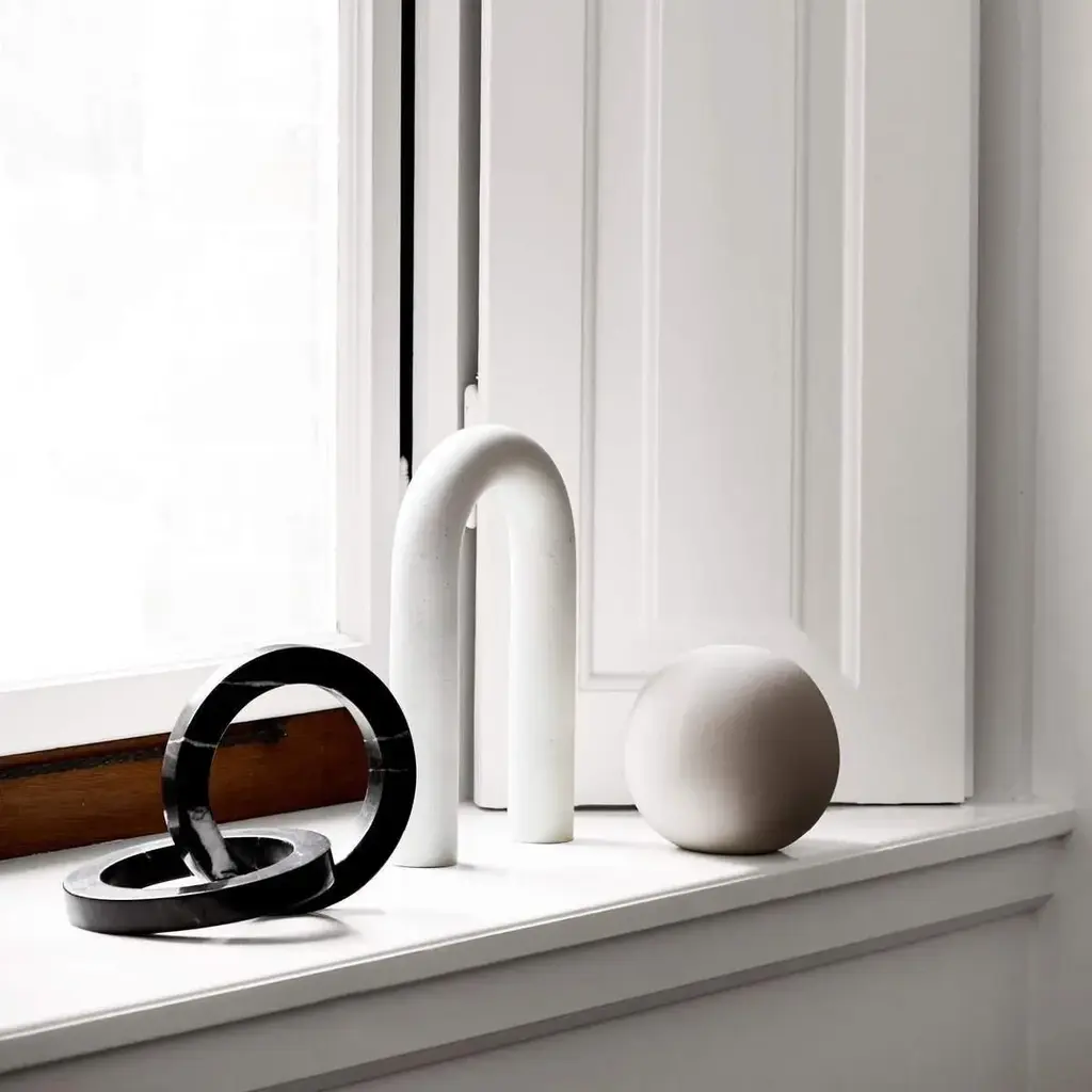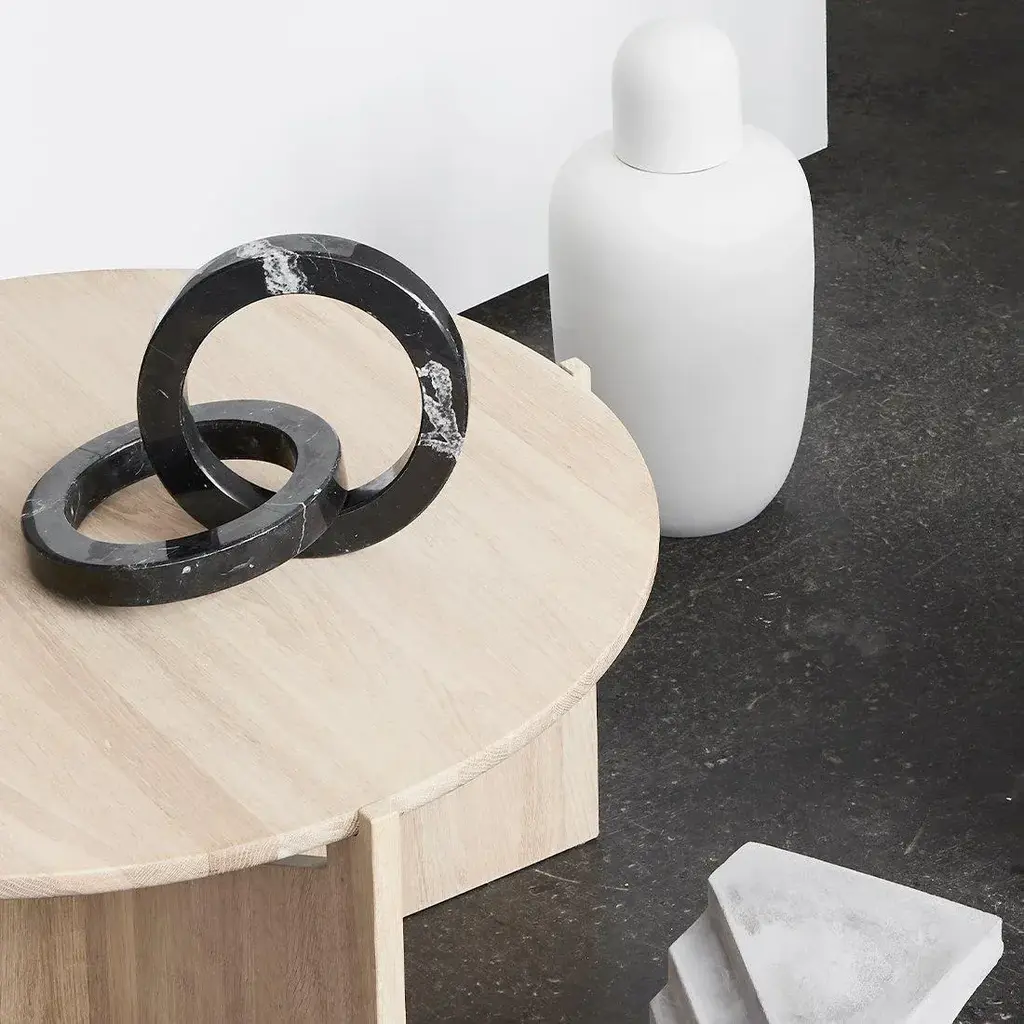 Marble circles by Kristina Dam Studio. Materials: Black marble Dimensions: 21 x 30 x H 21cm. Two unbroken circles make this stunning changeable black marble sculpture. A very popular gift for weddings and engagement parties. The Marble Circles is an elegant accessory, two interlocking marble circles that will suit every modern interior and habitat.