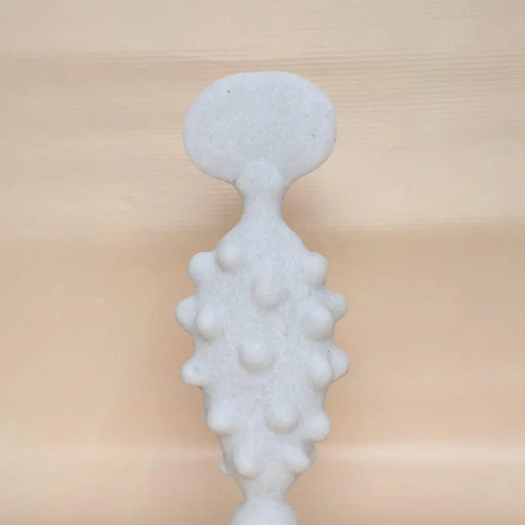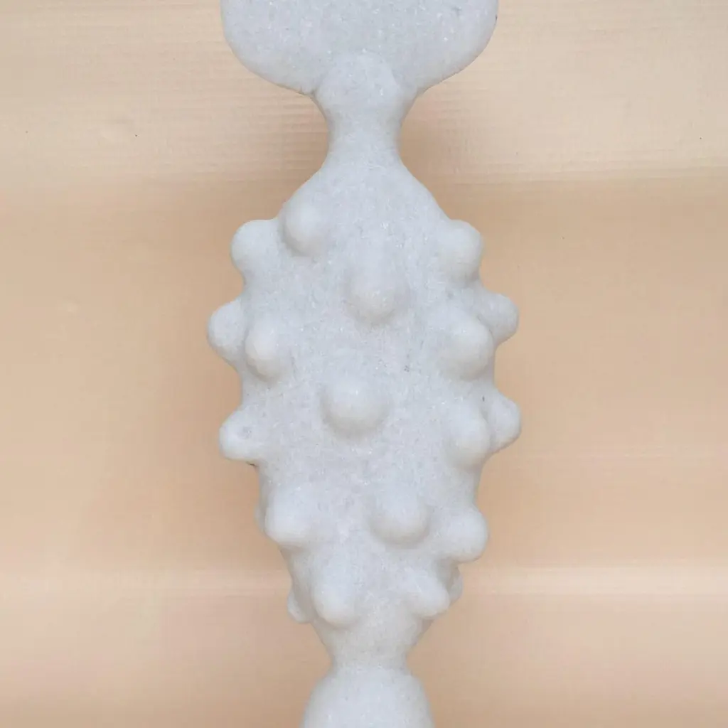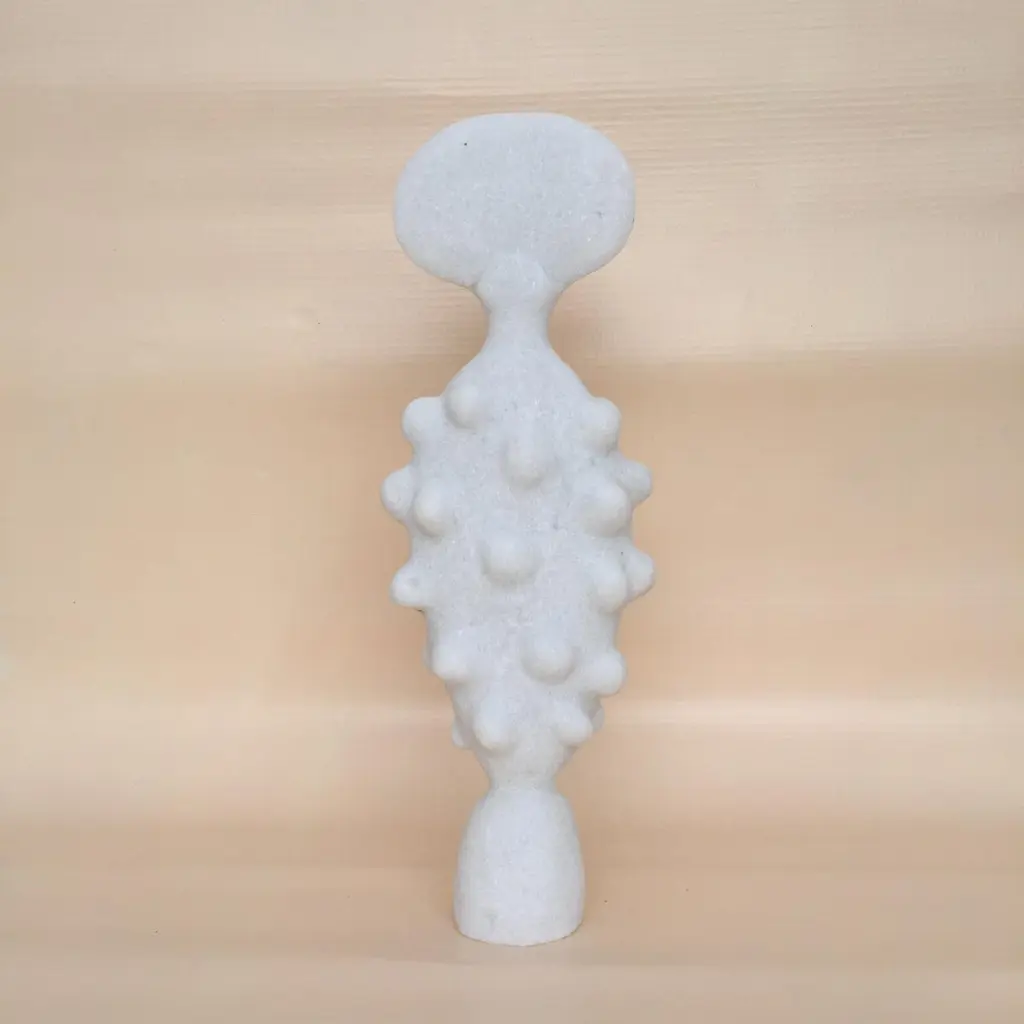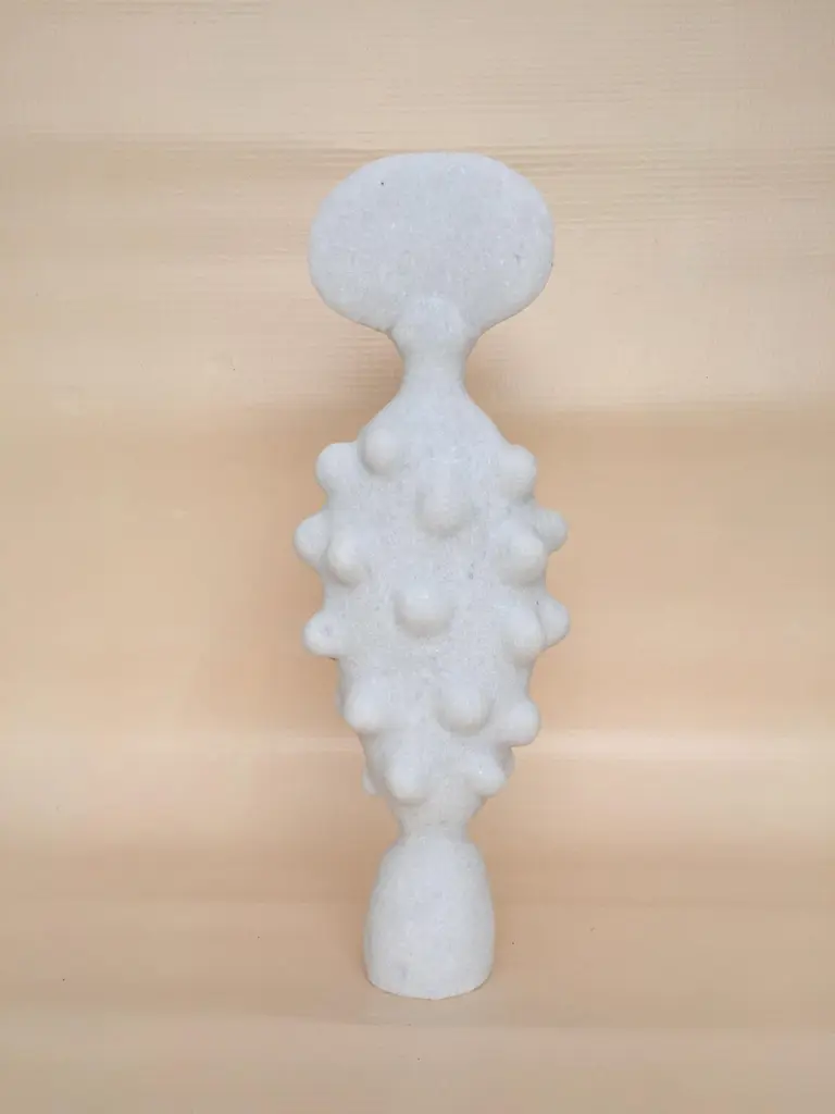 Marble sculpture by Tom von Kaenel.Dimensions: W 17 x H 48 cm.Materials: naxian marble.All the artworks of Tom von Kaenel are unique, handcrafted by himself.The stones all come from the surrounding marble quarries of the island. The naxian marble is of white, grey or yellow-brown color, its structure is crystalline. No measuring instruments other than compasses and scales are used in the production of an object. The eye decides on the finalshape. The crystalline surfaces are shimmering. This gives the object a unique liveliness.Tom von Kaenel, sculptor and painter, was born in Switzerland in 1961. Already in his earlychildhood he was deeply devoted to art. His desire to bring beauty to the world is Tom vonKaenel’s inspiration, drive and source for the creation of his works.Already during his training as a technical draughtsman and later as a teacher of pictorial design, he devoted himself to painting and three-dimensional work. Tom von Kaenel has exhibited his work in various solo and group exhibitions. For seven years he was represented by Galerie Ute Barth in Zurich.Today Tom von Kaenel lives and works on the island of Naxos. Everything in his environment inspires and shapes his work. He creates objects and sculptures out of Naxian marble in craftsmanship liveliness and timeless beauty.