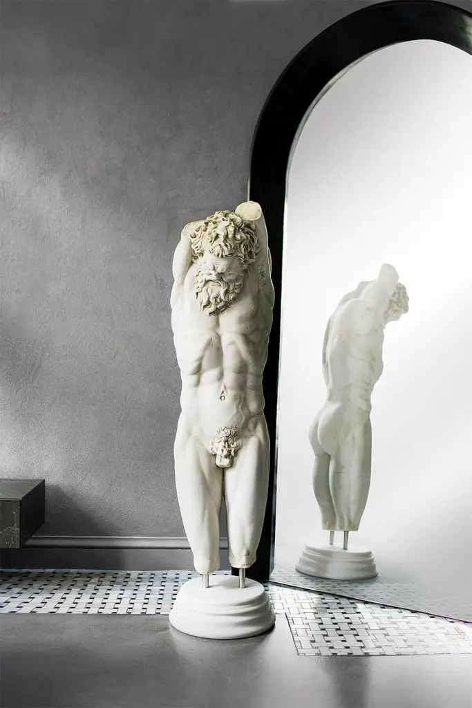 Marsyas is a famous Phrygian satyr in Greek mythology, believed to be half human and half goat. He is the son of Hyagnis, who invented harmony. Marsias, who plays the flute very well, is killed by Apollo's jealousy after a musical duel with him. The statue in Tarsus reflects his surrendered mood, recounting his punishment. You can see the statue at the Istanbul Archaeological Museum.The most important sculptures in world history are brought to your living spaces by Lagu's special selection, using the best materials. Sculptures, busts, columns and reliefs, the originals of which are in various museums, are made with the technique of casting under vacuum with marble powder from the mold in accordance with the original.The deformation and aging found in the original works are directly transferred to the works.- Weight: 150 kg-Produced from pressed marble powder.-Produced from the original molds of the works from the museum.-Can be used indoors and outdoors.