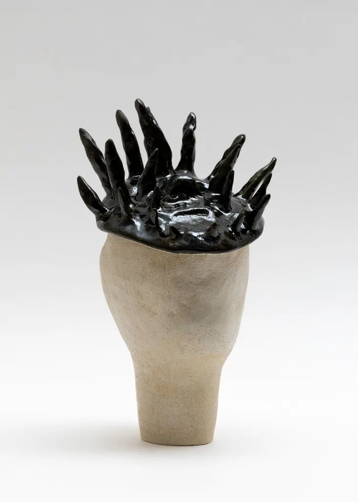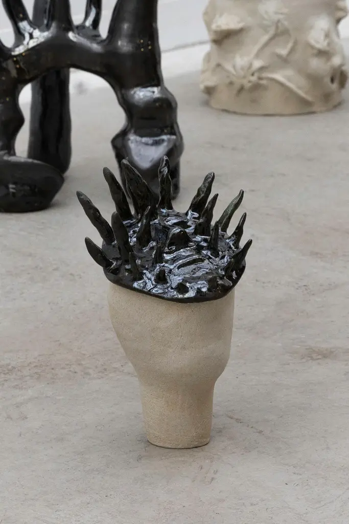 Mask Sculpture by Eglė ŠimkusUnique Piece.Dimensions: D 17 x H 29 cm.Materials: Clay.My name is Eglė Šimkus, and I was born in Lithuania in 1990 to a Russian mother and a Lithuanian father. I lived in Lithuania until 1999 when I arrived in France.My artistic work explores the deep connection between the intimate and the surrounding environment. I blend different forms of artistic expression, including writing, painting, and sculpture, to create a dialogue between the body and its context.In my work, I seek to deconstruct the traditional form to convey different perspectives of reality. Surrealism exerts a major influence, where painting becomes a fusion of ideas and elements in an imaginary world. The human body plays a central role in my creation, serving as the foundation and essence of my works.My sculptures seem to emerge from a buried and unreal world, creating fantastical forms that combine surrealism with elements of contemporary life.My work with clay is a process of gestation, where organic forms are born from introspection. I sculpt clay as if it were stone, thus creating a direct link between the unconscious and the body.My creations invite viewers to explore fragments of enigmatic stories, populated by chimeras.