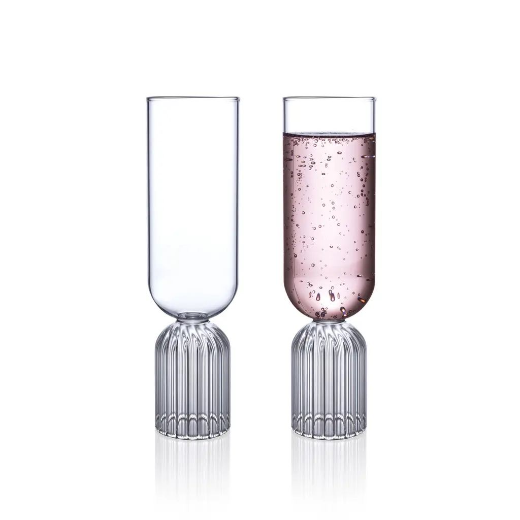An homage to the month that marks the transition between spring and summer, the May collection features both delicate detailing and creative silhouettes. Featuring a contemporary design with a vintage charm, the range is as distinctive as it is elegant. The May Flute Set brings together a classic flute shape with a robust stem. Like other fferrone design glassware, this set is crafted entirely by hand, without the use of molds. Each glass boasts interior fluting, made by master glassblowers. Perfect for champagne, the May Flute set comes with two 6 fl oz glasses. Discover the rest of the May collection in our shop.