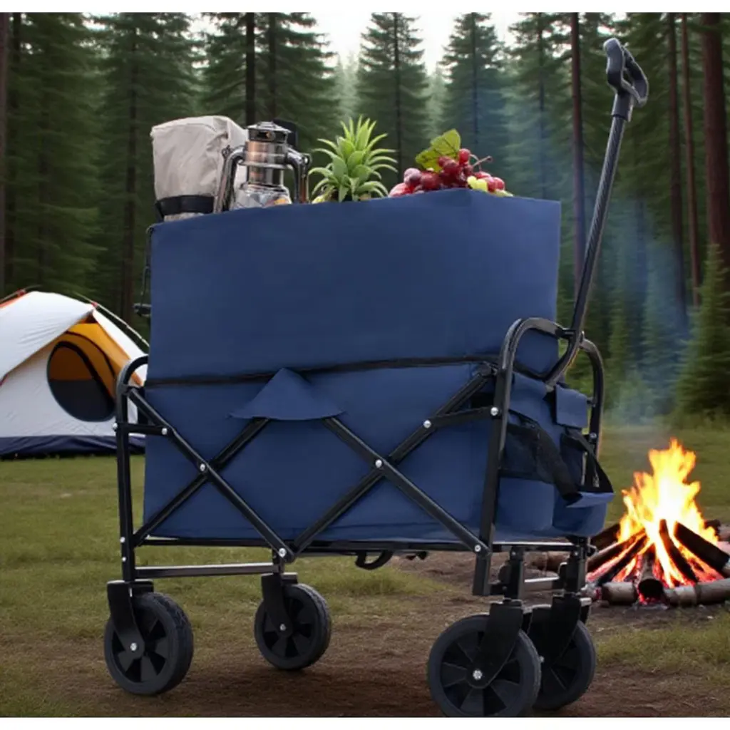 Mayeerty Folding Wagon Cart Collapsible For Camping Shopping Heavy Duty Utility With All Terrain Wheels 330lbs Blue