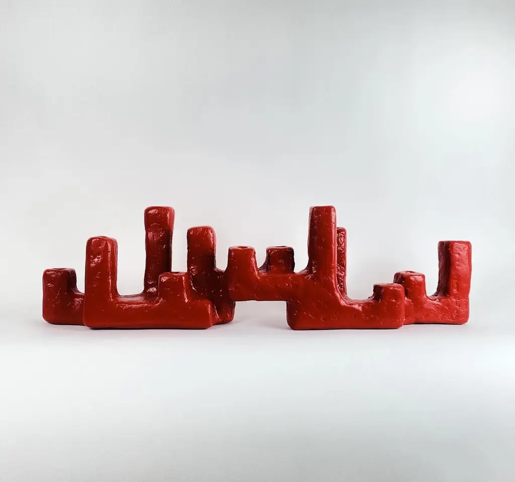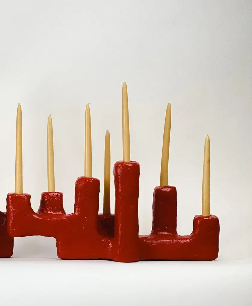 The Maze Candelabra by Brent Warr is a striking fusion of sculpture and function, conceived as a bold architectural gesture for the modern interior. Each piece is built from a wood core and shaped using Brent’s signature gypsum, pulp, and epoxy blend. The form evokes a playful cityscape, with irregular columns that serve as candle holders. Finished and sealed for longevity, the Maze Candelabra offers a powerful visual anchor for tablescapes or shelving. Ideal for collectors and designers seeking a statement piece that bridges fine art and utility.Each piece is made to order and is available in white, black, cream, or custom colors. Brent Warr Studios founder Brent Warr was raised in Georgia, USA and studied at Auburn University’s college of Architecture, Design, and Construction. Before moving to the back to Georgia to start his furniture and lighting studio, he moved to NYC to work for esteemed Interior and Architecture firms Meyer Davis Studio and Yabu Pushelberg. Now located in Bainbridge, Georgia, Warr’s furniture, lighting, sculptures, and interiors projects are defined by a studied balance of fluidity and structure, composition and function. His practice is both intuitive and informed by an understanding of history, process, and materials. Above all, Warr’s guiding principles are humor and storytelling. Brent Warr has been featured in Interior Design Magazine, Architectural Digest, Elle Decor, and Vogue Living to name a few.