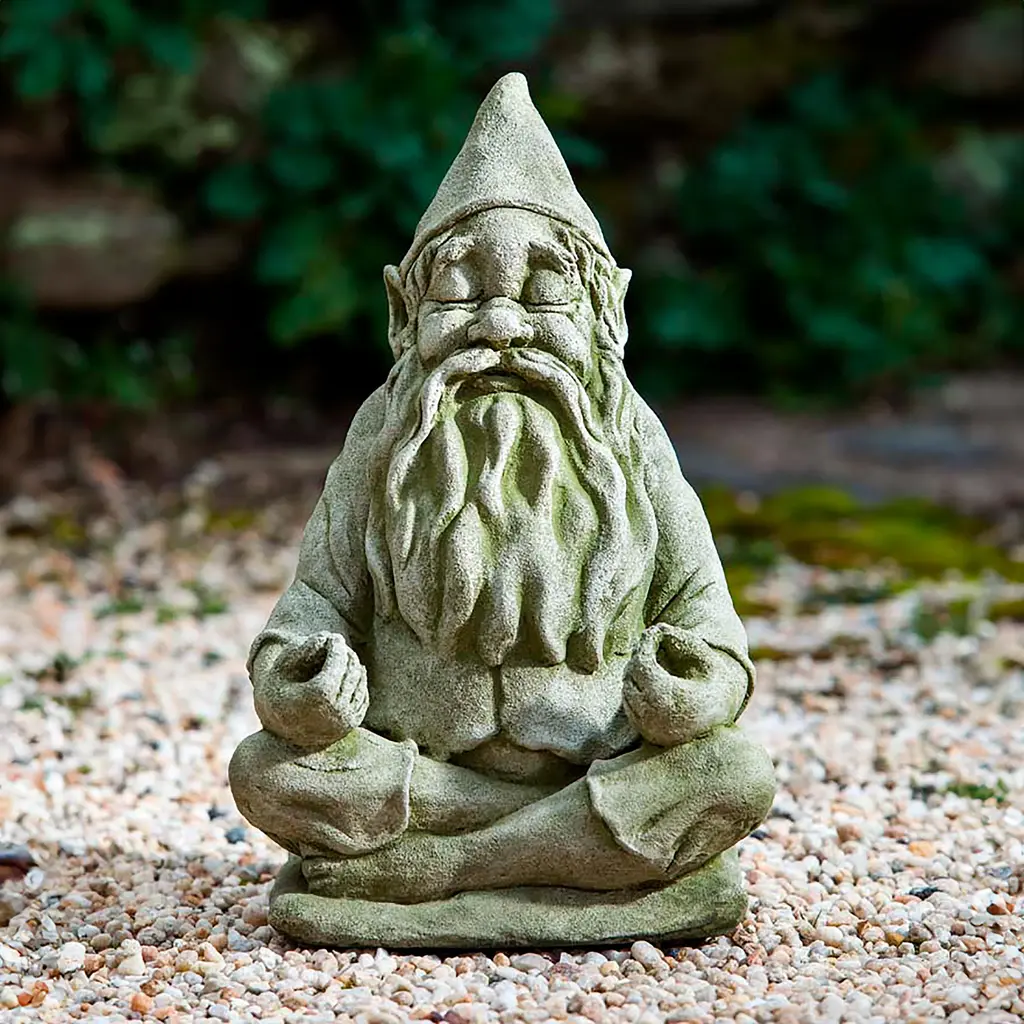 May your life be filled with Independent Spirit"Buddhist thought has long regarded animals as perceptive entities, capable of obtaining a sense of enlightenment. Our Meditating Buddha Cat is a perfect symbol for those who appreciate the independent spirit of zen or those who simply love cats!Cast in strong, high-quality solid concrete - perfect for outdoor use in any climate, the buddha cat adds the perfect dose of delight and tranquility to your patio or garden! Measuring a full 8" tall and 7" wide, the sculpture includes integrated color pigments to create a consistent antiqued color finish that will never flake or fade. Meditating with prayer beads, the cat Includes the Chinese characters for Independence on the reverse of his robe, an appropriate marking for our self-reliant feline friend.Solid cast stoneIntegrated ColorMade in USA