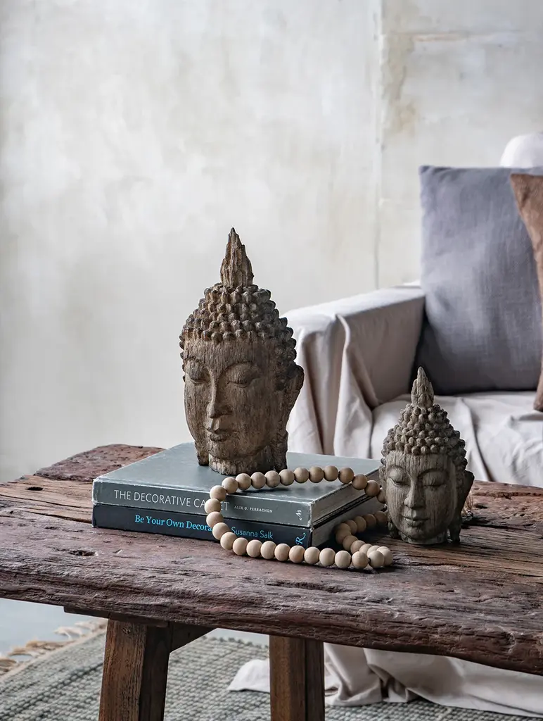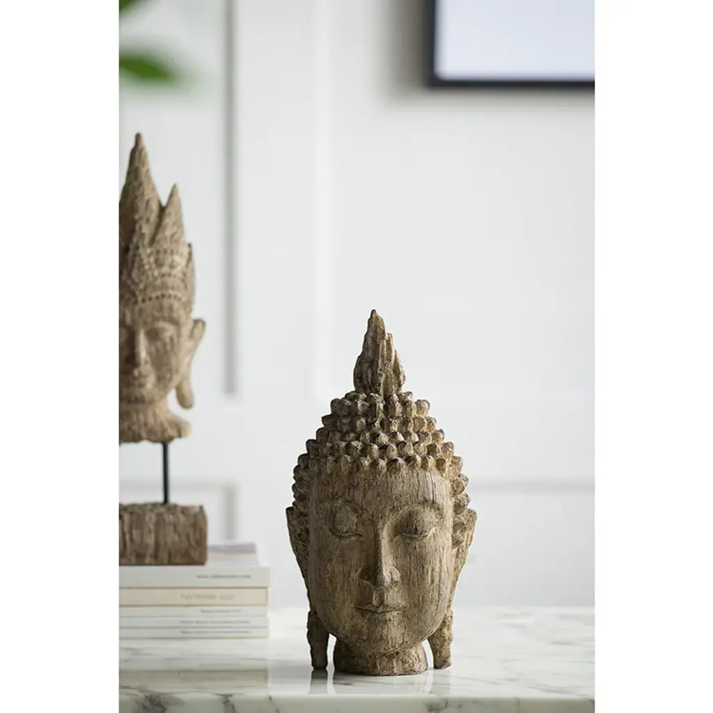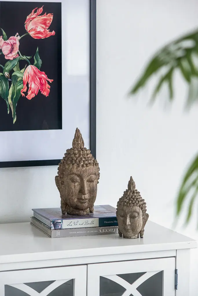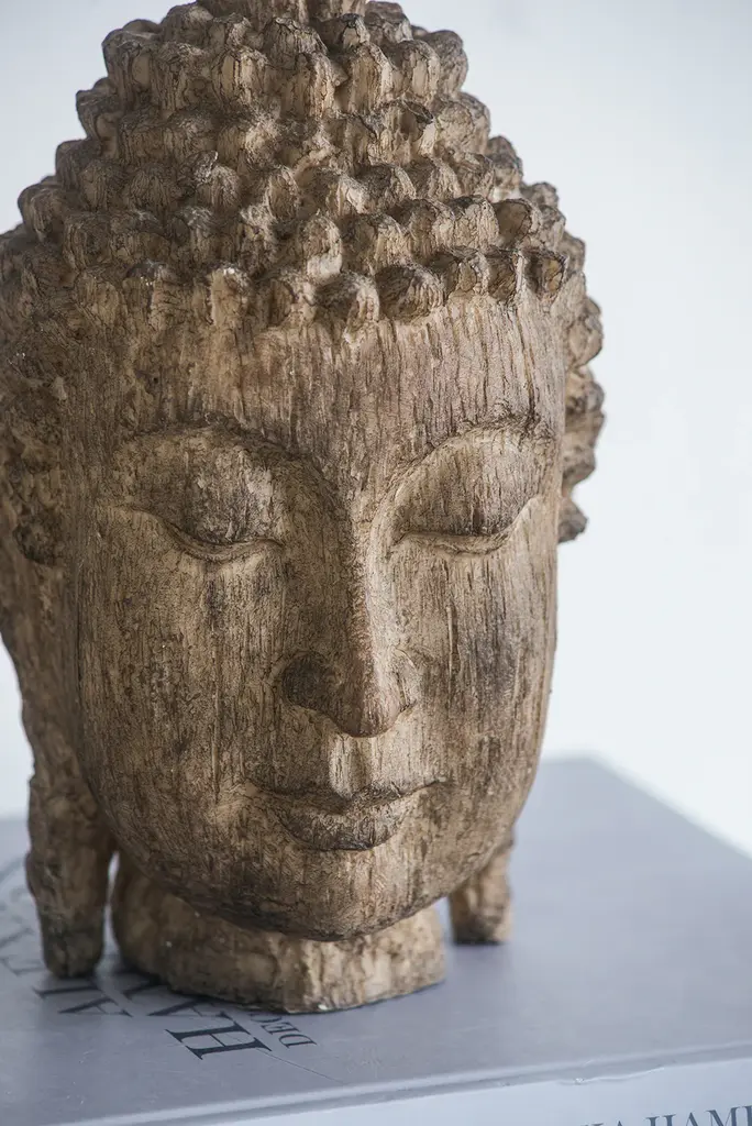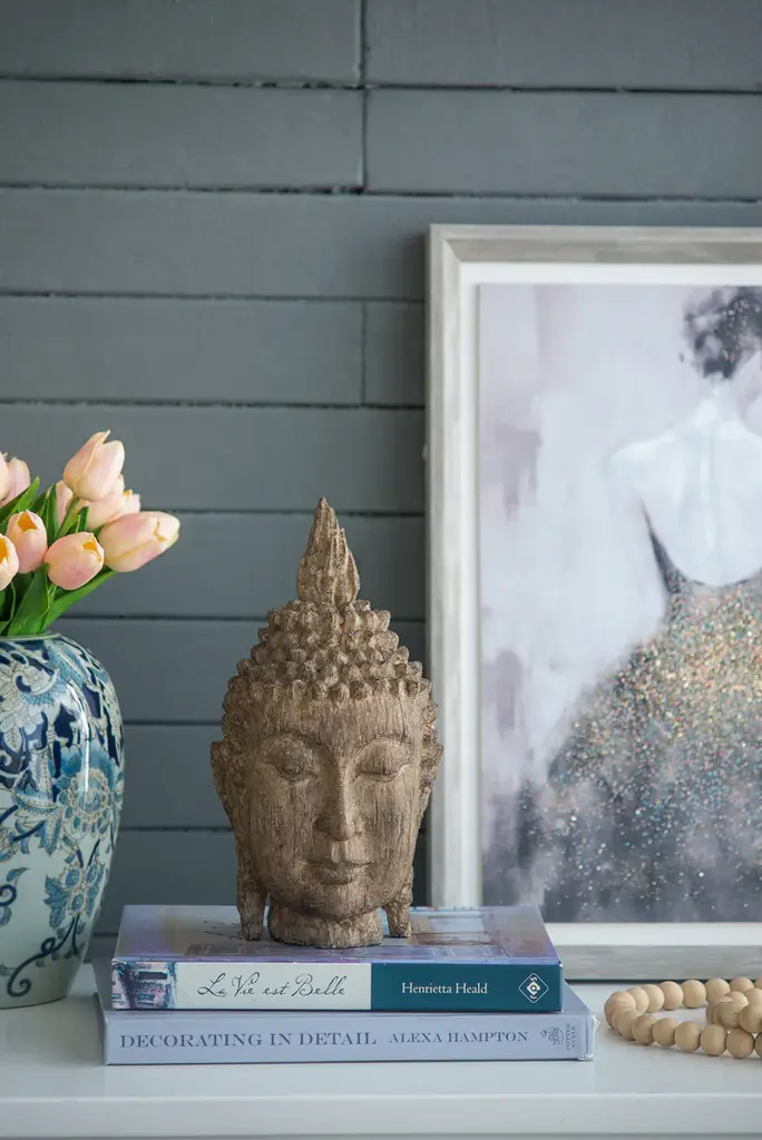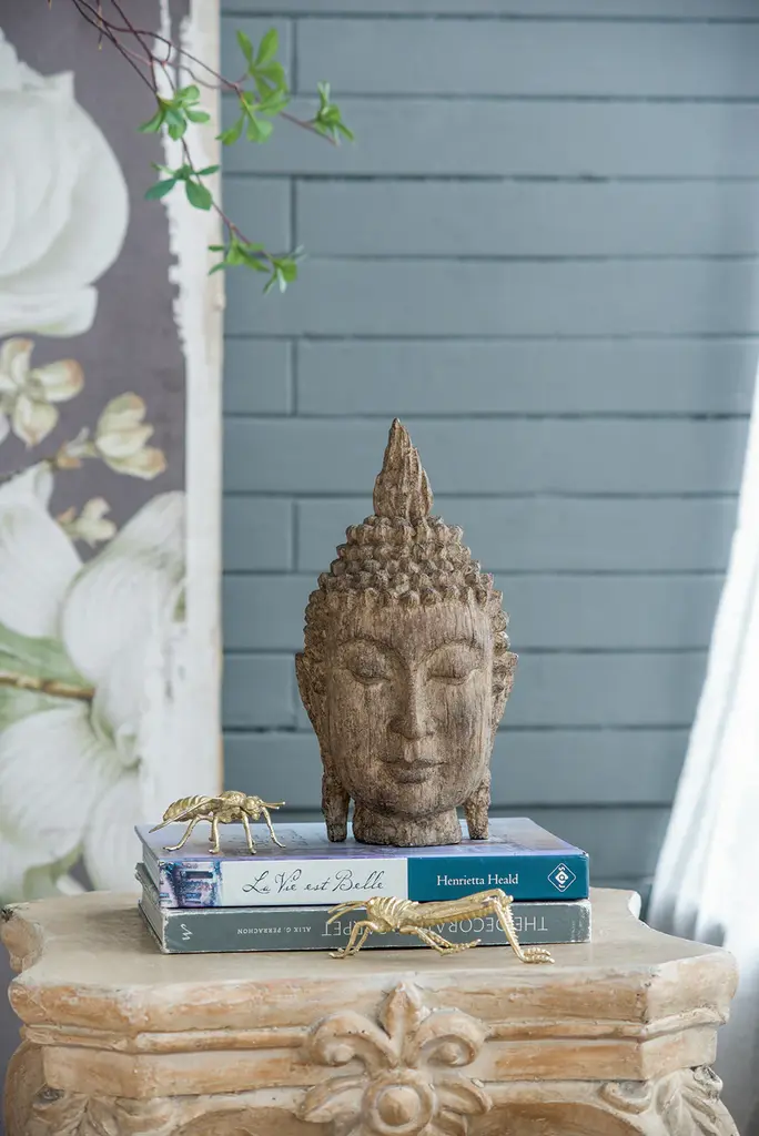 The Design Inspire mindfulness anywhere in your home with this serene Buddha head sculpture. The warm coloration and rich texture is reminiscent of weathered wood carvings, giving an antique appearance for timeless appeal. Standing at 12″ in height, this piece is large enough to catch the eye yet easy to display on a shelf or table.