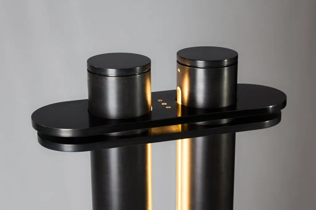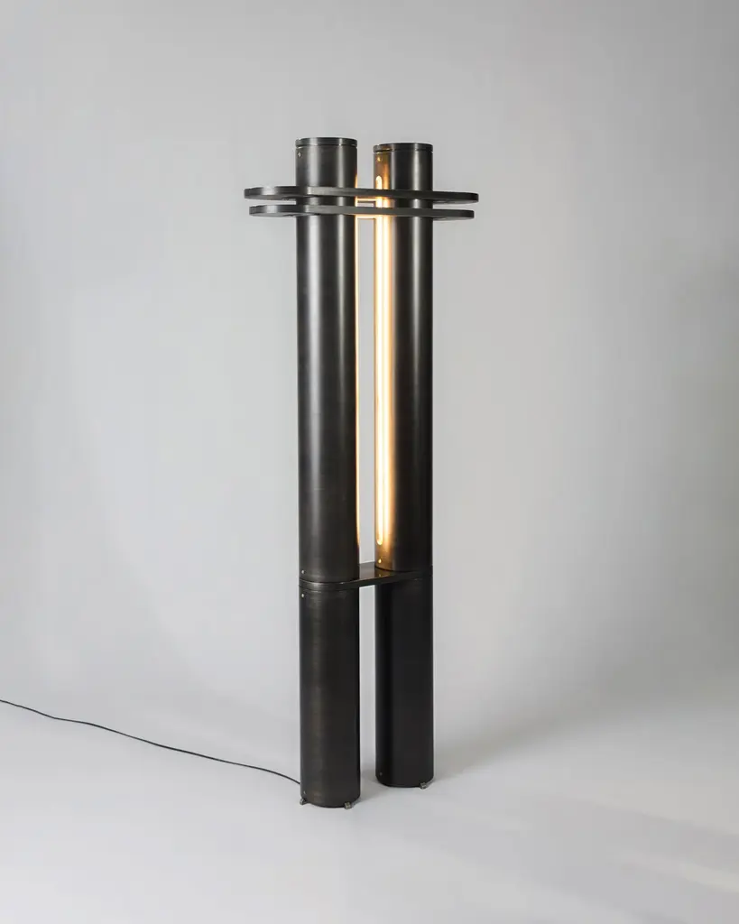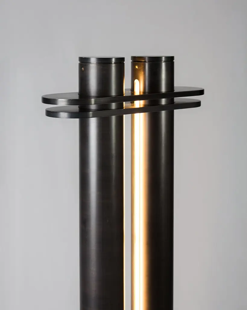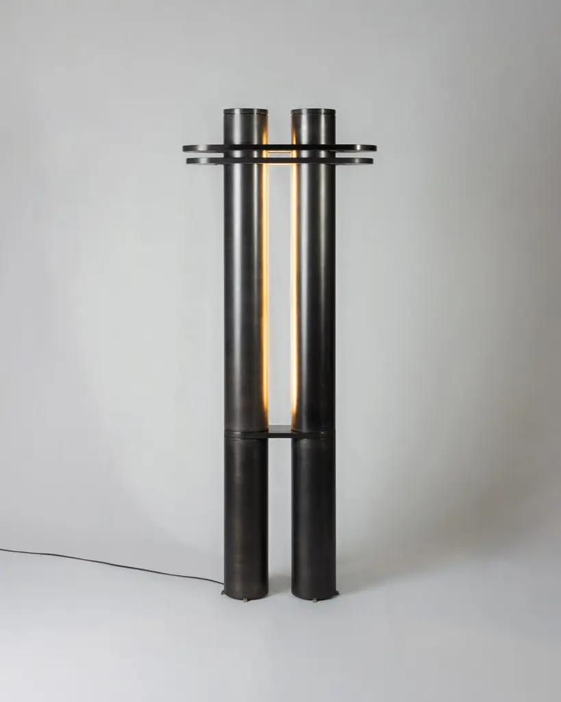 Medium Aluminium Colonnade 02 Light Sculpture by Tanuj AroraDimensions: W 55 x D 18 x H 137.5 cm.Materials: Aluminium, Brass and Stainless Steel.Weight: 26 kg.Finish: Hand patinated charcoal black with brass detailing.Lighting:3000k, Dimmable LED(0-10v, PWM, DALI, etc as per request)A light sculpture designed to co-exist comfortably with its surroundings, yet have a presence of its own. Inspired by classical colonnades, it projects a calm and meditative solidity.All our lamps can be wired according to each country. If sold to the USA it will be wired for the USA for instance.
