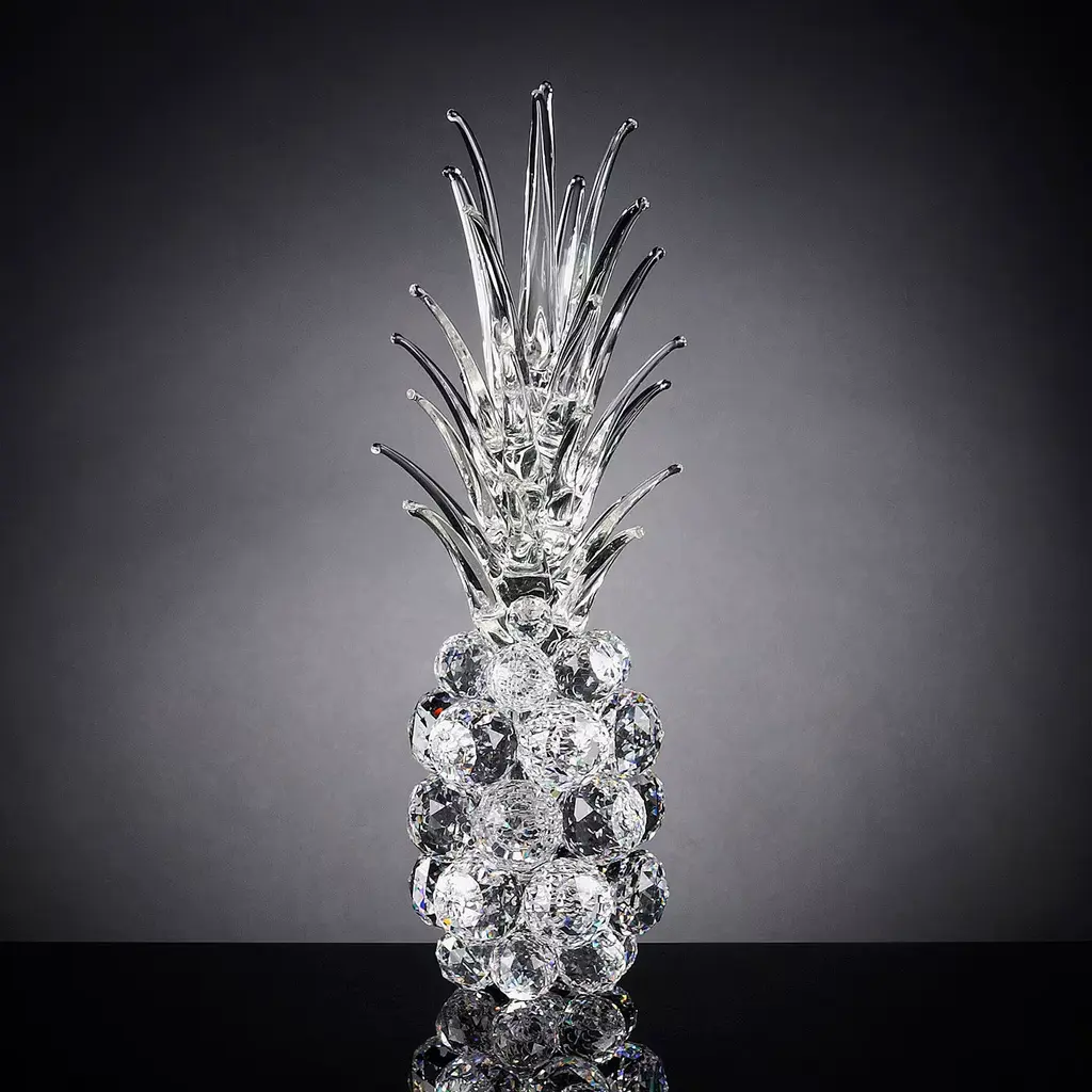 A splendid objet d'art that functions as decorative sculpture, this piece is entirely handcrafted of bright and refined crystal. Marked by the natural shimmering quality of the crystal, it will make a statement in a modern interior especially when paired with other pieces from this series.