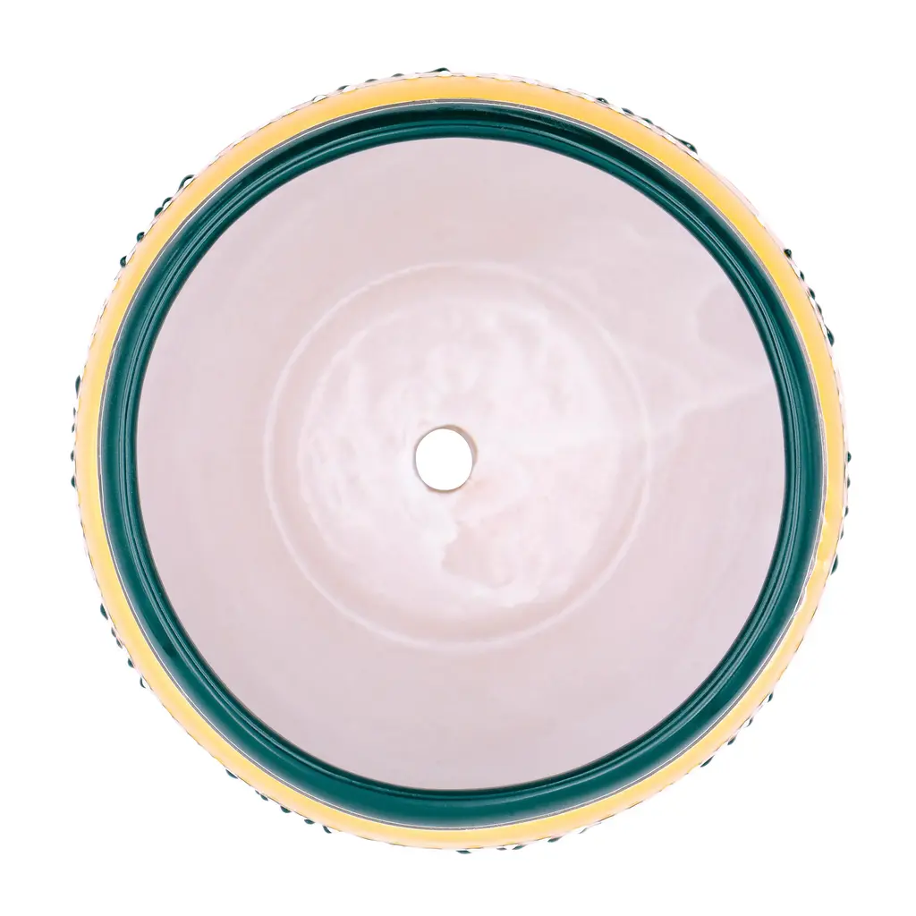 Bring quality craftsmanship to your home with an authentic Talavera planter. Crafted in Mexico, this planter is created in traditional Talavera style with hand-thrown ceramic clay. With its vibrant orange color and robust shape, this planter is the perfect combination of functional design and art. The glaze coating is applied by hand and seals in the intricate artistry and gives the planter a wonderful shine, making it safe for display indoors or out. Feature this planter in your living room, entryway, porch, deck and more. The hand-painted colors perfectly complement greenery, florals or neutral spaces in need of a colorful upgrade. Bottom drainage hole included.