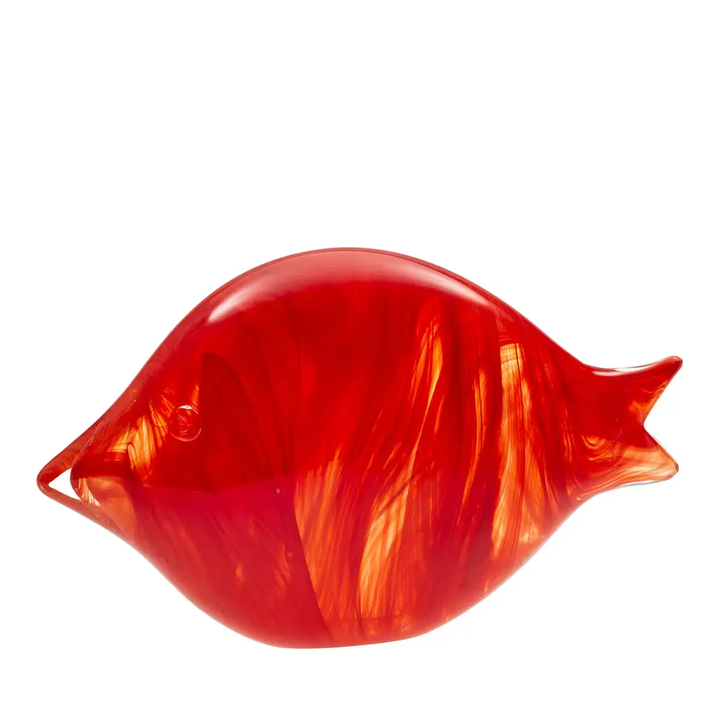 The medium Murano Fish figurine, a striking decorative piece that pays homage to the centuries-old tradition of Murano glassmaking. This exquisite sculpture showcases a stylized fish design, characterized by playful color nuances that dance across its transparent surface. Crafted with precision, the medium-sized figure is perfect for enhancing the aesthetic of any space, whether displayed on tables, desks, or consoles. Each piece is shaped using strong, durable glass, ensuring that its captivating beauty remains a focal point in home décor for years to come. The Murano Fish figurine embodies elegance and artistic flair, making it an essential addition to any discerning collection.