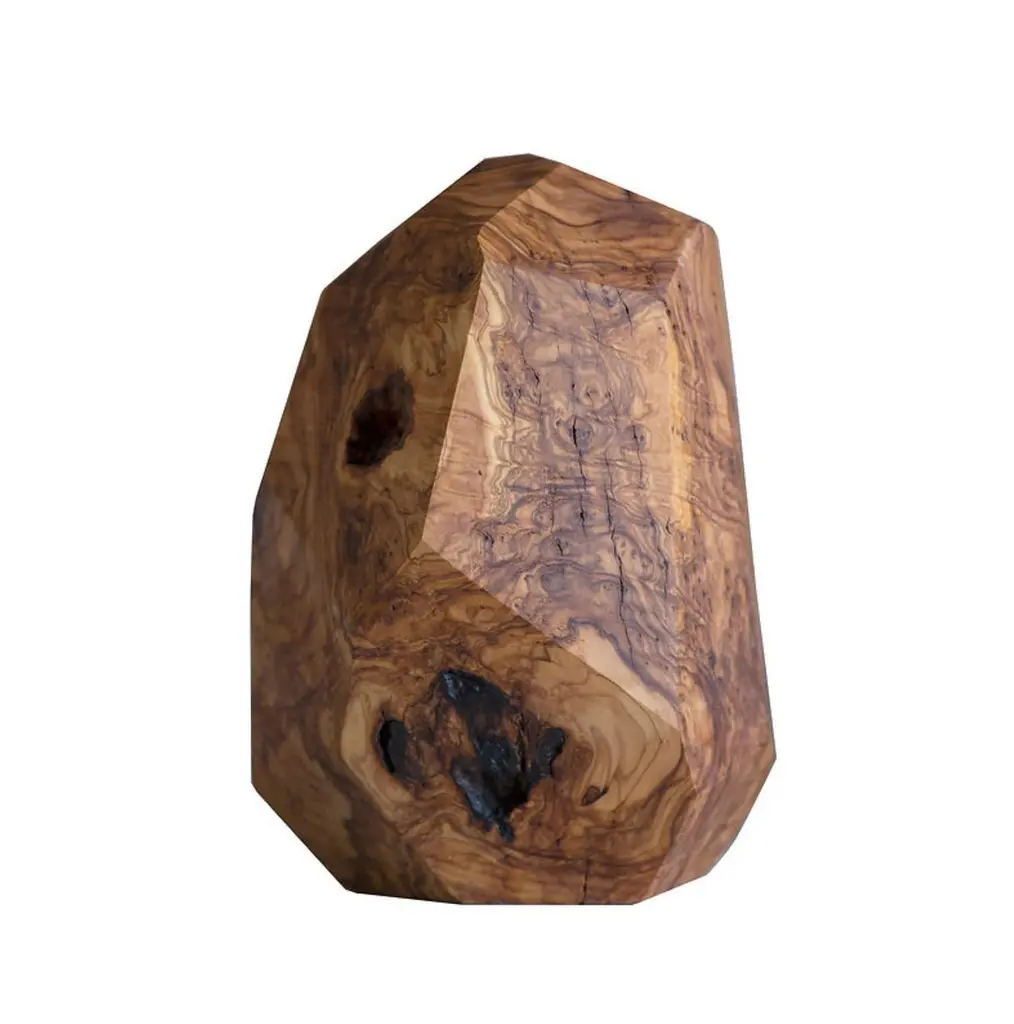 Medium Sculpture in olive wood by Rectangle StudioDimensions: 23 x 23 x 33 cmMaterials: Solid Olive WoodIt is collected from the roots and branches of different olive trees in the Aegean geography, shaped and finalized by handwork by the designer. Thanks to its crystal structure, you can see different wood textures and different light plays on every surface. With its sculptural stance, it will turn into a complementary accessory in your home.Rectangle Studio is a collective Design Brand created by Interior Architect and Designer Tarik KORKMAZ and Photographer Derya ATICI.Sculptural Furniture has a collective structure with its Interior Design, Professional Photography and Video works,Rectangle Studio is a design studio that works on different disciplines and materials and produces.While Rectangle Studio shapes its works in its own hands, it produces its works in cooperation with international and senior, industrial or artisanal partners.In interior design works; prioritizes the sense of sensitivity, dedication and excellence.In the photo works; In the relationships he established with his partners; is to produce works that are respected in the art of photography with an honest, creative and humanistic perspective.