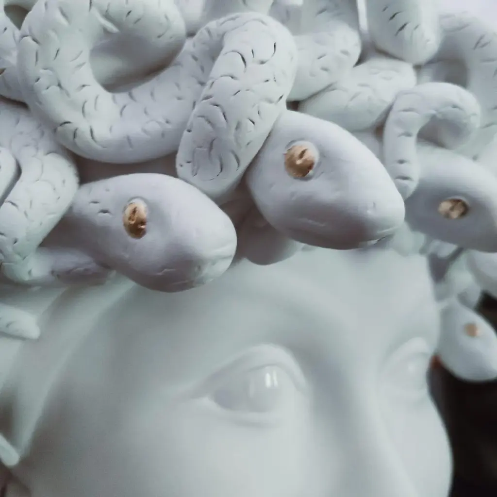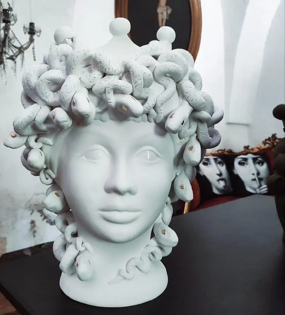 Medusa, White Matt Terracotta Sculpture, Handmade In Italy, 2022, Unique Piece