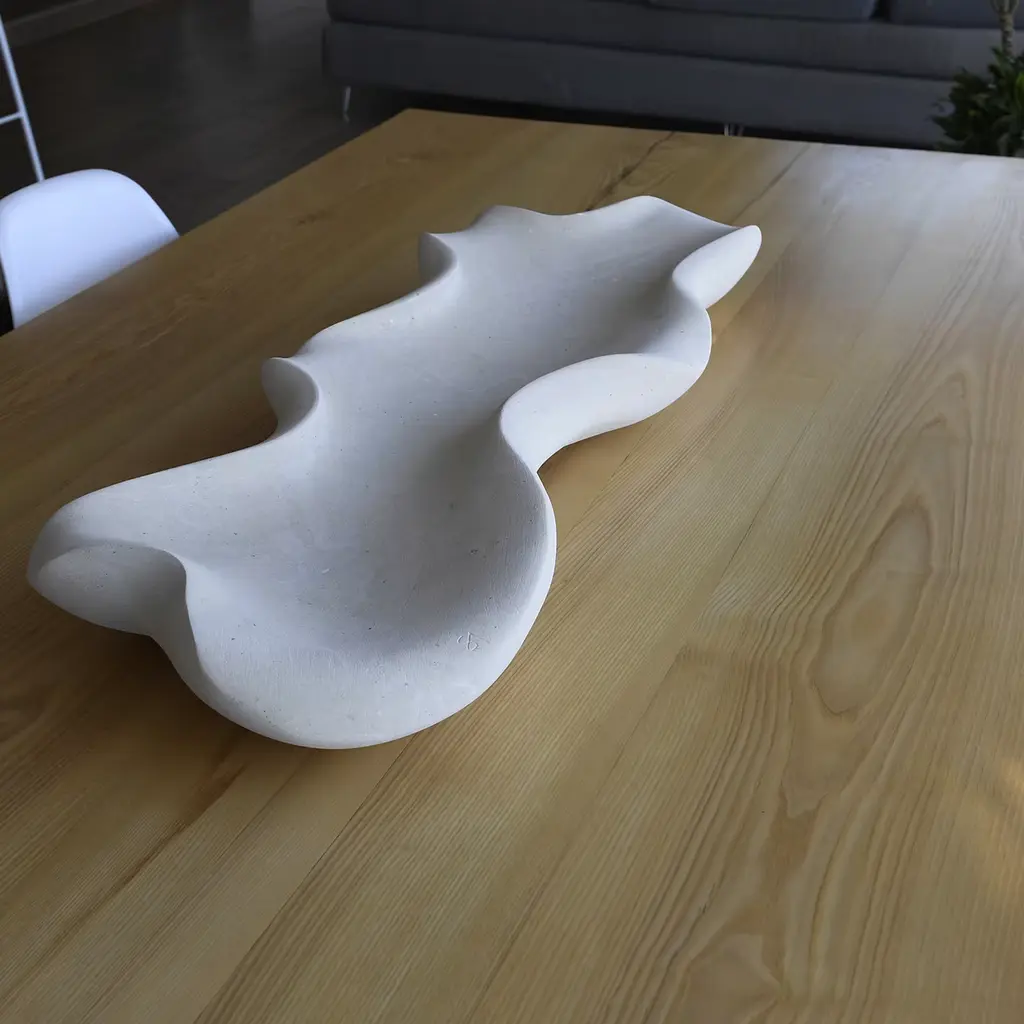 Part of the limited-edition Mèduse Collection, this bowl is a refined sculptural piece distilling pure fluidity. Its meandering profile underlines its natural essence: the silhouette is entirely handcrafted from a special bright stone only quarried in an area around Lecce, Apulia. Rich in animal and plant fossils, the stone implies the exclusivity of every single piece. Signed by the artist.