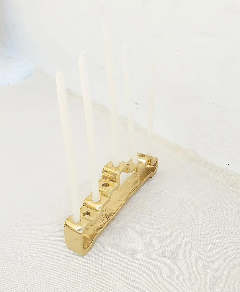 Menorah G048 Abstract Candelabra Cast Brass Gold Coloured Made In Spain