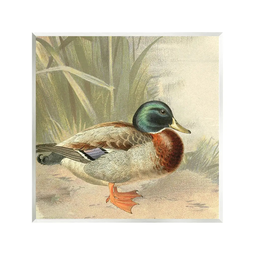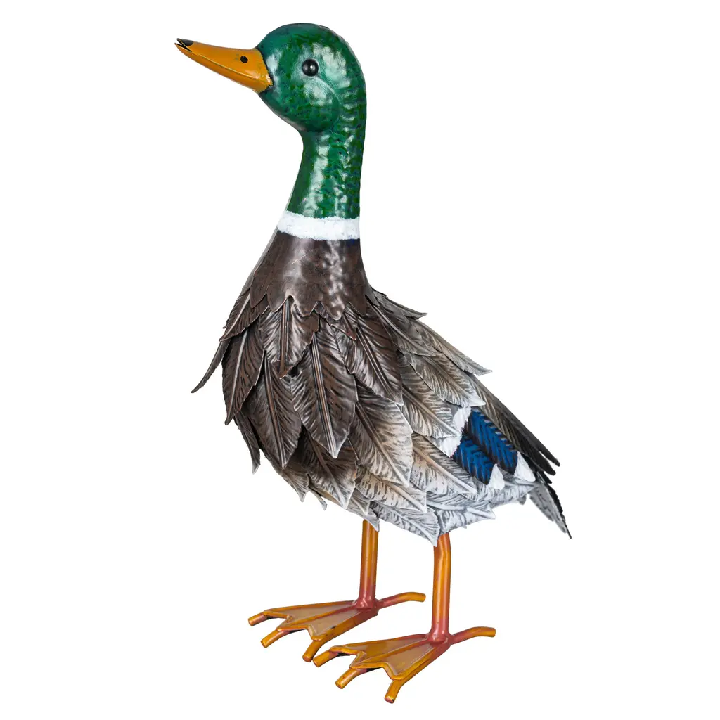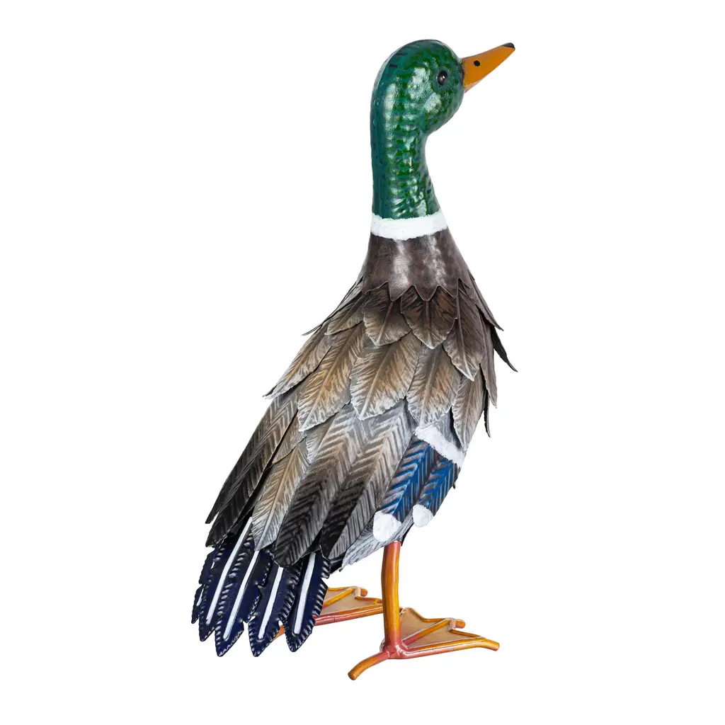 Metal Mallard Duck Garden Statue, Looking Up Pose. 16"h