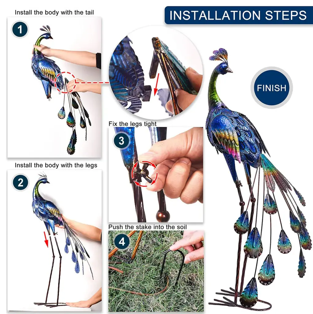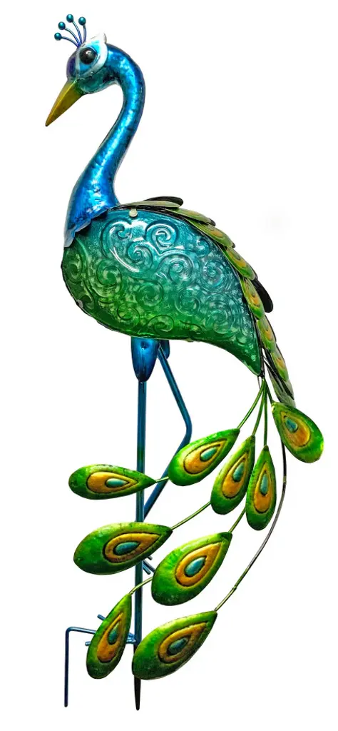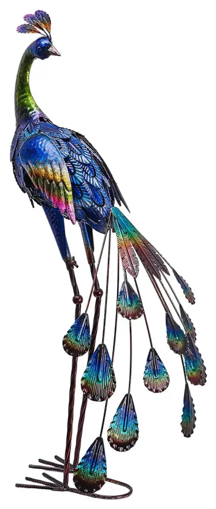 Features:-Original Design: The metal peacock with classic preening pose, colorful detailed carving, brings a graceful and tasteful charm to your garden.-Premium Quality: The garden art decor is crafted by premium quality textured metal sections which is durable and sturdy, the high quality varnish makes it more anti-fading and anti-rust .-Exquisite Craftsmanship: The peacock is delicate with vivid hand painting. For your safety, all sharp points were eliminated by excellent craftsmanship-Easy Assembling: Although the legs are disassembled for shipping, no tool required for assembling. U-shaped stakes are included in the package to stabilize peacock''s feet in the ground.Wide Application: The peacock is 7.5''''L X 17''''W X 35''''H. This elegant and delicate peacock is suitable for your garden, patio, courtyard, backyard and house.
