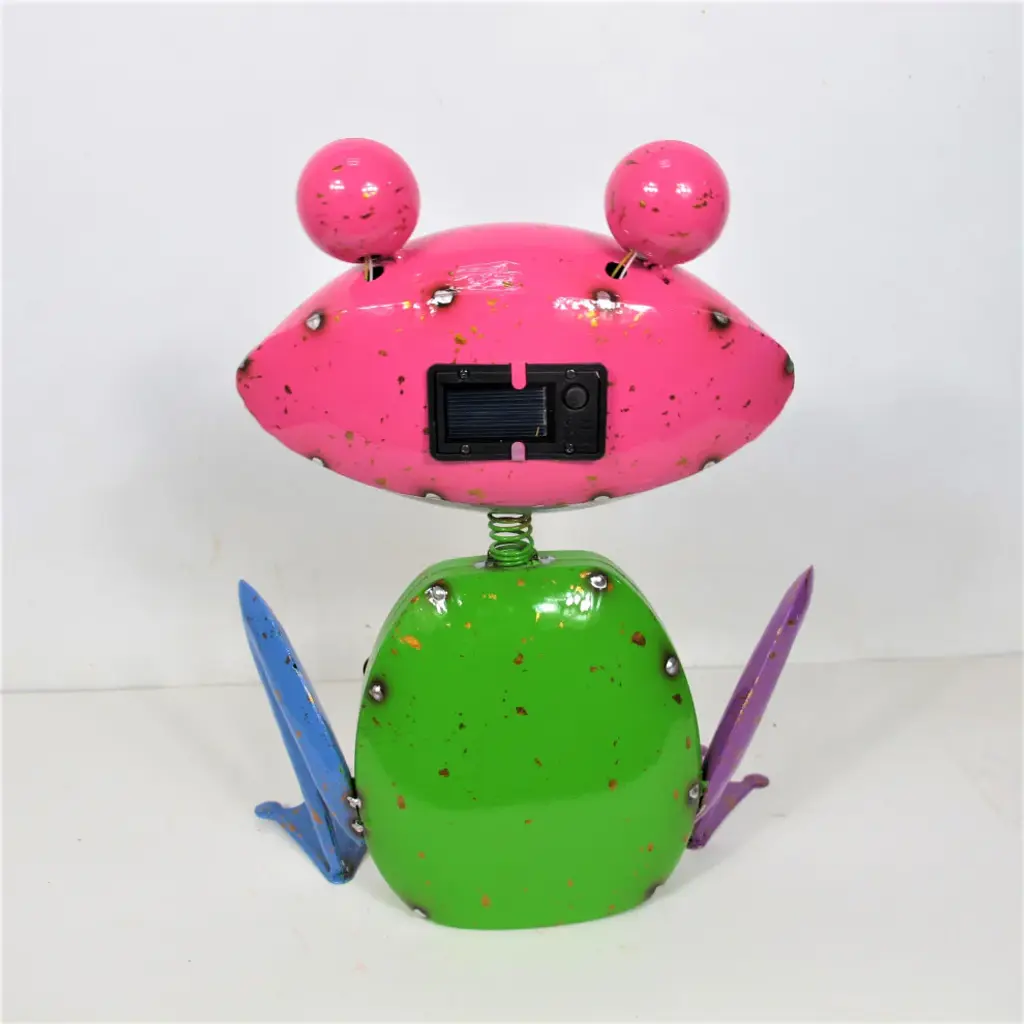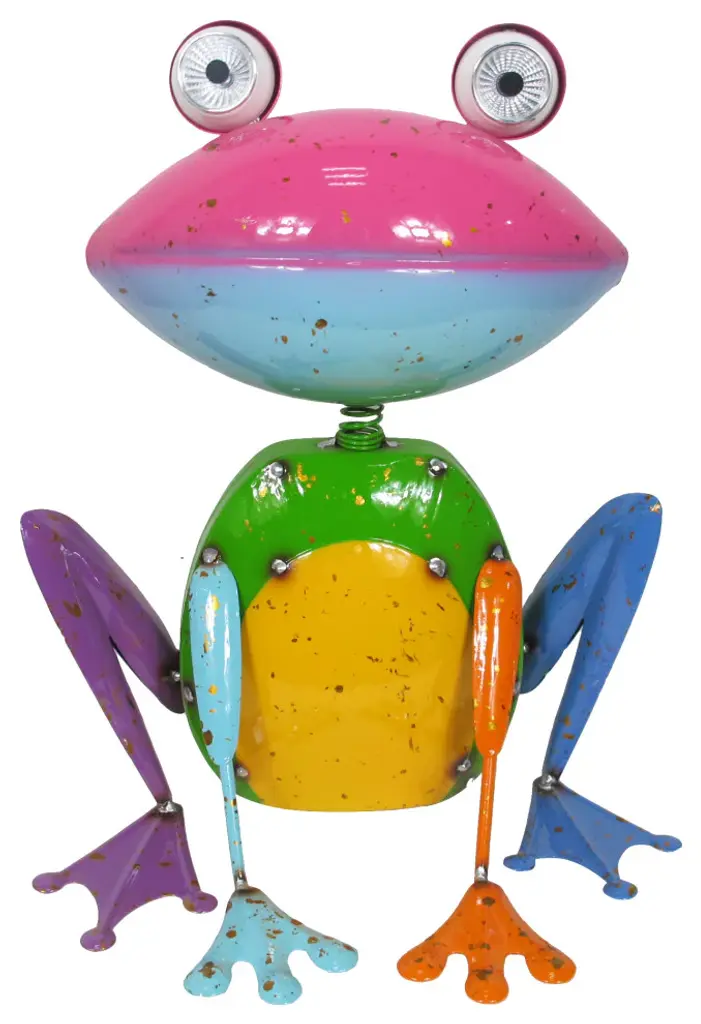Metal Pink Headed Frog Garden Statue With Solar Lighted Eyes Outdoor Yard Art