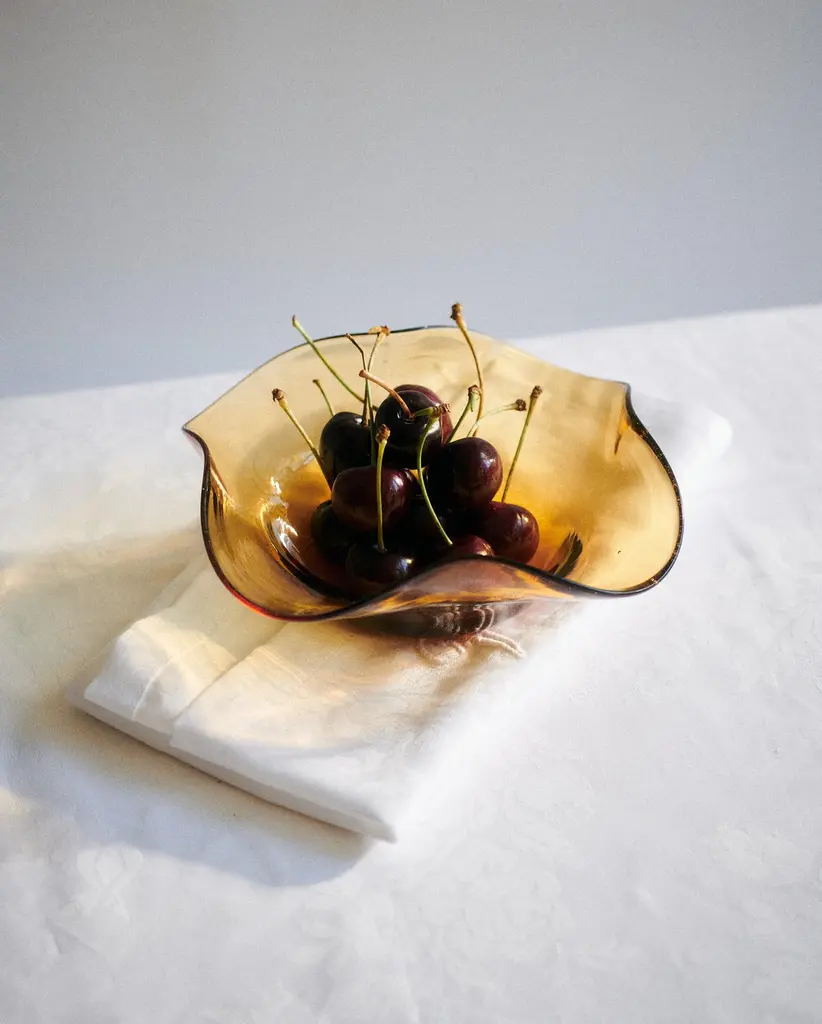 Mouth-blown and handcrafted Venetian GlasswareMade in MuranoMichele bowl is perfect for a bunch of grapes or for greeting you as a sculpture in the hallway. Venetian glass has been produced in Venice, typically on the island of Murano since the 13th century. Today, Murano is well known for its production of ornate distinctive, and high-quality art glass.The Michele collection, named in honor of Michele, the owner of the renowned glass studio, draws inspiration from the gentle rhythm of the ocean's waves.Drawing from the ocean’s organic forms, these glasses encapsulate the soft silhouettes cast upon the table and the endless dance that unfolds through their creation. The edges of the carafes and bowls seamlessly flow into one another, evoking the very essence of the sea's waves. Each piece mirrors the fluidity of the ocean, capturing its serene beauty in every curve and contour.Michele is Akua Objects' most Venetian inspired collection, introducing Italian carafes, vases and bowls with a poetic reference. Crafted strictly by hand by expert artisans, each object is a unique creation that upholds the ancient Murano tradition, a testament to the legacy of Michele’s family-run glass studio.