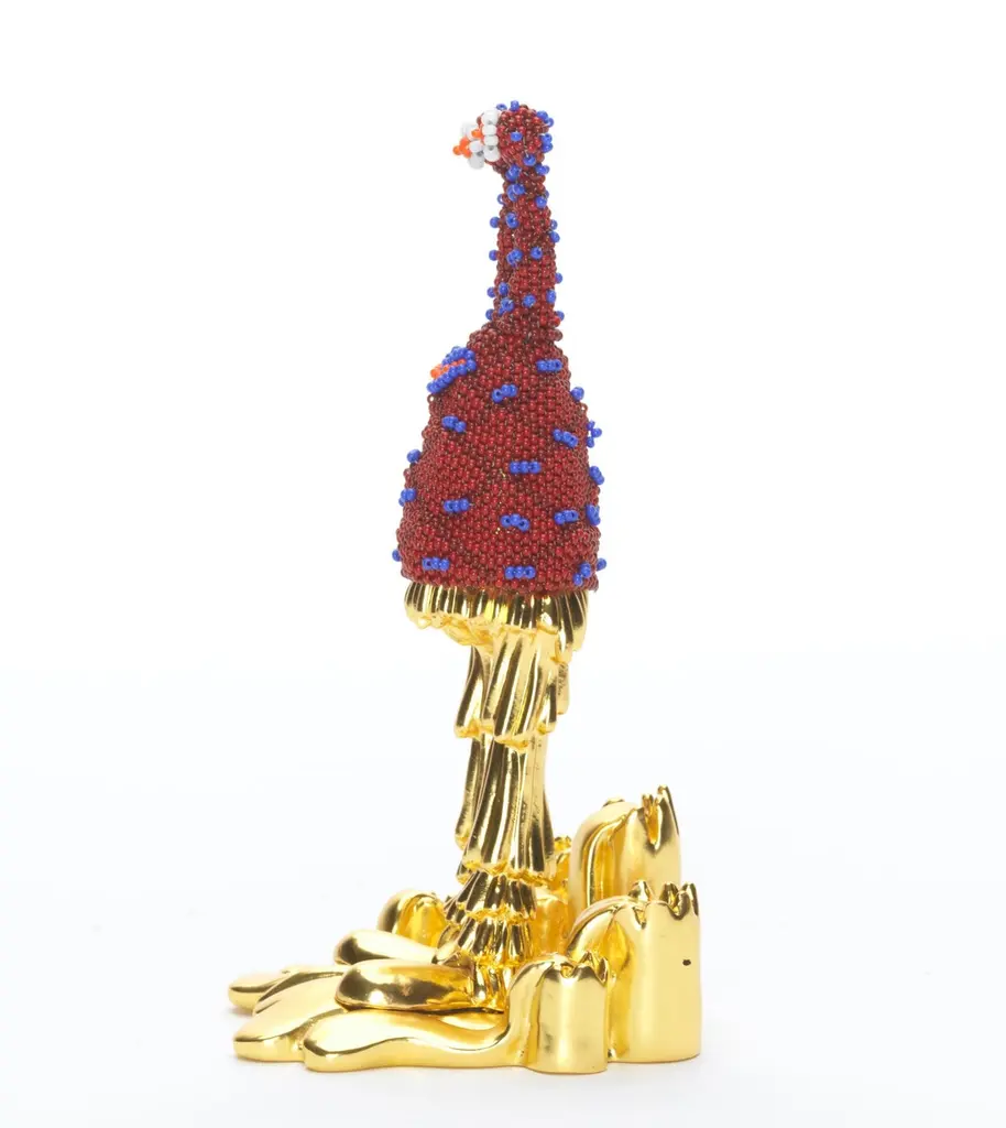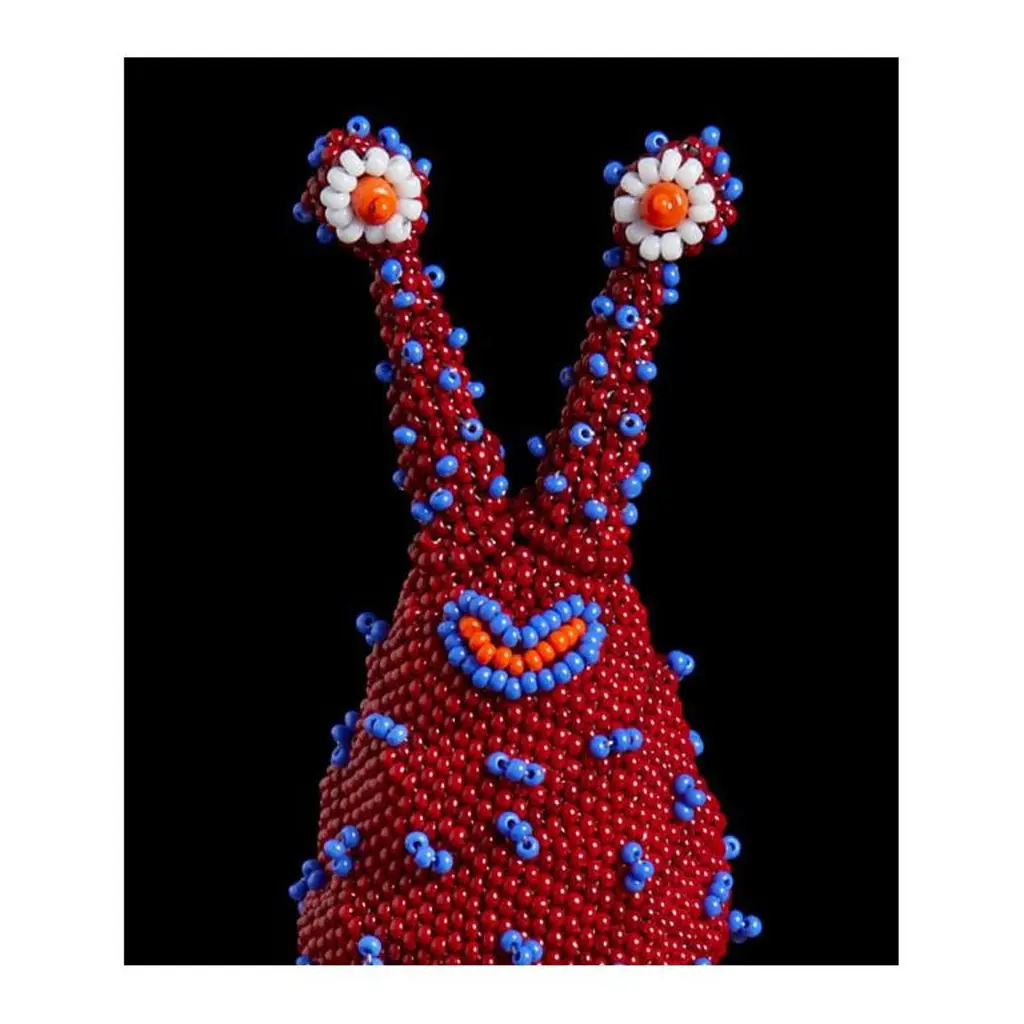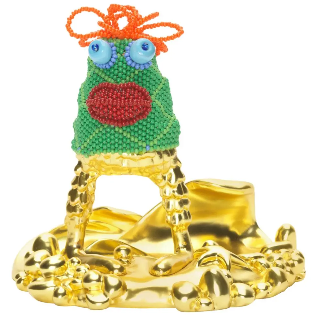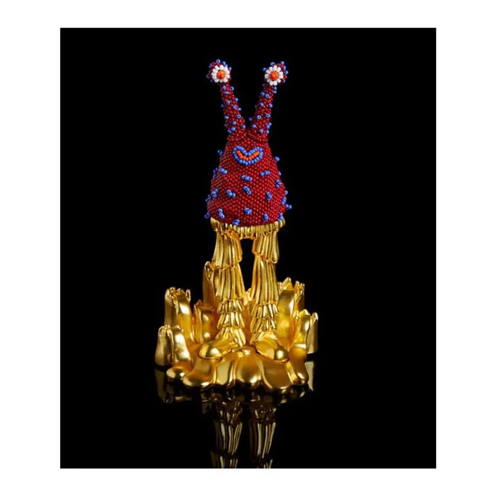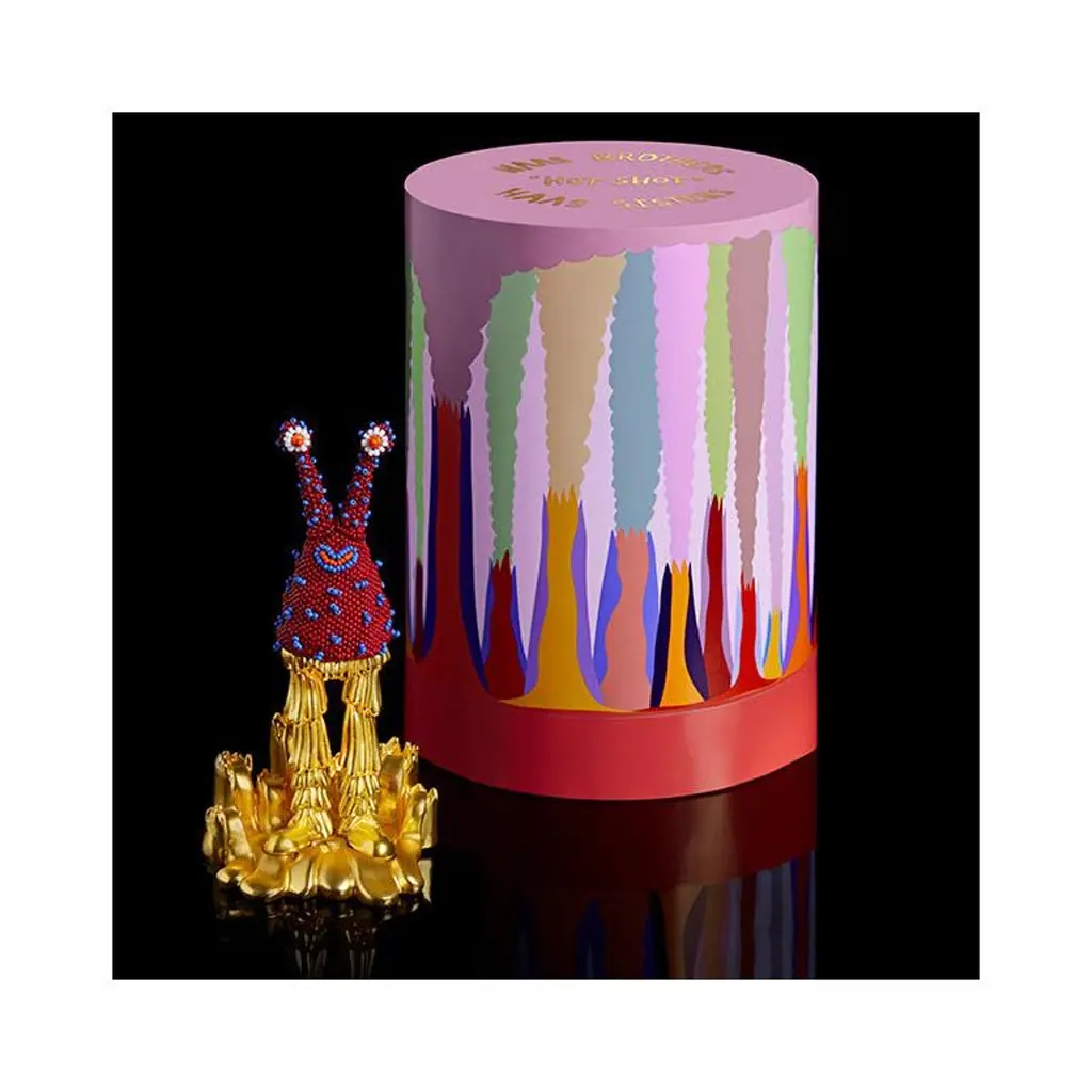 Hot Shot, active and alert, uses her stalked eyes to surveil the land for any potential volcanic eruptions and to warn all of those in the area. Make no mistake, her frantic temperament is not a weakness, as she is a known heroine. Thick-skinned, she can even swim in lava, her eyes bobbing above the boiling flow. When the heat is on, she can keep her cool.Material: Pewter base, double brass-plated and 18-karat gold-plated and hand polished three times. Hand-beaded with Venetian and Czech glass beads.Underside incised with “Hot Shot” by The Haas Brothers and Haas Sisters, Lost Hills, California. Each is signed by The Haas Brothers and numbered out of 500. Includes custom Haas Brothers-designed Hot Shot environmental box (width 6", height 8.5", depth 5.38"), reflecting her own unique Habitat. The small agricultural town of Lost Hills in California’s Central Valley is home to many talented women who were in need of a sustainable source of income. The Microfreaks (Daybreak Collection) is the result of The Haas Brothers' imaginations combined with the untapped skills within this community. 30% of sales benefit the rural community of Lost Hills in California’s Central Valley.This item is handcrafted and may vary slightly from the image shown. Each Microfreak will ship within 15 business days of purchase.