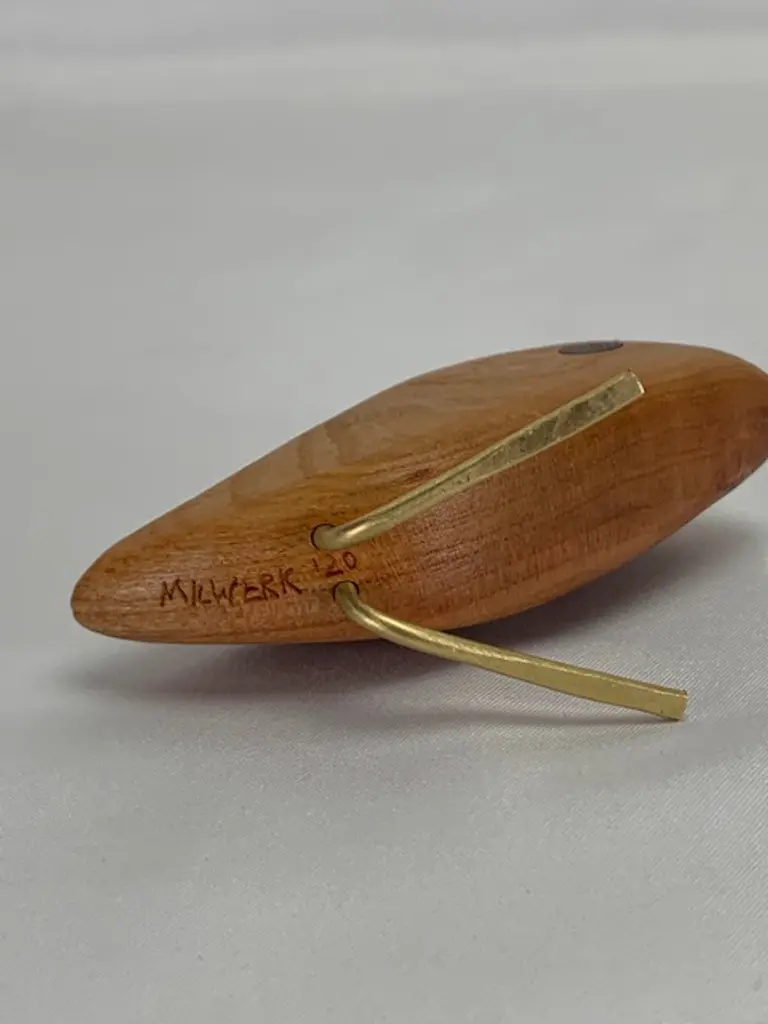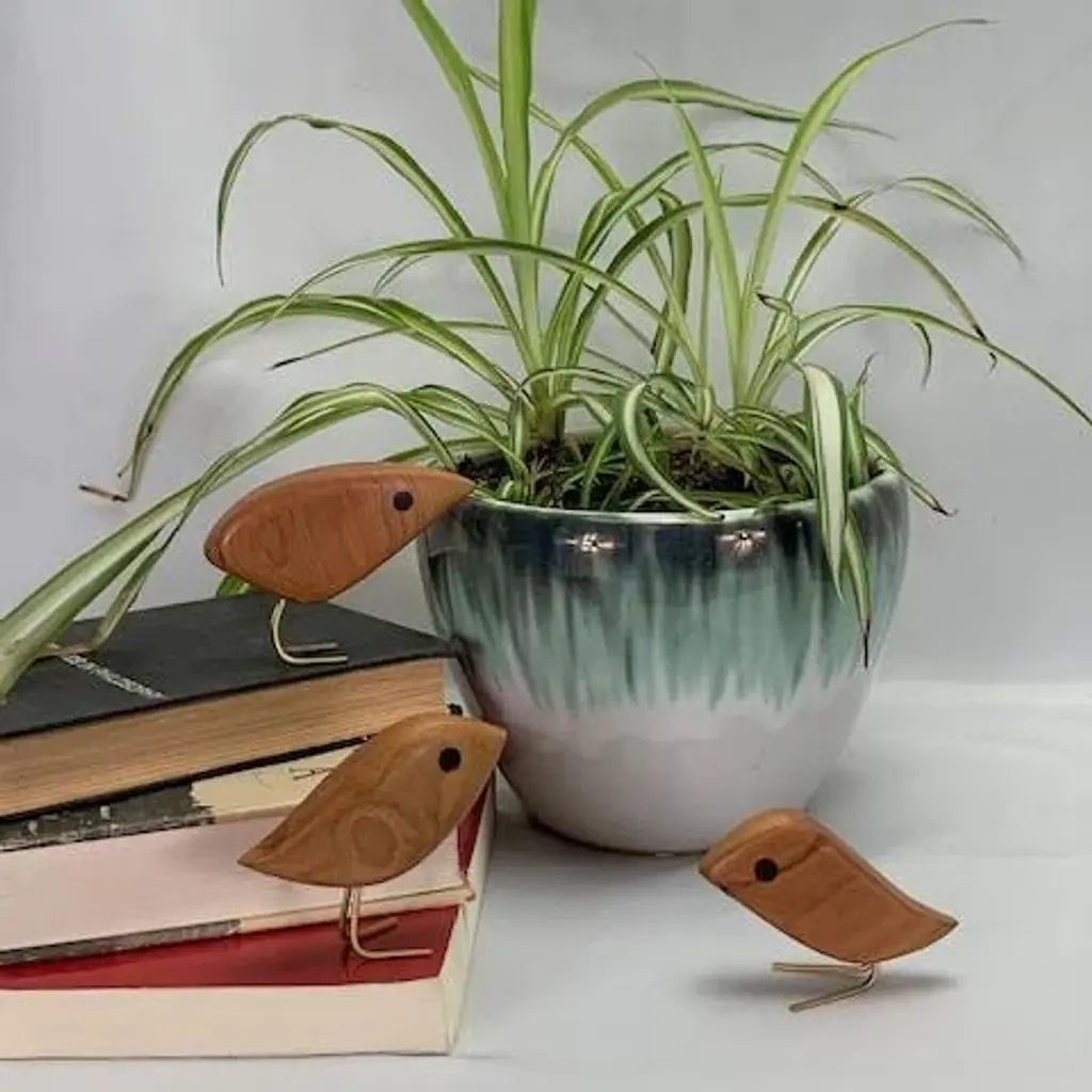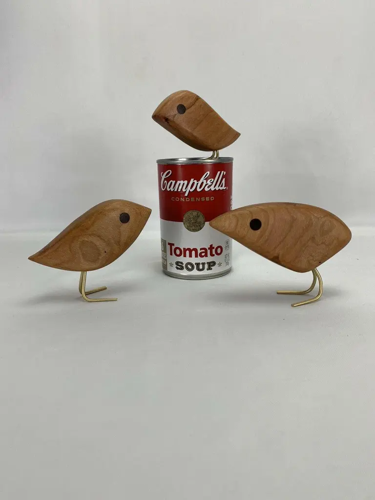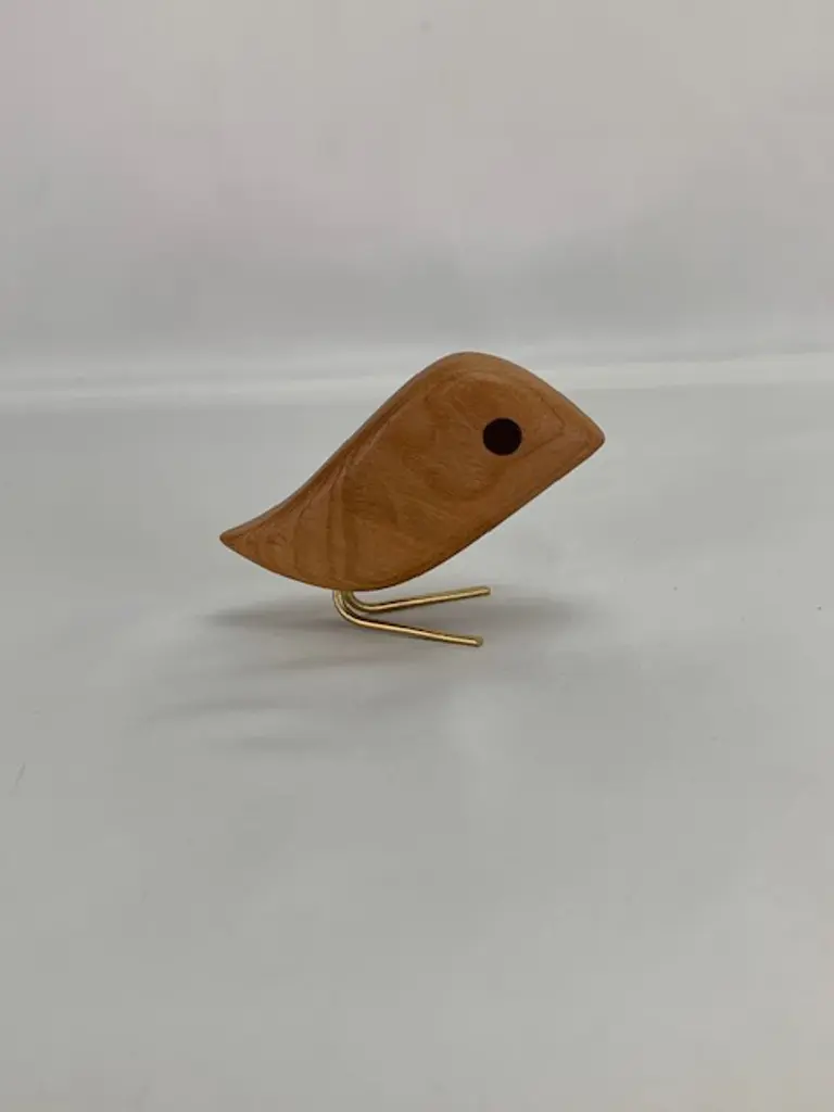 Mid Century Modern style "Trio of Birds" inspired by the wooden birds of Danish designer Jacob Hermann. The birds bodies are sculpted from Cherry hardwood, the eyes are inlaid Walnut and the feet are solid brass. Each bird has been sanded to a very fine finish and sealed with Danish oil. Creation Year: Made To Order - Please allow 7 days to process before shipping Medium: Cherry, Walnut, Brass Style: Folk art & Mid-Century Modern/ Danish, Coastal Grandmother Dimensions: The Tallest Bird is 2 1/2" tall The Widest Bird is 4" long from tip to tail The Bird Bodies are approximately 3/4" thick, the feet are spread slightly wider. Please refer to the listing photos for an idea of "Bird" dimensions. Milwerk Sculptures are inspired by the style of Mid-Century Modern Danish designers like Jacob Hermann and Svend Aage Holm‑Sørensen and American Mid-Century designers Charles and Ray Eames. In many pieces, the grain determines the subject and shape of the sculpture bolstering the organic quality of the wood. Each piece is an original, cut and shaped by hand. Each sculpture is signed (engraved) MILWERK with the year of manufacture. Thanks for checking out our shop. You obviously have great taste!