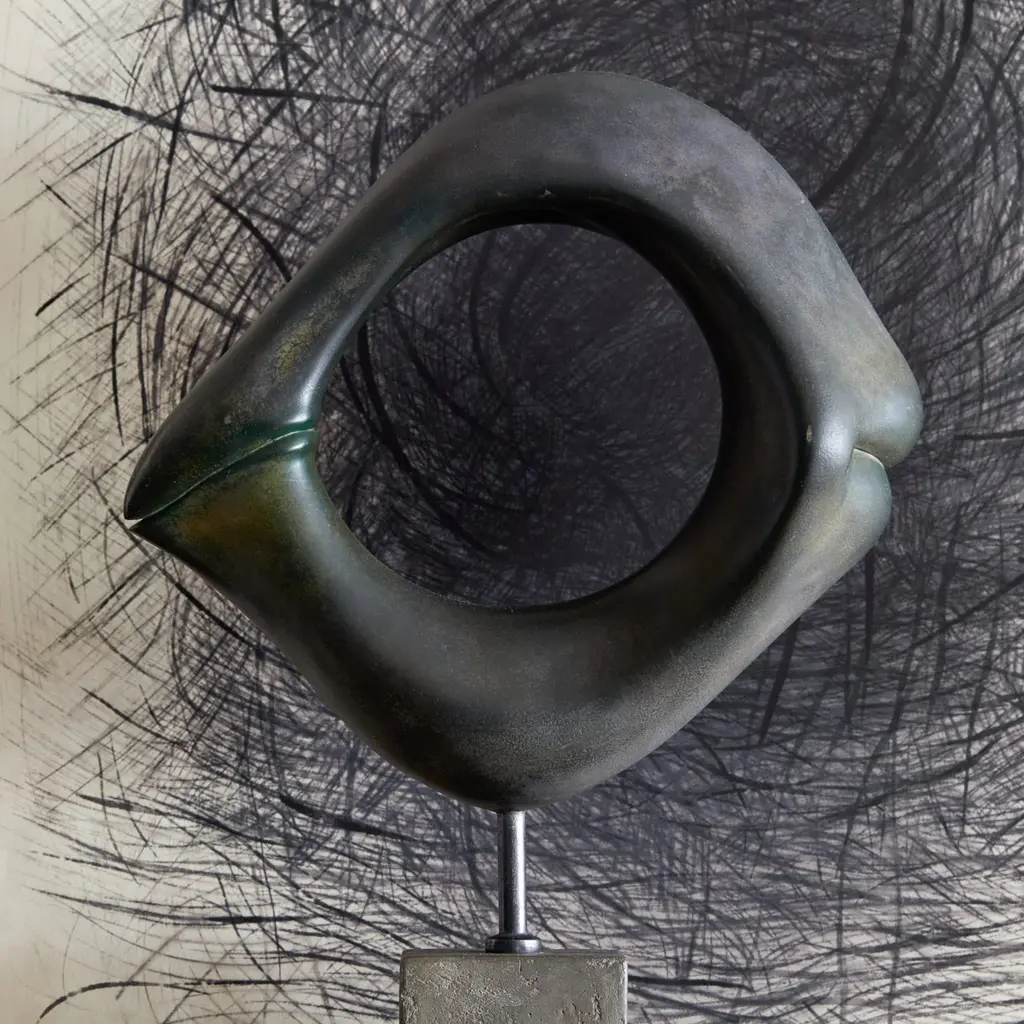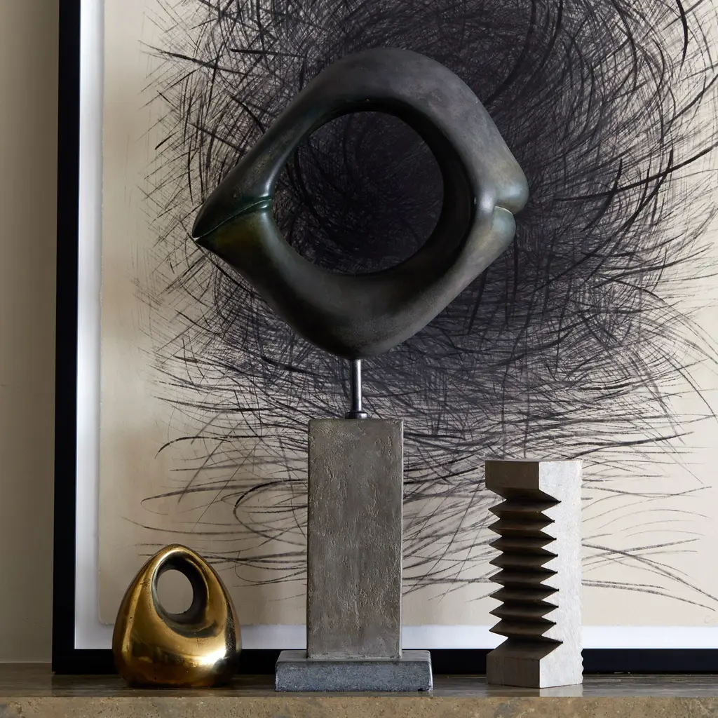 This midcentury organic sculpture is a stunning representation of modern design's embrace of natural forms. Its fluid, looping shape draws inspiration from organic motifs, creating an interplay between positive and negative space that captivates the eye. Set atop a robust concrete base, this sculpture balances softness with strength, offering a striking contrast that enhances its visual impact.