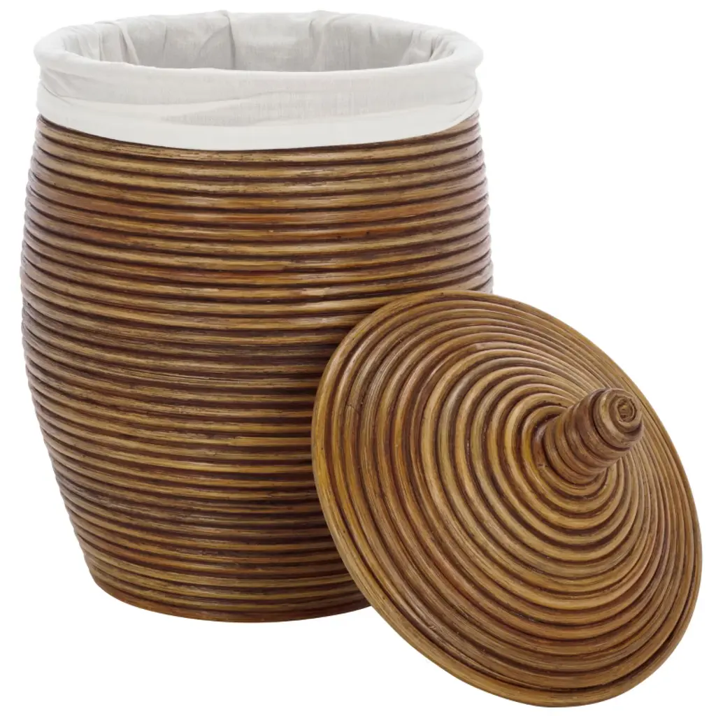 Introducing the Mikkel laundry basket - a perfect blend of practicality and style. Crafted with love in a warm honey-brown wash and pristine white color, this piece embodies smart functionality and charming aesthetic. Meticulously woven from robust rattan and layered with soothing fabric, the Mikkel Laundry Basket provides a light yet sturdy solution for your laundry needs. Its resilience and design prowess elevates it from a mere utility item to a staple piece of home decor. The Mikkel Laundry Basket is ideal for those who appreciate aesthetics not just in their living spaces but also in their utility spaces. Its subtle color palette allows it to blend seamlessly in any room, without sacrificing the room's existing aesthetic. The fine craftsmanship of this basket offers a substantial amount of space for your laundry, ensuring tidiness while adding a touch of elegance to your home. The Mikkel laundry basket is a splendid choice that beautifully combines utility with chic design. Choose Mikkel, choose style with substance!