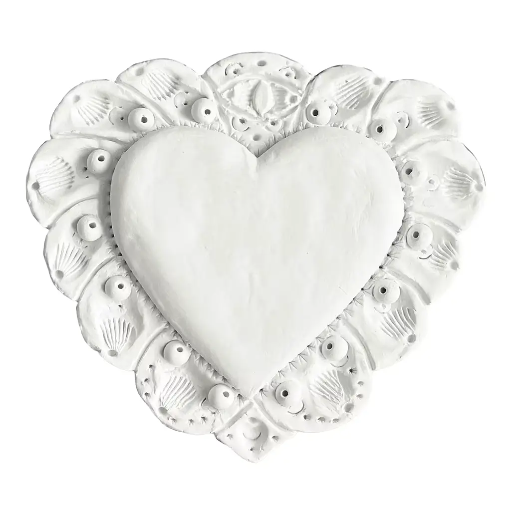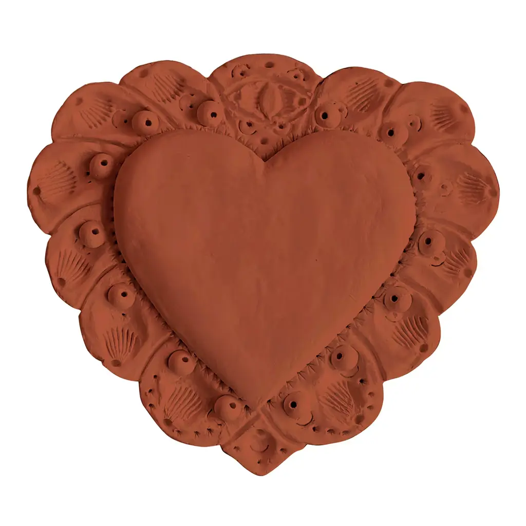 The Milagros Sacred Heart Plaster Sculpture is a captivating piece that draws inspiration from the rich symbolism of the Mexican "Milagros." Crafted from plaster and elegantly adorned with delicate gold leaf, this unique sculpture embodies the universal symbol of the heart, representing love, genuine spirituality, and acting as a protective charm. The intricate detailing surrounding the heart adds a sense of artistry and warmth, making it a stunning focal point for any wall décor. Ideal for enhancing the ambiance of a living space, this sculpture invites admiration while conveying profound emotional significance. A remarkable addition to any home décor collection, it seamlessly blends tradition with contemporary elegance.
