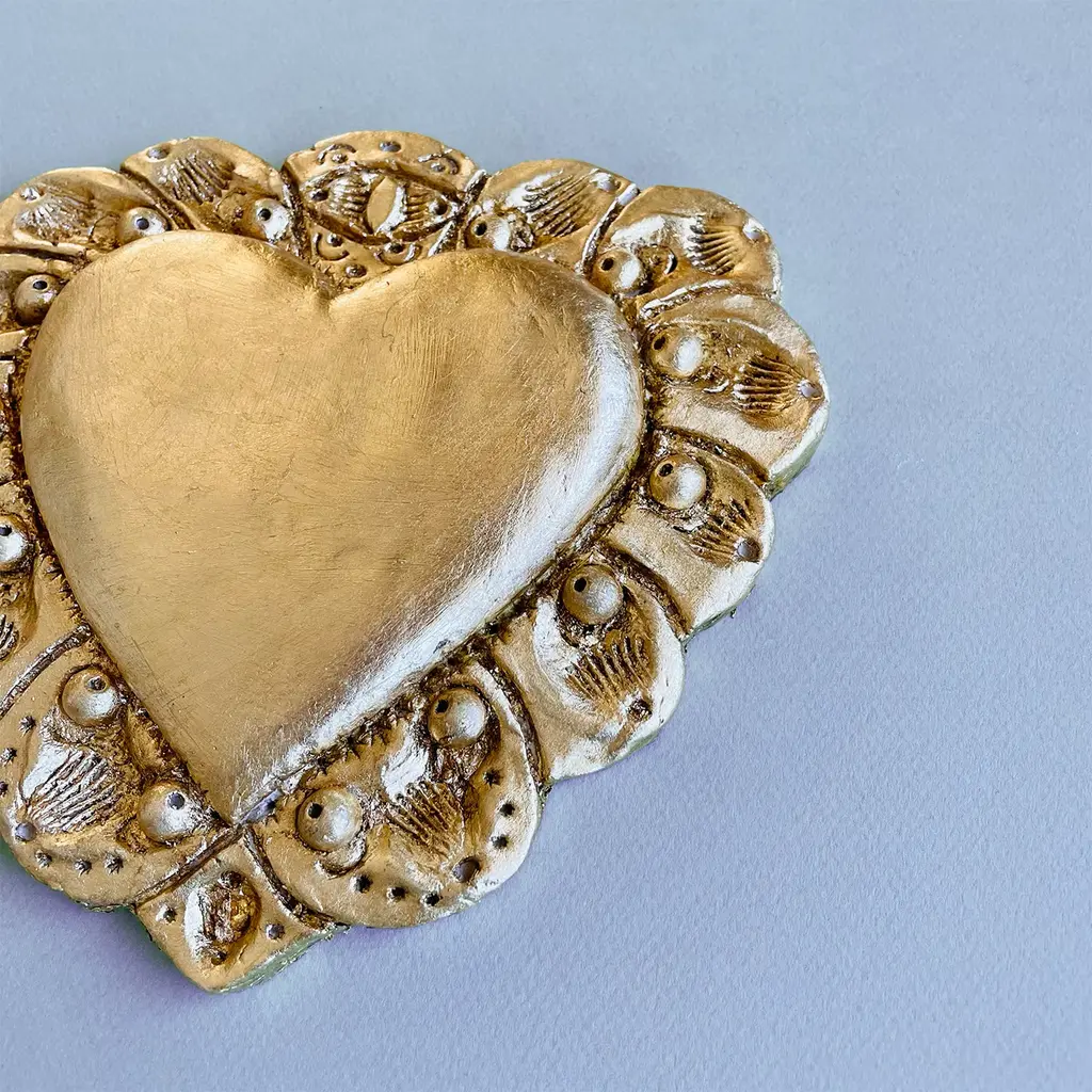 Milagros Sacred Heart Gold Plaster Wall Sculpture