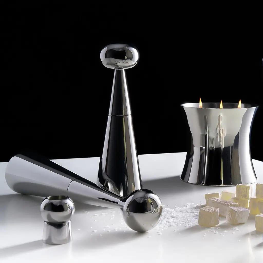 The Small Mill Grinder combines striking handles with a refined conical design, crafted from durable stainless steel. Built for lasting use, it features a robust mechanism developed by industry experts. Its stainless steel finish ensures easy cleaning and meets professional catering quality standards, making it both practical and elegant.