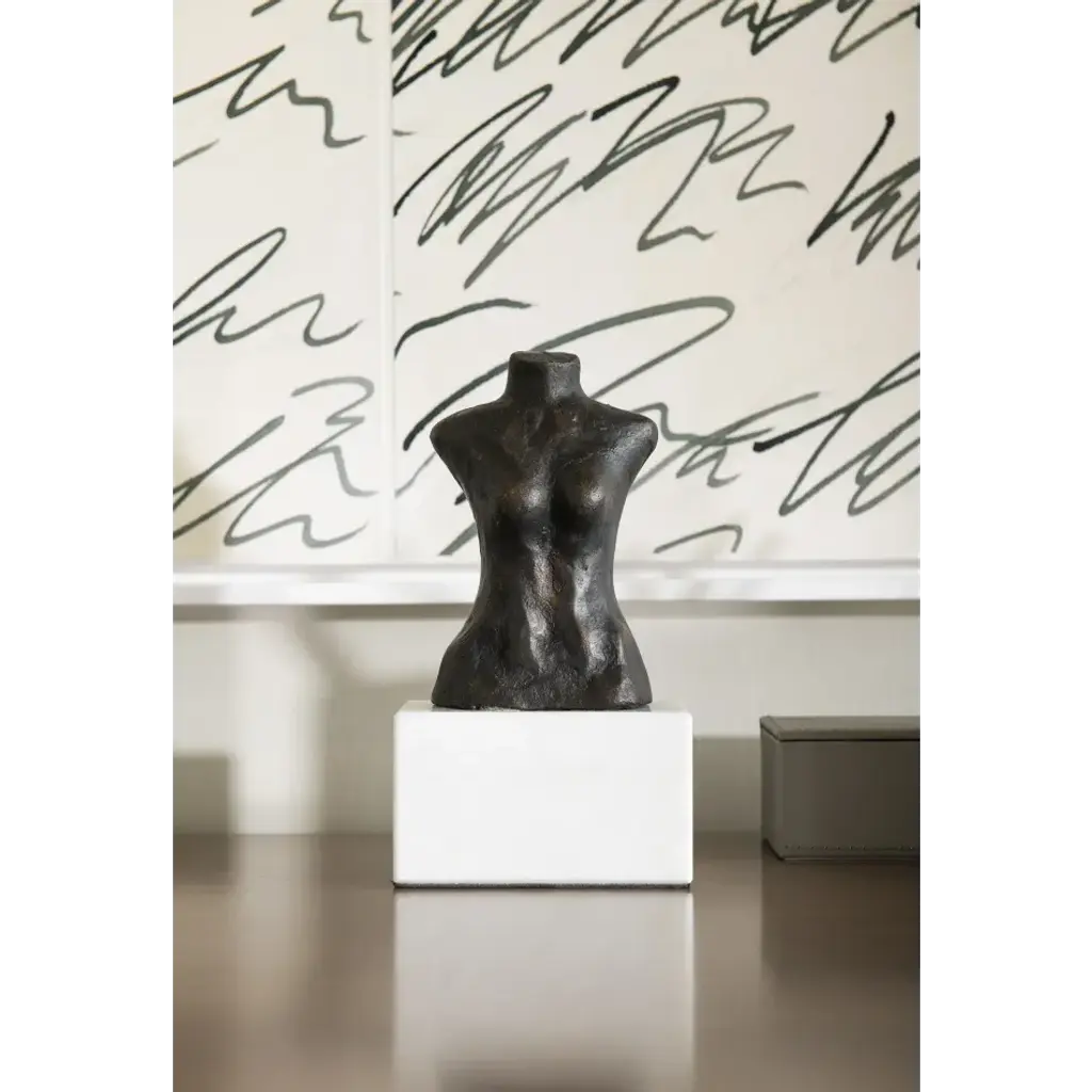 A monumental celebration of the human form. Like the sculptures of ancient Greece and Rome, the Milo Statue brings romantic spirit to the classical figure study. In both name and design, the bust is an homage to the iconic Venus de Milo, with a mix of materials that give it an archeological allure. Expertly cast in iron, it’s topped with an elemental finish of textured bronze, spotlighted atop a white marble pedestal that nods to the craftsmanship of its namesake. Rooted in art history, the Milo serves as a sophisticated and striking conversation piece for the home or office.