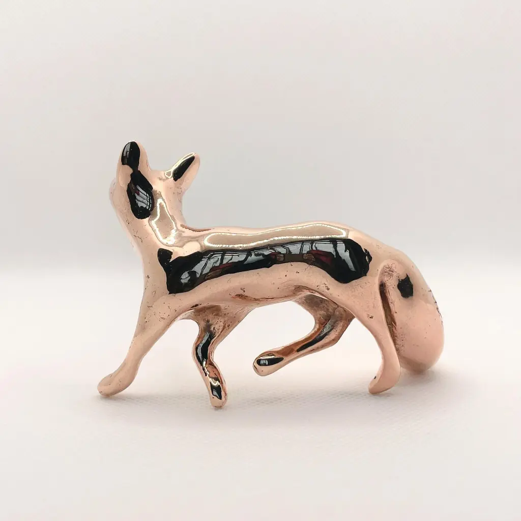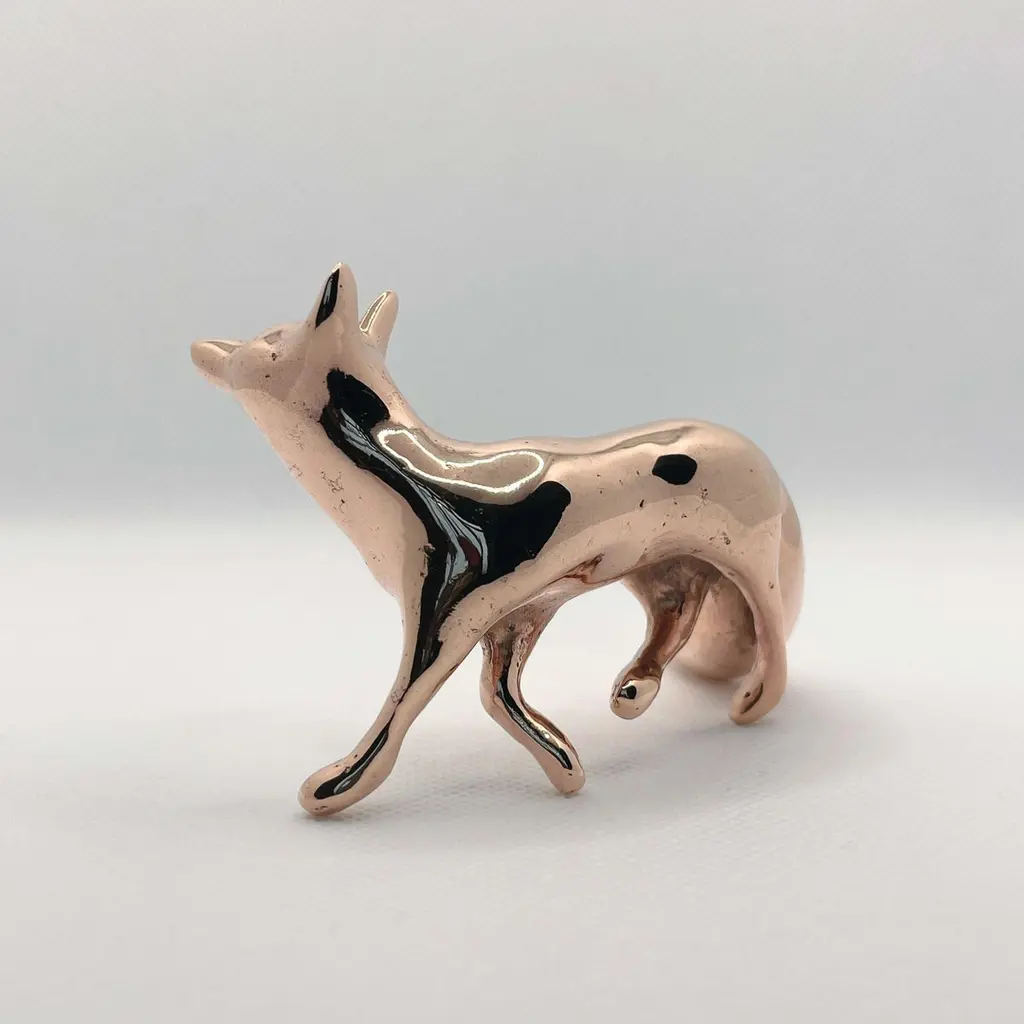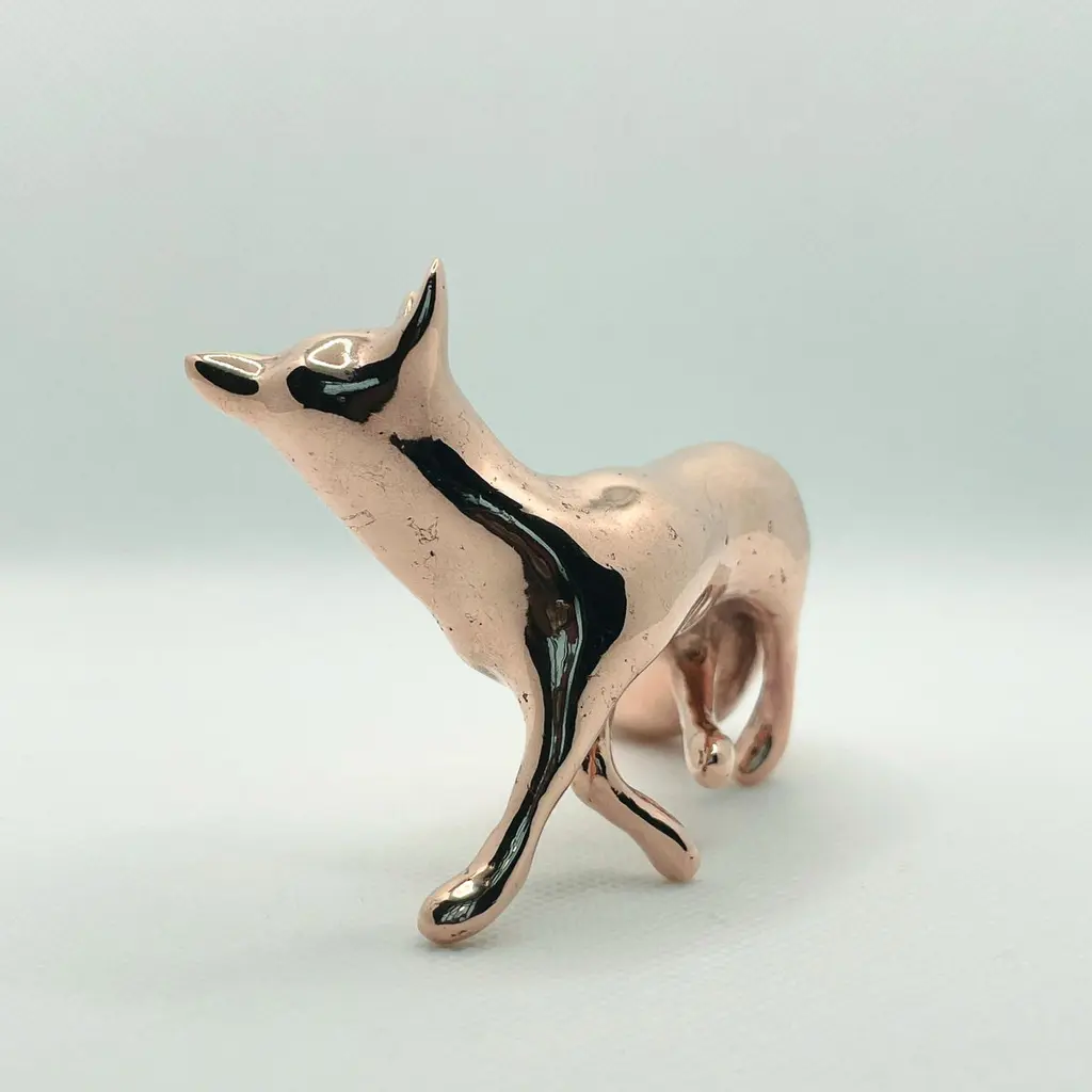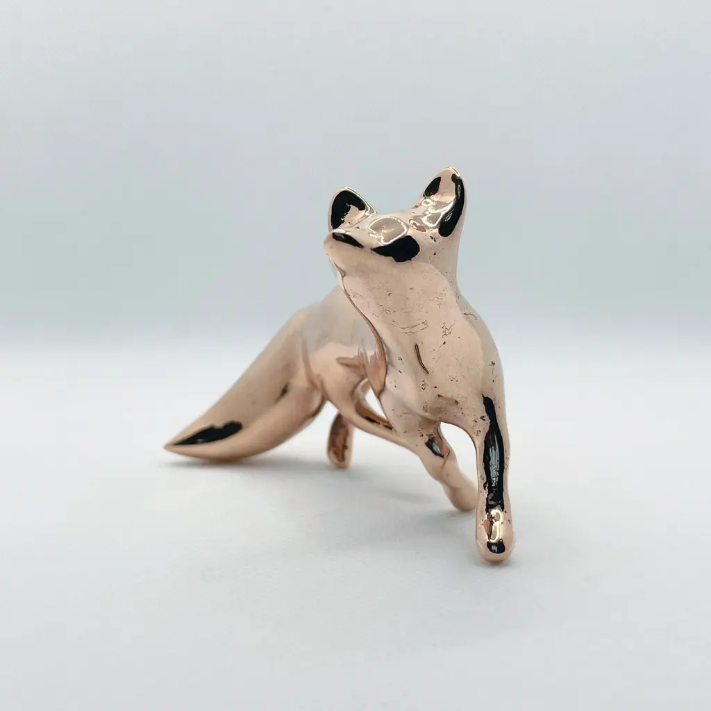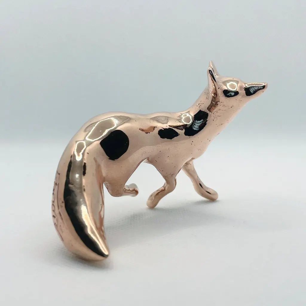 Polished bronze hand cast miniature fox sculpture by artist Javier de la Rosa.Javier De la Rosa has created a series of bronze cast miniature sculptures that celebrate animals and the beauty of the everyday. Each of these exquisite solid bronze pieces are handmade individually with incredible skill and detail by the artist using the lost-wax technique and polished by hand with the utmost care.Dimensions: 7.5cm H x 5cm W x 5cm D / 2.95in H x 1.97in W x 1.97in Materials: hand polished bronze.Please note that any shadows appearing on the sculpture's surface are the due to reflections. This piece is made of polished solid bronze only.ABOUT THE ARTIST AND THE PROCESSJavier de la Rosa (b. 1984, Madrid, lives and works in London, UK) graduated from the Faculty of Fine Arts at the Complutense University of Madrid (2007). De la Rosa explores the passing of time and the pulse of life through the study of both human and animal natures.De la Rosa’s skilled sculptures stand out for their ability to convey emotions through bronze, crafted using the lost-wax technique and polished by hand with the utmost care. Every curve and surface not only reflects the form of the animal but also the artist’s sensitivity in capturing the essence of life.The delicacy in the modelling of the bronze captures the softness of the lines and envelops the volume in a subtle manner, evoking an immediate connection with the viewer. With this sculpture, Javier de la Rosa succeeds in transforming an everyday object into a work of art that invites for reflection and visual enjoyment.Javier de la Rosa's works have been acquired by prestigious collections such as the Antonio Gala Foundation, the Rodríguez-Acosta Foundation, Jacinto Higueras Museum and the Valdepeñas Museum, among others.Note that prices on the website do not include local taxes and/or applicable import duties for deliveries outside of the United Kingdom.ORDERS OF MULTIPLE ITEMS OF THE SAME TYPE: Please contact us to receive a Packing and Shipping quote when ordering multiple mirrors of the same type. An order for multiple mirrors of the same type may not be accepted without extra packing and shipping fees. Thank you.