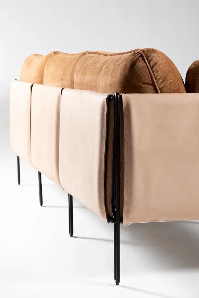 Sonia Sofa by Samuel Lamas, 2022Experience the elegance of the award-winning Sonia Sofa, a contemporary Brazilian masterpiece designed with geometric and architectural precision. Crafted from steel and leather, this sofa embodies lightness with its delicate iron structure that gently rests on the ground. The frame is lined with robust leather, while the cushions are upholstered in luxurious natural suede, ensuring both comfort and sophistication.Recognized for its innovative design, the Sonia Sofa was honored with the Architizer A+Awards 2019, winning in the residential seating category.Key Features:Dimensions: Available in 2, 3, or 4-seat configurationsMaterials: Premium Steel, Robust Leather, and Natural SuedeAesthetic: Light and simple, with a focus on geometric and essential designDesign: Contemporary minimalist style that combines elegance and functionalityCustomization Options:Fabric Choices: Choose from various types of exterior or interior fabrics, including natural leather, linen, canvas, wool, and suedeMetal Frame: Customizable in your desired colorAvailability:In Stock: 1 unit available in 100% natural linen fabric in BrasíliaCare Instructions:To maintain the pristine condition of your Sonia Sofa, regularly dust with a soft, dry cloth. For deeper cleaning, use a mild detergent and a damp cloth, ensuring the sofa is completely dry before use. Avoid prolonged exposure to direct sunlight and harsh weather conditions to preserve the color and material integrity.Shipping & Returns:This item is available for immediate purchase and delivery. Please contact us for detailed information on shipping and delivery options. Note that custom orders are non-returnable, reflecting the personalized attention to detail and craftsmanship invested in each piece.Elevate your living space with the Sonia Sofa, a perfect blend of modern Brazilian design and minimalist elegance. Enjoy the timeless beauty and functionality of this award-winning piece. Available now in natural linen fabric, each sofa is crafted with precision and care to meet your unique style preferences.
