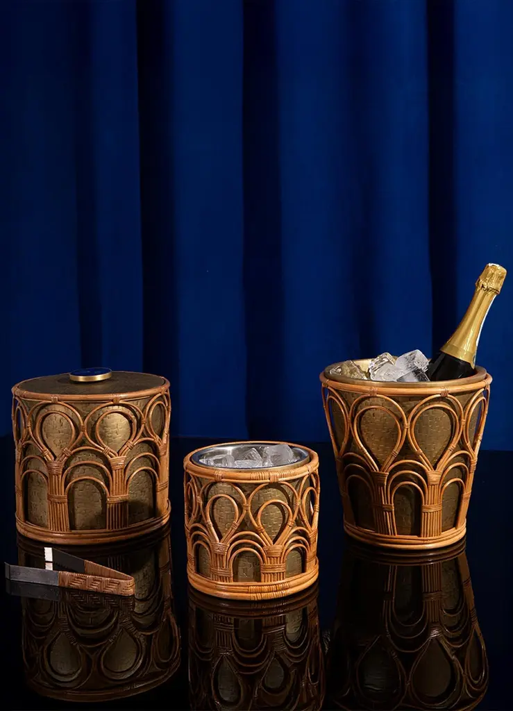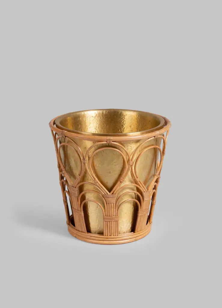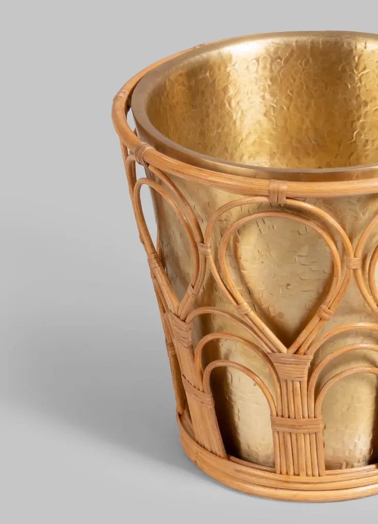 Mizoram Champagne Bucket In Brass And Cane, Viya By Vikram Goyal