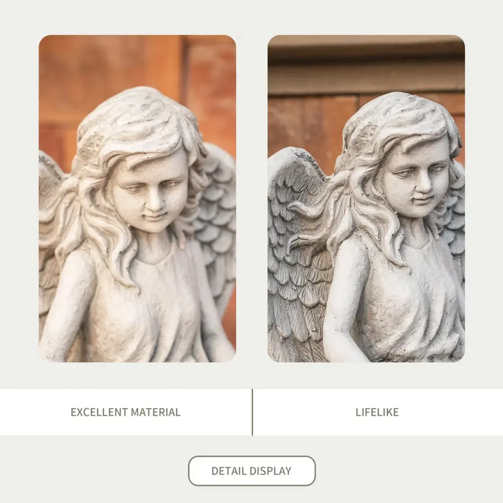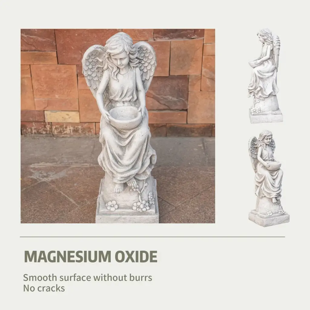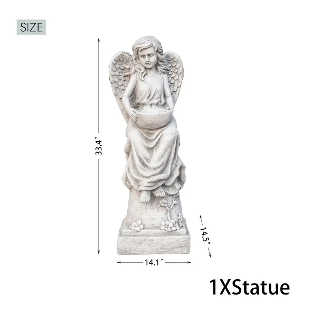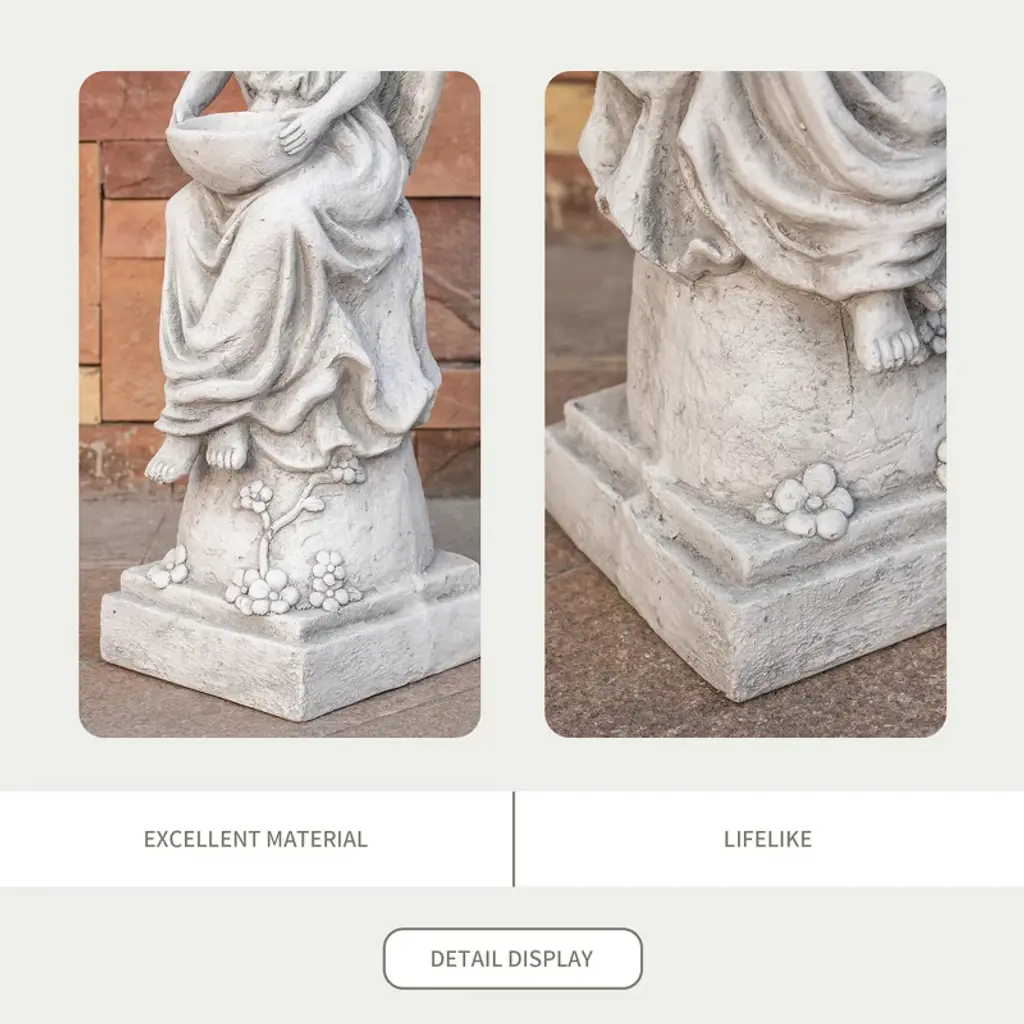 Introducing our Angels & Cherubs MGO Garden Statue—a divine work of art that brings celestial charm to any outdoor space. Expertly crafted from premium magnesium oxide, this lifelike angel sculpture features exquisitely detailed wings and a delicately designed bird feeder, capturing the grace and serenity of its subject. With dimensions of 14.1" x 14.5" x 33.4", this stunning piece is perfect for adorning your garden, porch, terrace, deck, or backyard. Built to withstand the elements with UV resistance and robust weatherproofing, it promises to remain a lasting symbol of beauty and elegance.