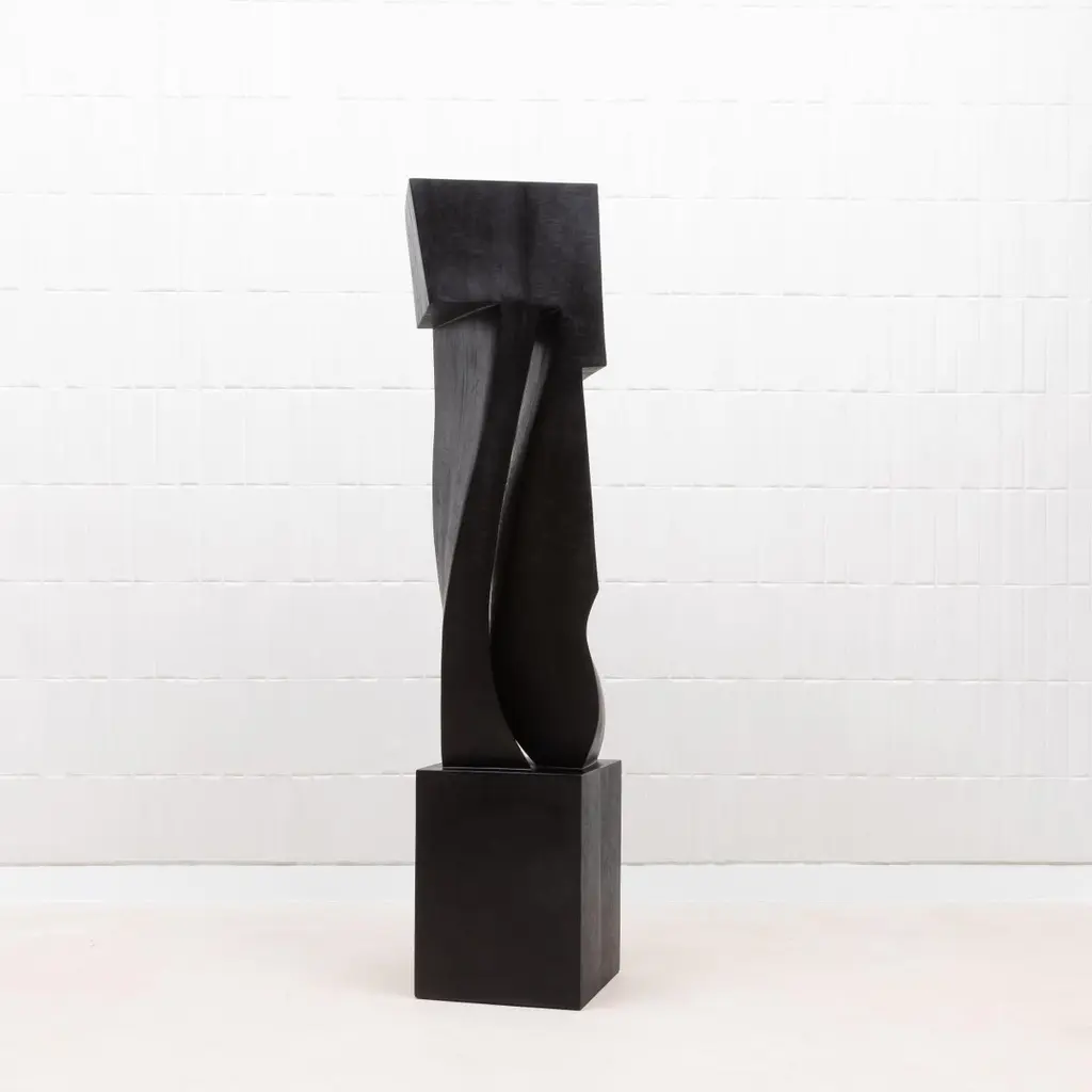 The "LEIF" sculpture by Patrick Coard Paris is a stunning embodiment of modern abstract art, meticulously crafted from a rich black oak veneer inlaid on a fiberglass core. Standing at an impressive 71.25 inches, this hand-crafted piece exudes a deep, natural elegance that highlights the wood's luxurious grain and texture. The sculpture’s fluid, organic lines are a testament to the artist’s mastery, creating a striking balance between strength and grace. The dark, refined tones of the black oak give "LEIF" a timeless sophistication, making it a bold and captivating statement piece for any space where luxury and artistry are celebrated.This sculpture was exclusively made for Mogul and is on display in our LA showroom.This sculpture is made for indoor use only.About the artist:Patrick Coard, a designer with Danish and Irish roots, began his artistic journey in Paris, where he first gained acclaim for his exquisite candle designs. Now based in Manila, Philippines, Patrick has expanded his craft into the realm of sculptural art, creating luxurious pieces that seamlessly blend design with deep emotional resonance.Each of Patrick’s sculptures is a testament to his dedication to craftsmanship. They are meticulously handcrafted by skilled artisans in the Philippines, combining natural materials with specialized techniques to achieve a unique, tactile beauty. The hand-painted finishes ensure that no two pieces are alike, making each sculpture a singular expression of refined artistry.Drawing inspiration from the sculptors of the 1930s and 1940s, Patrick’s modern collection radiates both relaxation and sophistication. His sculptures go beyond decoration; they connect with the human spirit, transforming any space into a sanctuary of elegance and peace. Patrick Coard’s creations are timeless treasures, embodying luxury and elevating the essence of any interior.