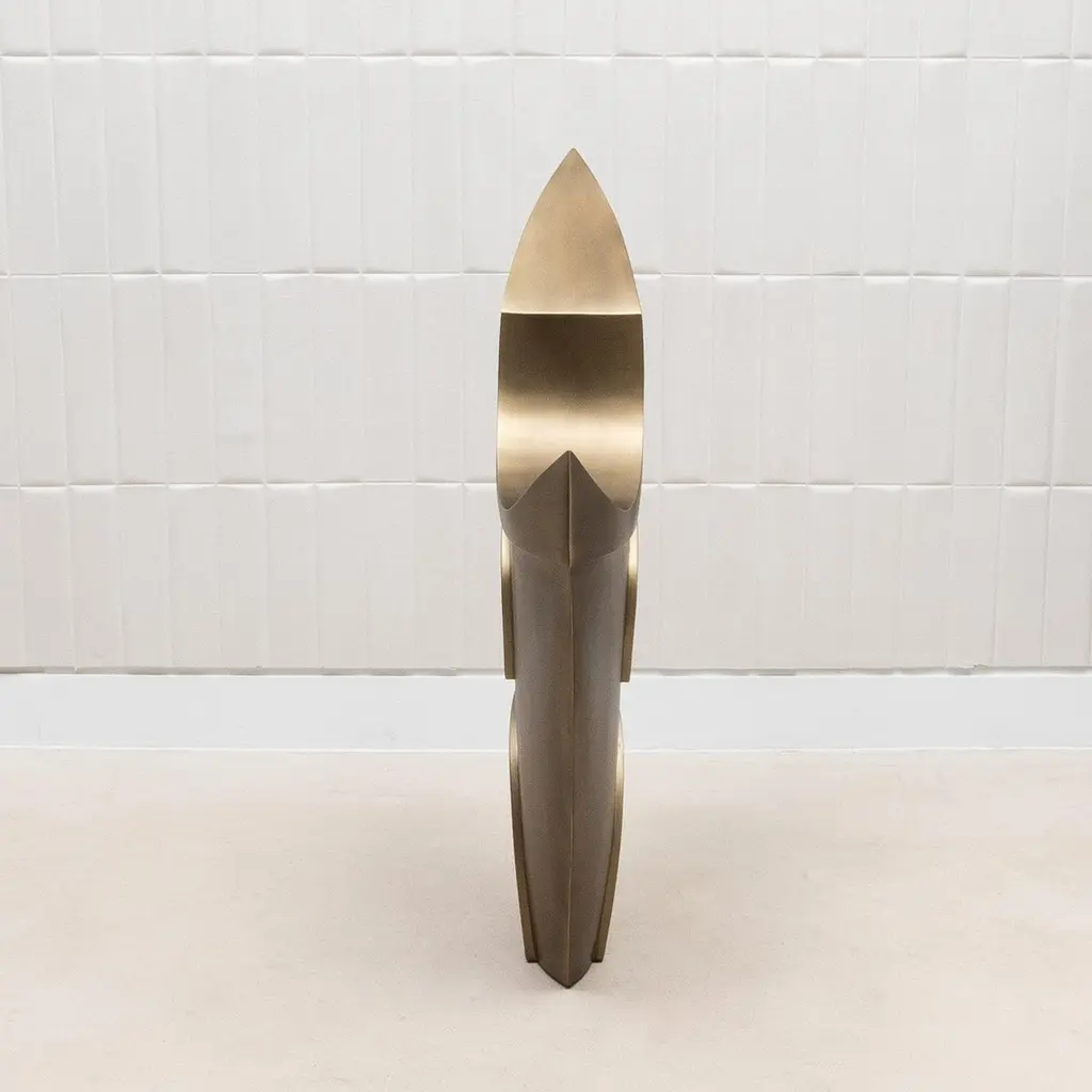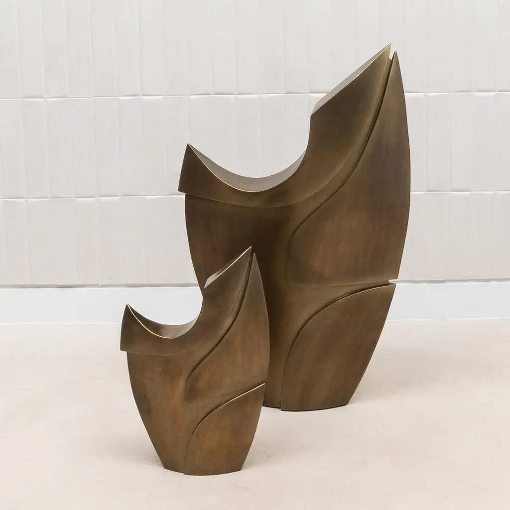 The Oval Queen by Patrick Coard Paris is the epitome of luxurious artistry, a breathtaking sculpture that commands attention with its regal presence and exquisite craftsmanship. Forged from the finest bronze patina brass veneer inlaid on a fiberglass core, this masterpiece exudes an aura of sophistication and elegance, its fluid, organic form reminiscent of a royal crown, capturing the light in a way that brings its graceful curves to life. The hand-painted finish adds a layer of depth and richness, creating a dynamic interplay of shadows and highlights that shift as you move around the piece.This sculpture is available in various sizes and in an array of opulent finishes, including polished stainless steel and black oak, each offering a unique expression of the design's majestic form. Whether placed as a centerpiece in a grand foyer or as a striking accent in a contemporary living space, The Oval Queen is a timeless symbol of luxury and artistic excellence, destined to elevate any environment it graces.This sculpture was exclusively made for Mogul and is on display in our LA showroom.This sculpture is made for indoor use only.About the artist:Patrick Coard, a designer with Danish and Irish roots, began his artistic journey in Paris, where he first gained acclaim for his exquisite candle designs. Now based in Manila, Philippines, Patrick has expanded his craft into the realm of sculptural art, creating luxurious pieces that seamlessly blend design with deep emotional resonance.Each of Patrick’s sculptures is a testament to his dedication to craftsmanship. They are meticulously handcrafted by skilled artisans in the Philippines, combining natural materials with specialized techniques to achieve a unique, tactile beauty. The hand-painted finishes ensure that no two pieces are alike, making each sculpture a singular expression of refined artistry.Drawing inspiration from the sculptors of the 1930s and 1940s, Patrick’s modern collection radiates both relaxation and sophistication. His sculptures go beyond decoration; they connect with the human spirit, transforming any space into a sanctuary of elegance and peace. Patrick Coard’s creations are timeless treasures, embodying luxury and elevating the essence of any interior.