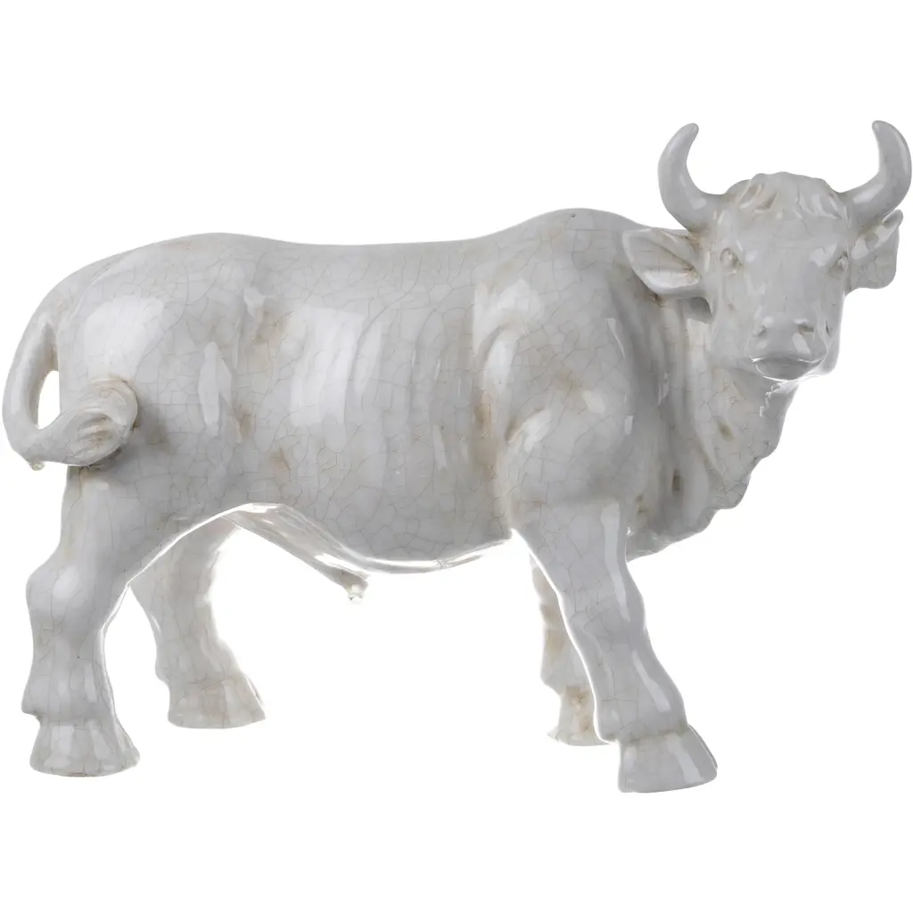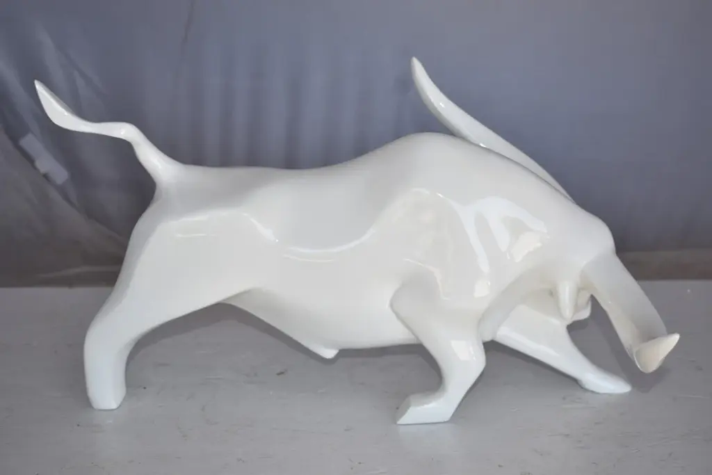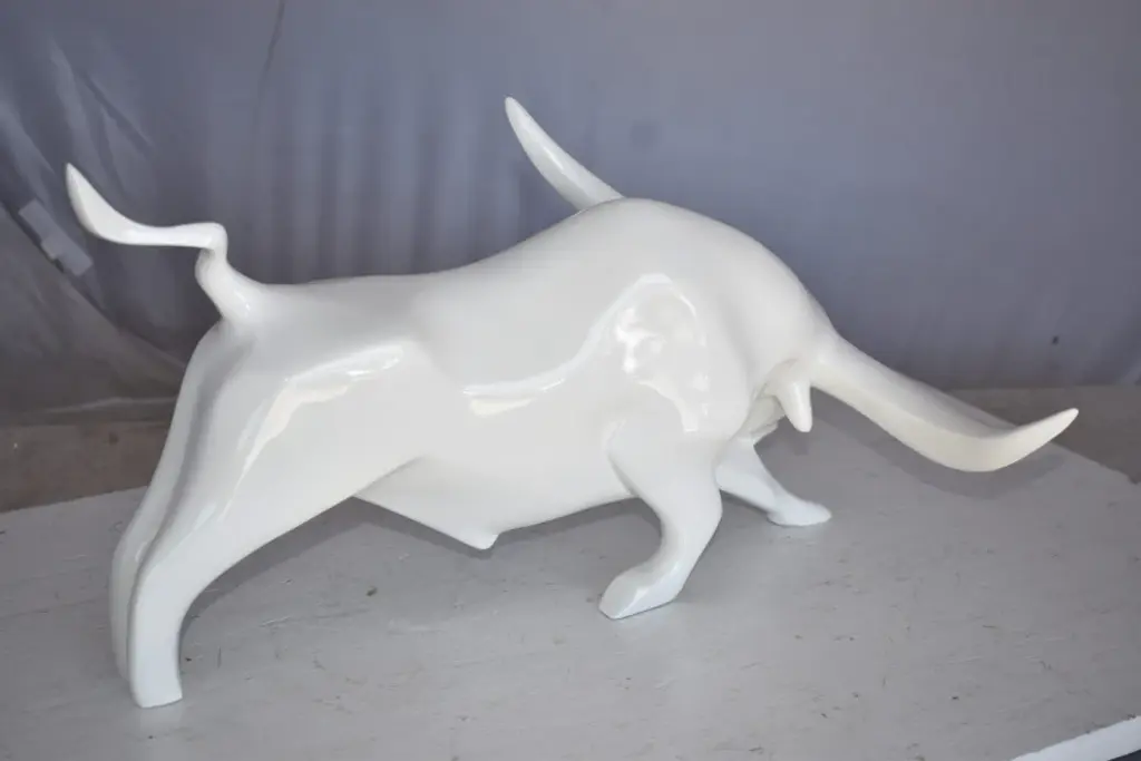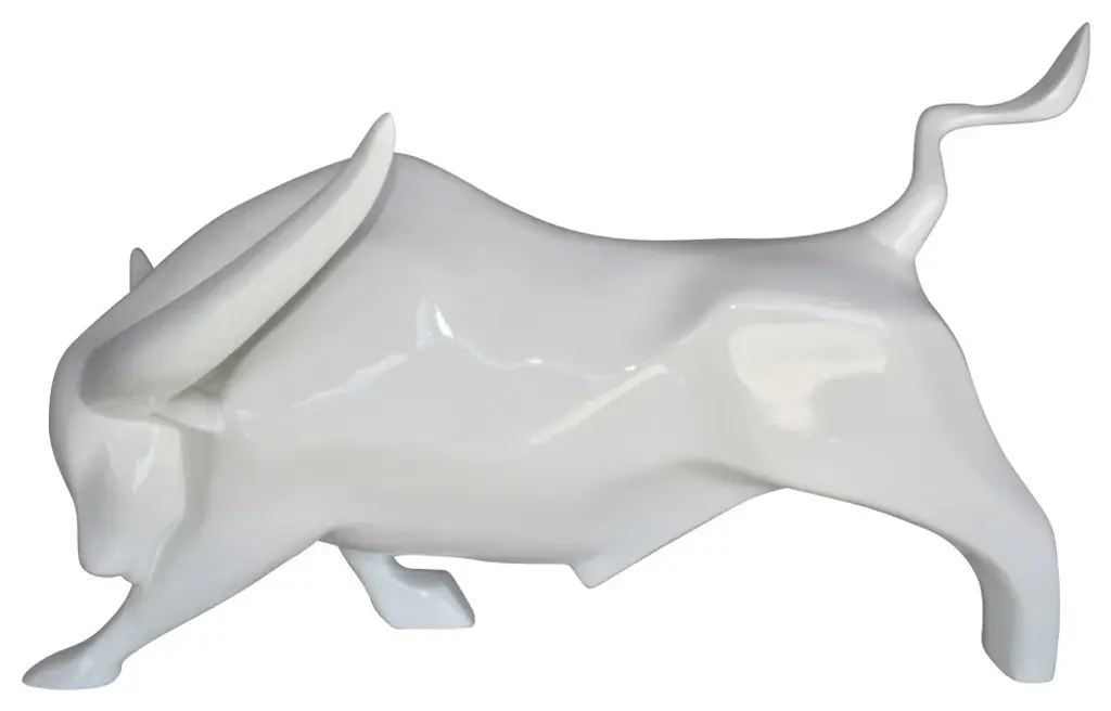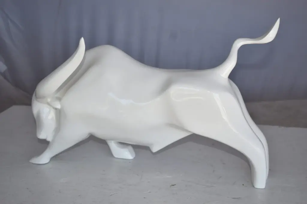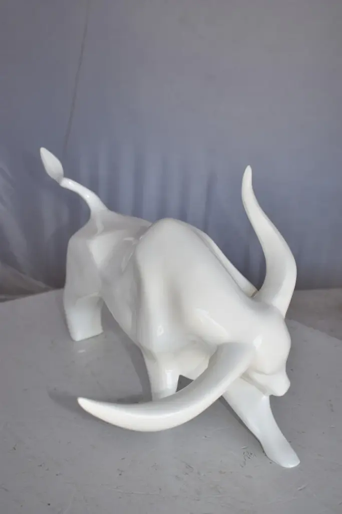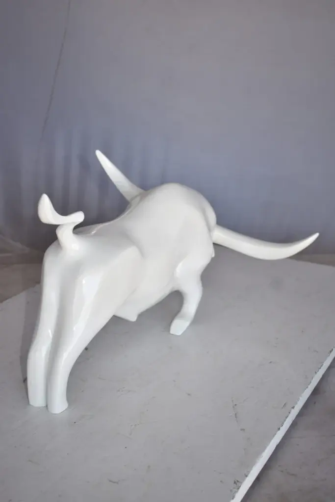 Modern Art Of A White Bull Made Of Resin Statue Size: 17" X 14" X 10"h