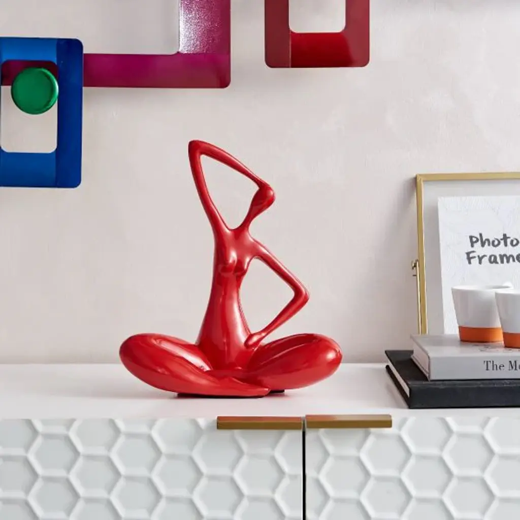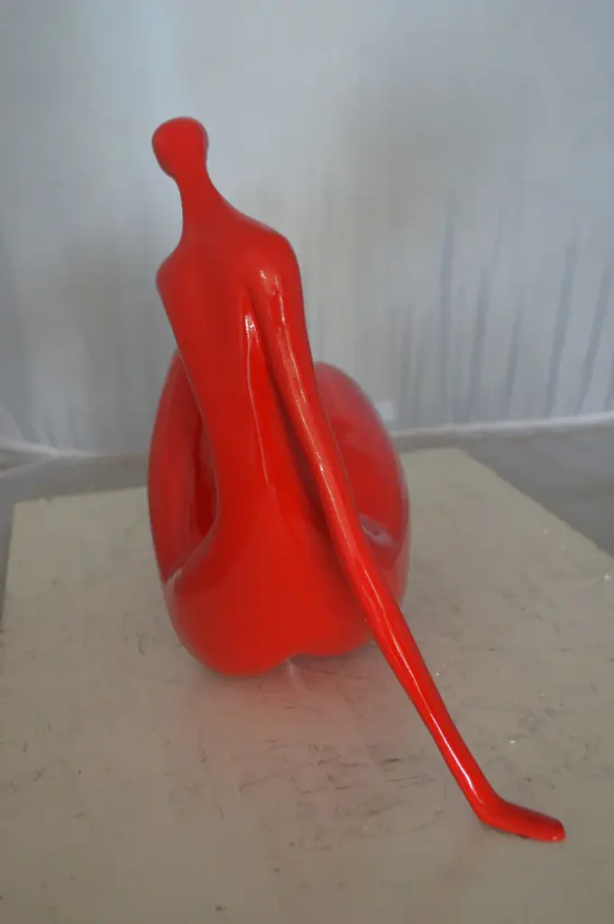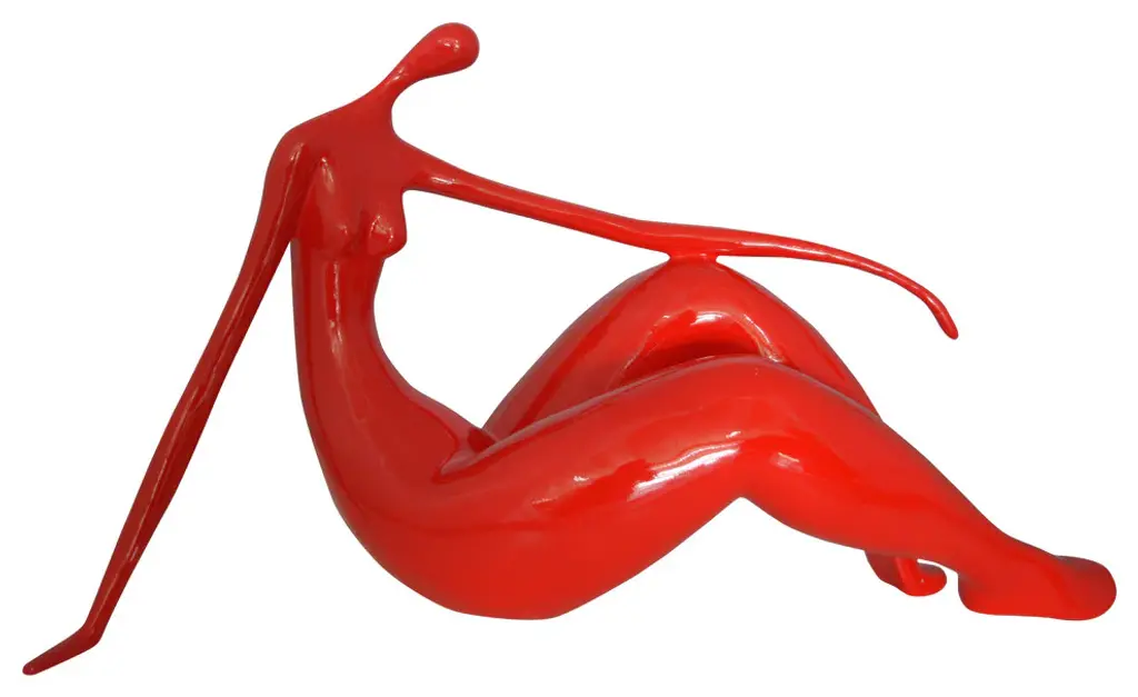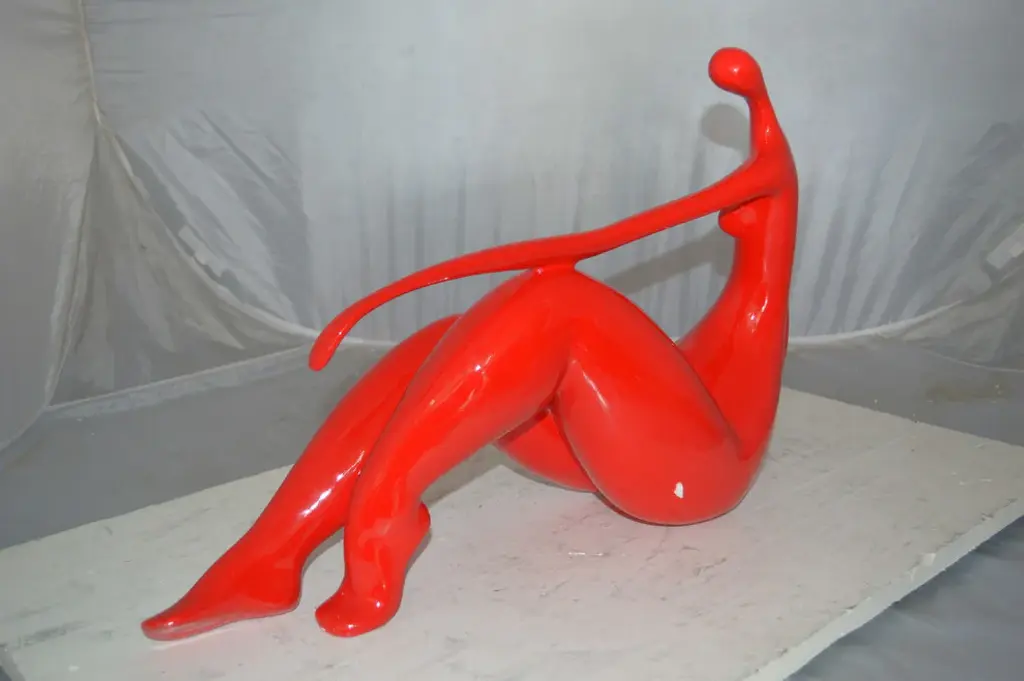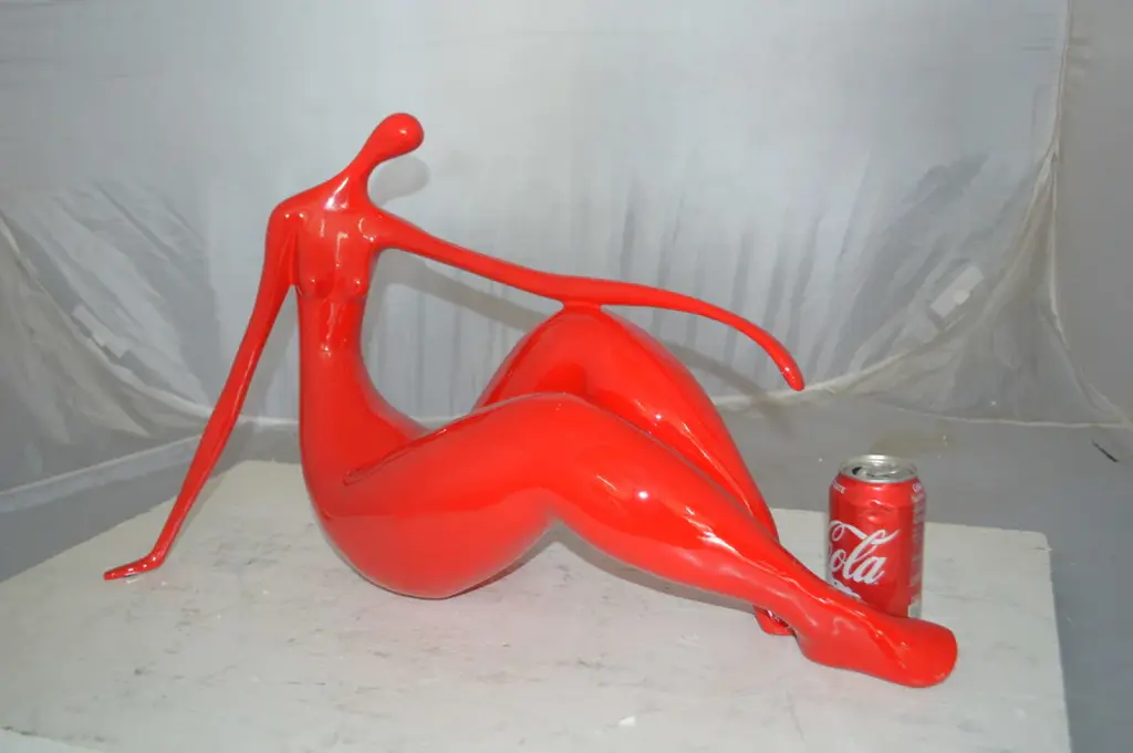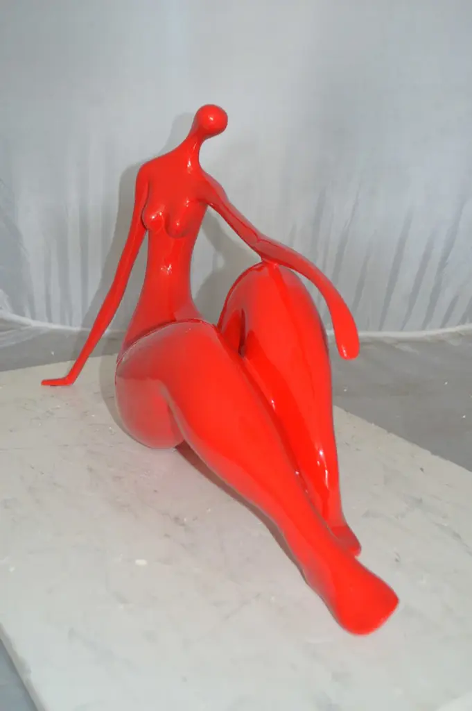 Enjoy this happy looking modern art, resin statue of a red Women on the Beach. This modern abstract would be a great addition to your home. Resin casting is a method of plastic casting where a mold is filled with a liquid synthetic resin, which then hardens. Size: 27"L x 8"W x 15"H. Weight is: 6Lb